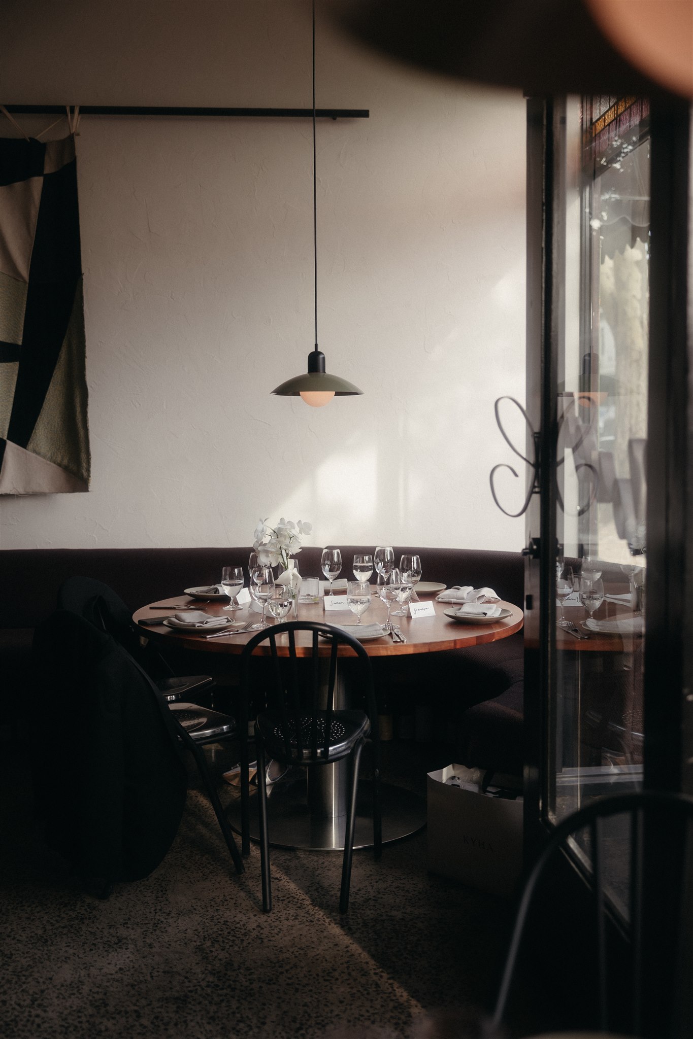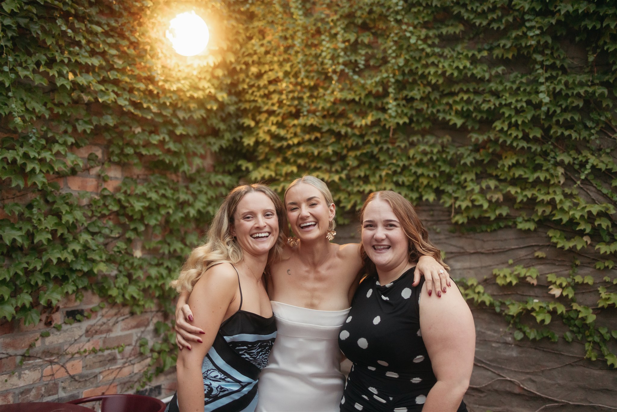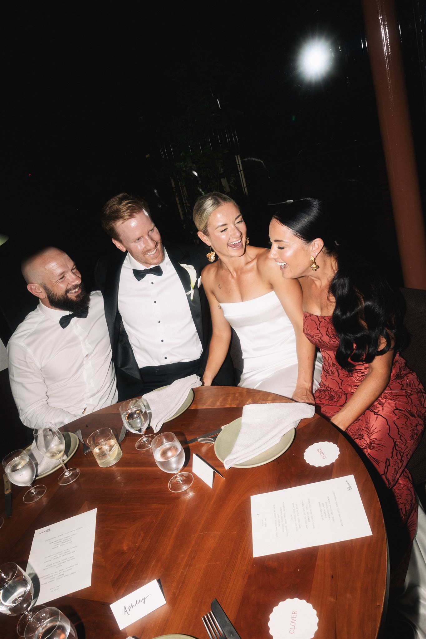 The evening began in Clover’s courtyard with a relaxed cocktail hour, complete with a fresh oyster bar. As the night settled in, everyone moved inside for a cosy, love-filled, dinner party-style reception. Long tables, flowing wine, and incredible food made for an unforgettable night. The warmth of the space, paired with the closeness of family and friends, made it feel like an intimate family dinner at home. Rather than a traditional wedding — exactly what Abby and Sam had dreamed of.