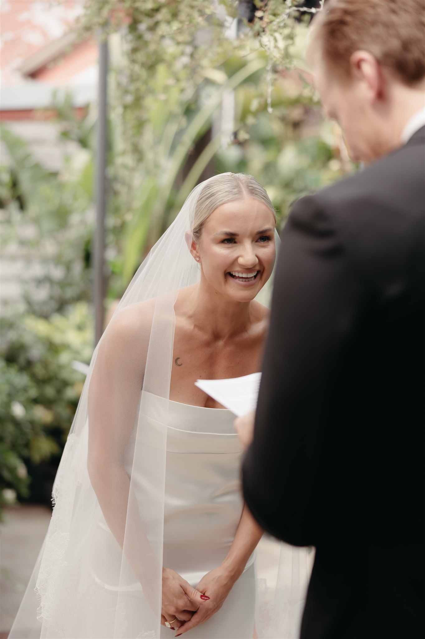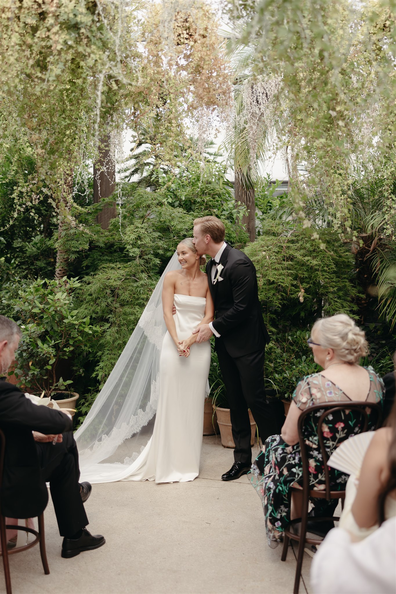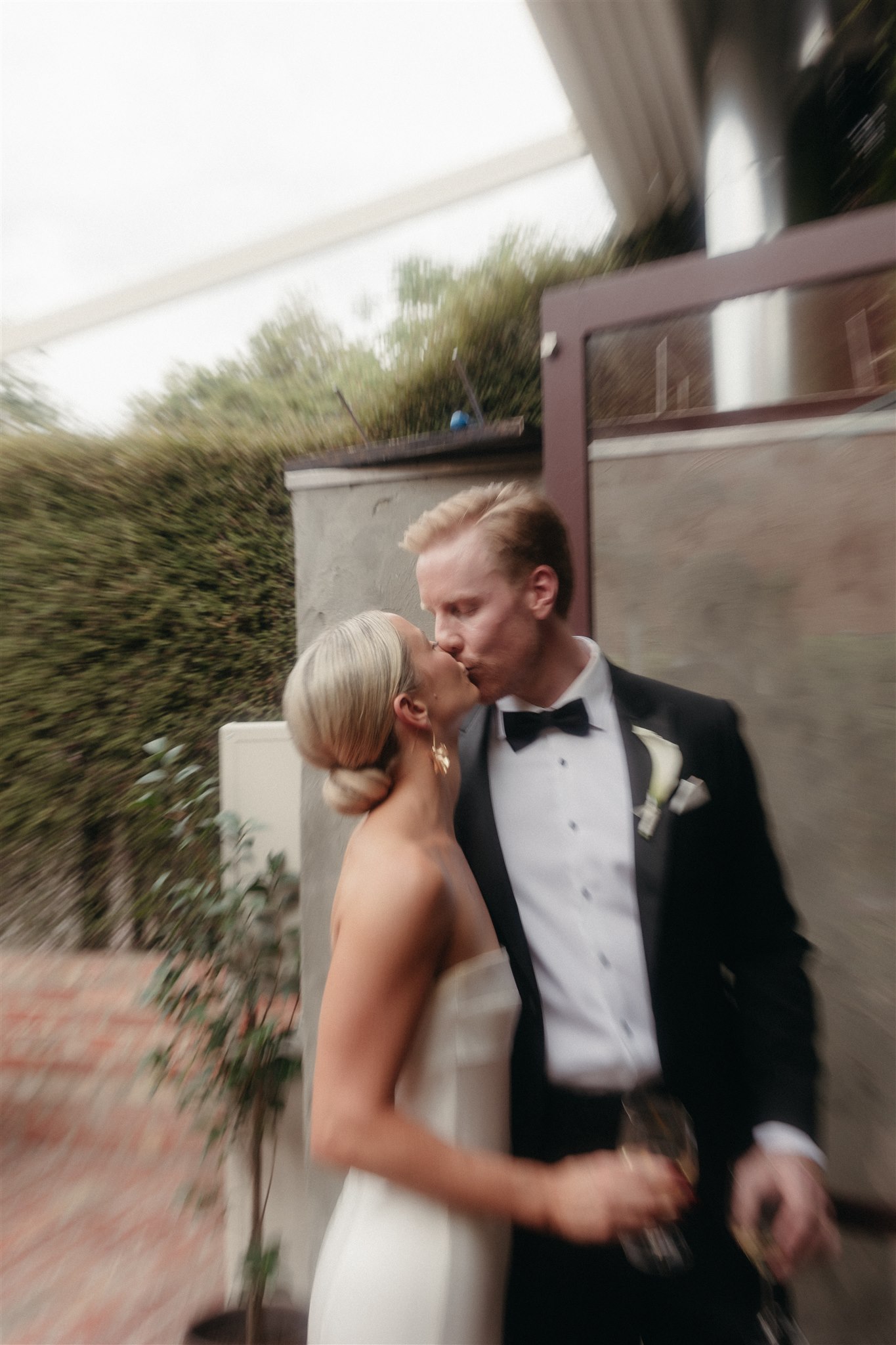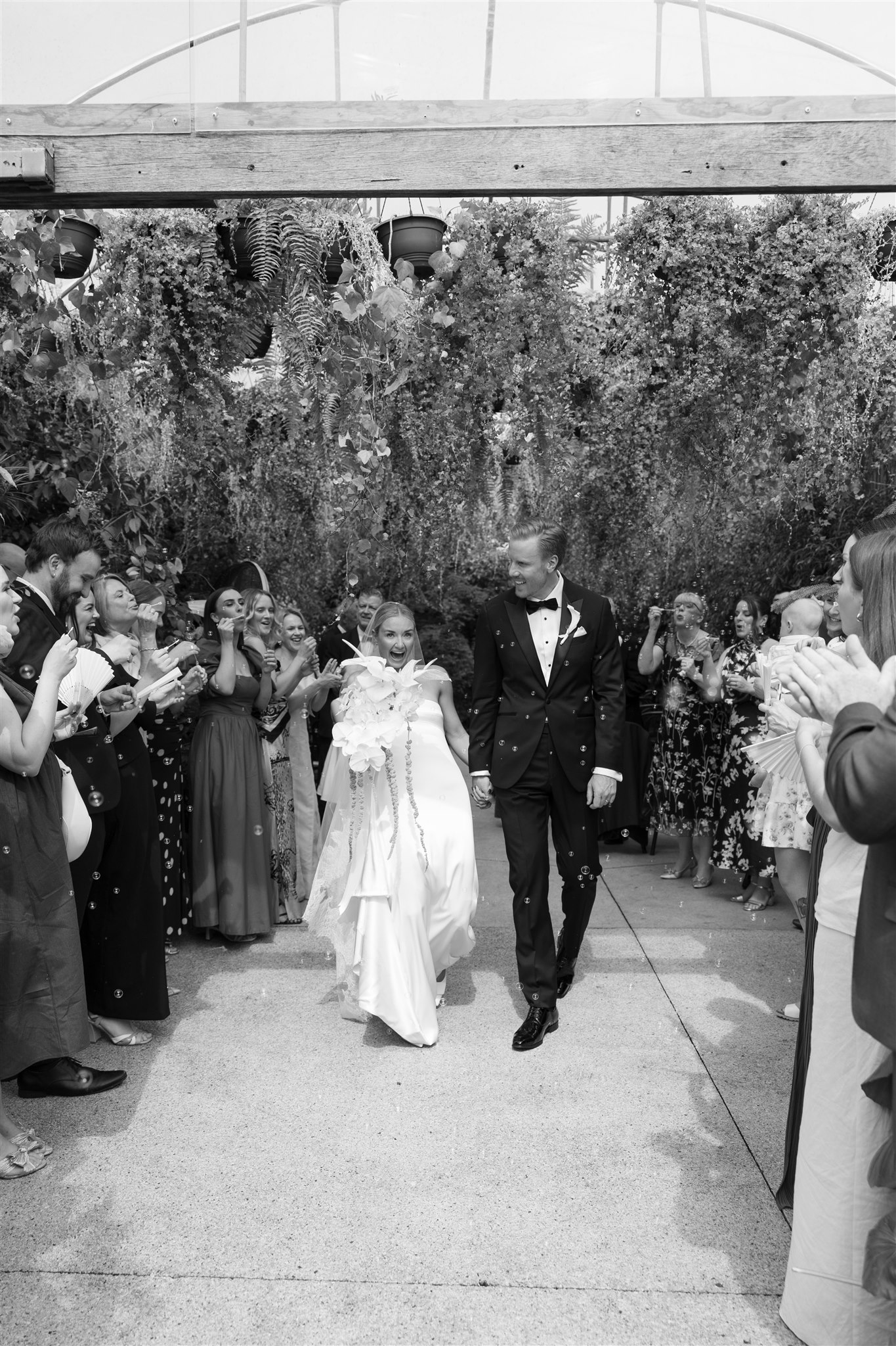 The day began with a beautiful wedding ceremony at Glasshaus, a lush, urban greenhouse-style Melbourne wedding venue. Surrounded by greenery and soft natural light streaming through the glass, Abby and Sam exchanged vows. After the ceremony, they celebrated with an elegant champagne tower, setting the tone for a relaxed and love-filled evening.