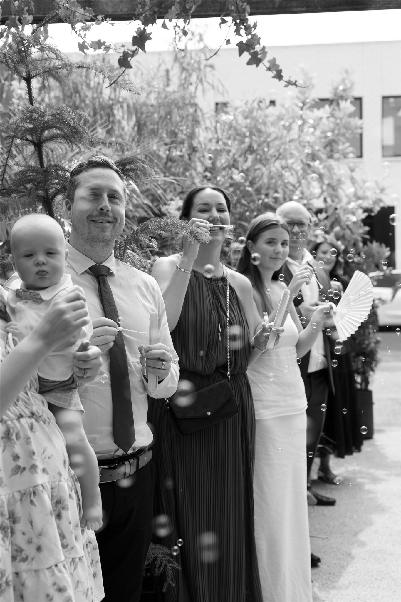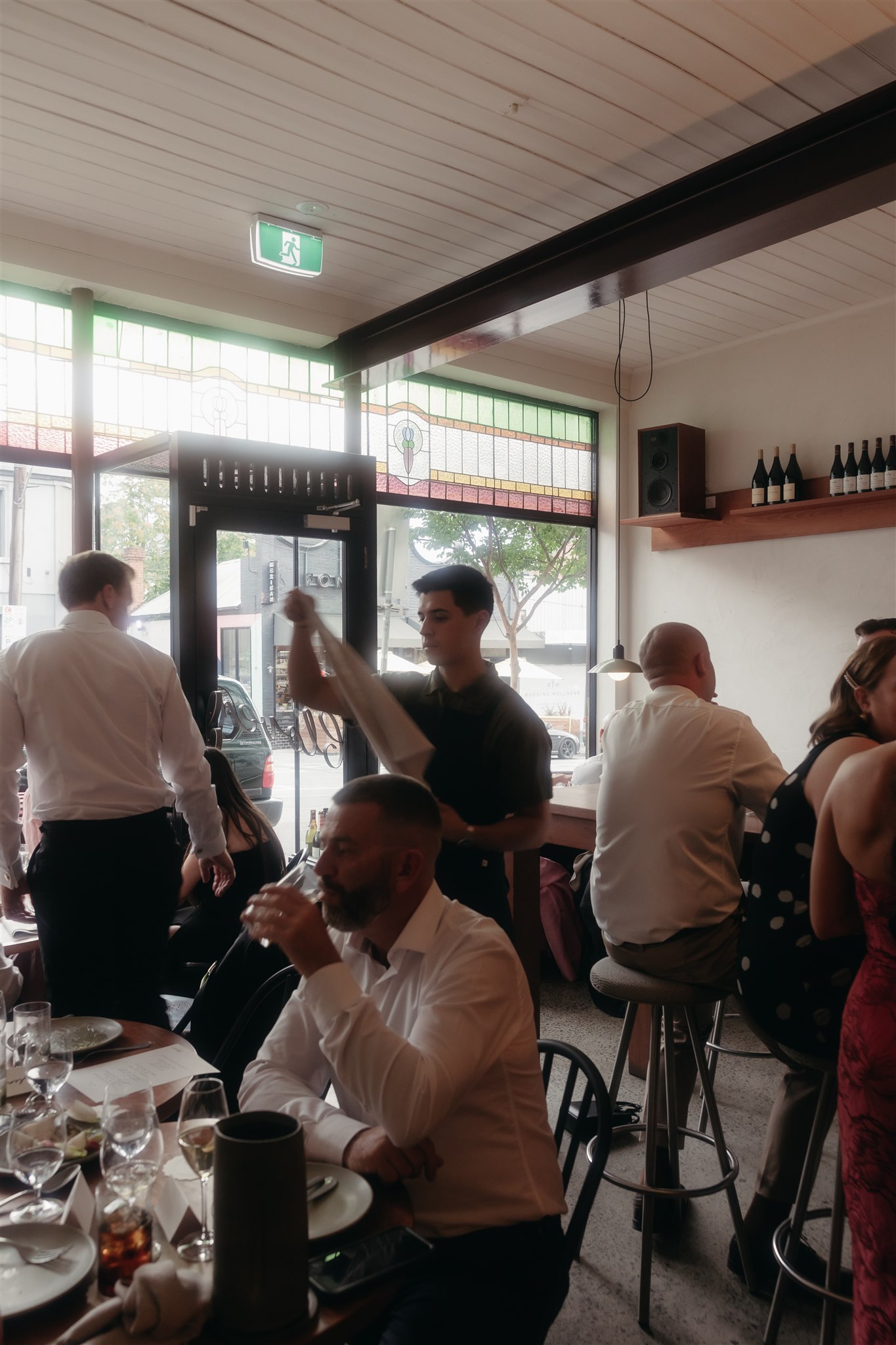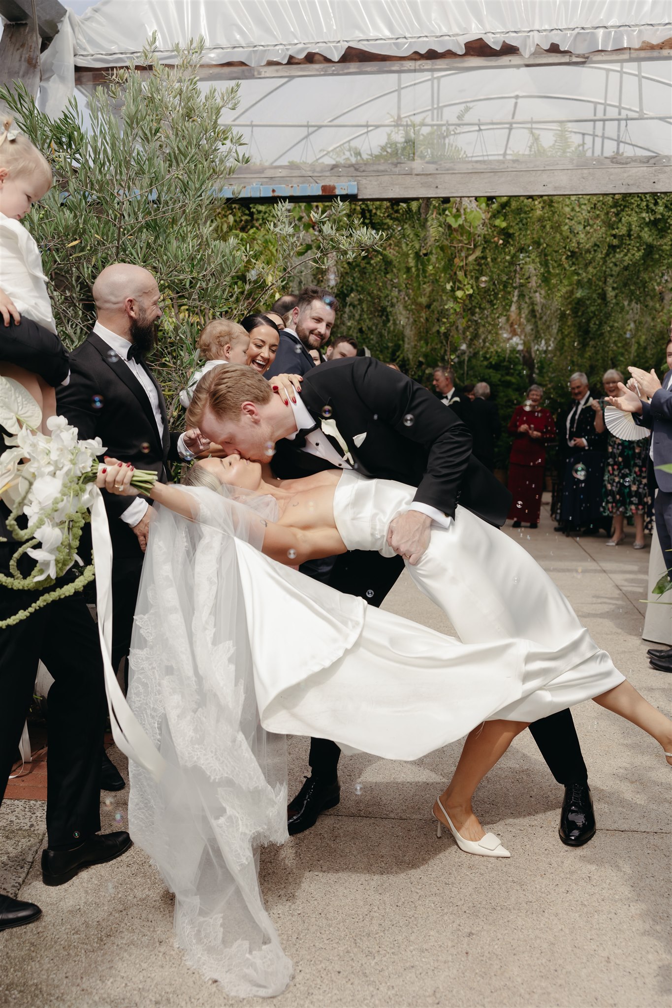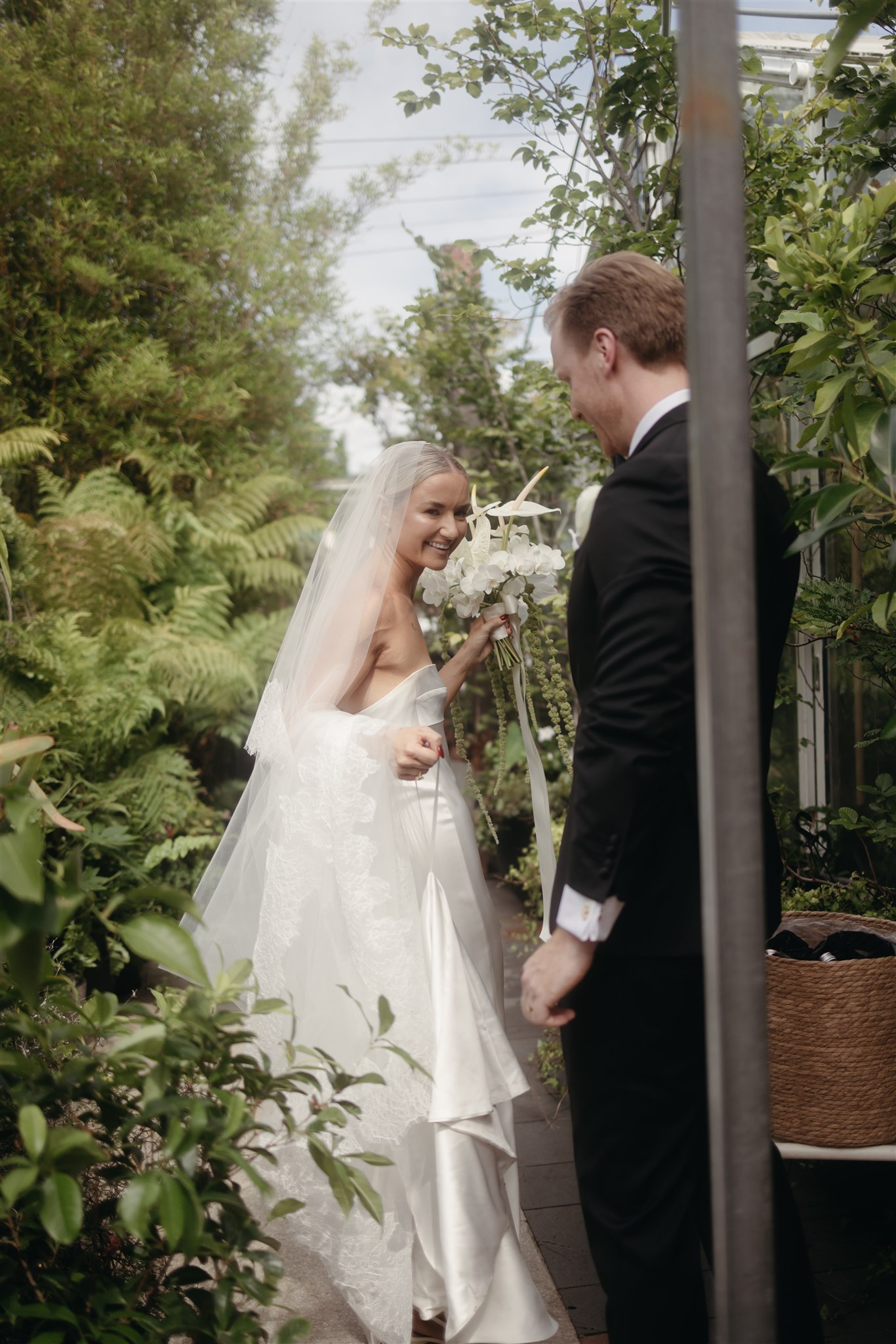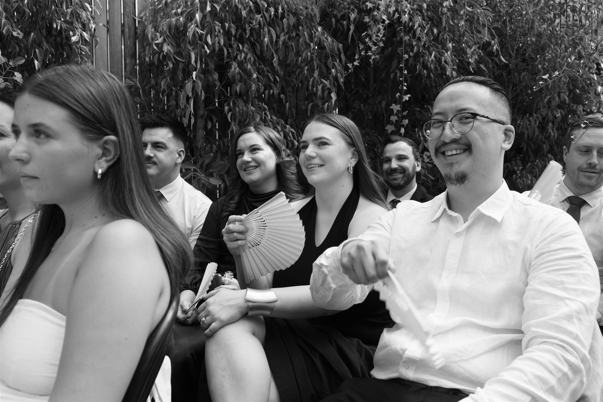 The day began with a beautiful wedding ceremony at Glasshaus, a lush, urban greenhouse-style Melbourne wedding venue. Surrounded by greenery and soft natural light streaming through the glass, Abby and Sam exchanged vows. After the ceremony, they celebrated with an elegant champagne tower, setting the tone for a relaxed and love-filled evening.
