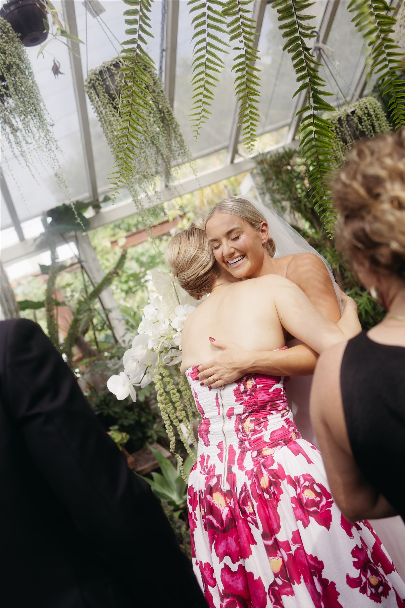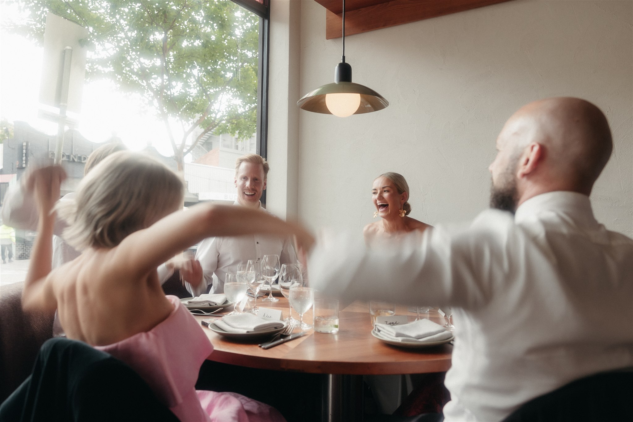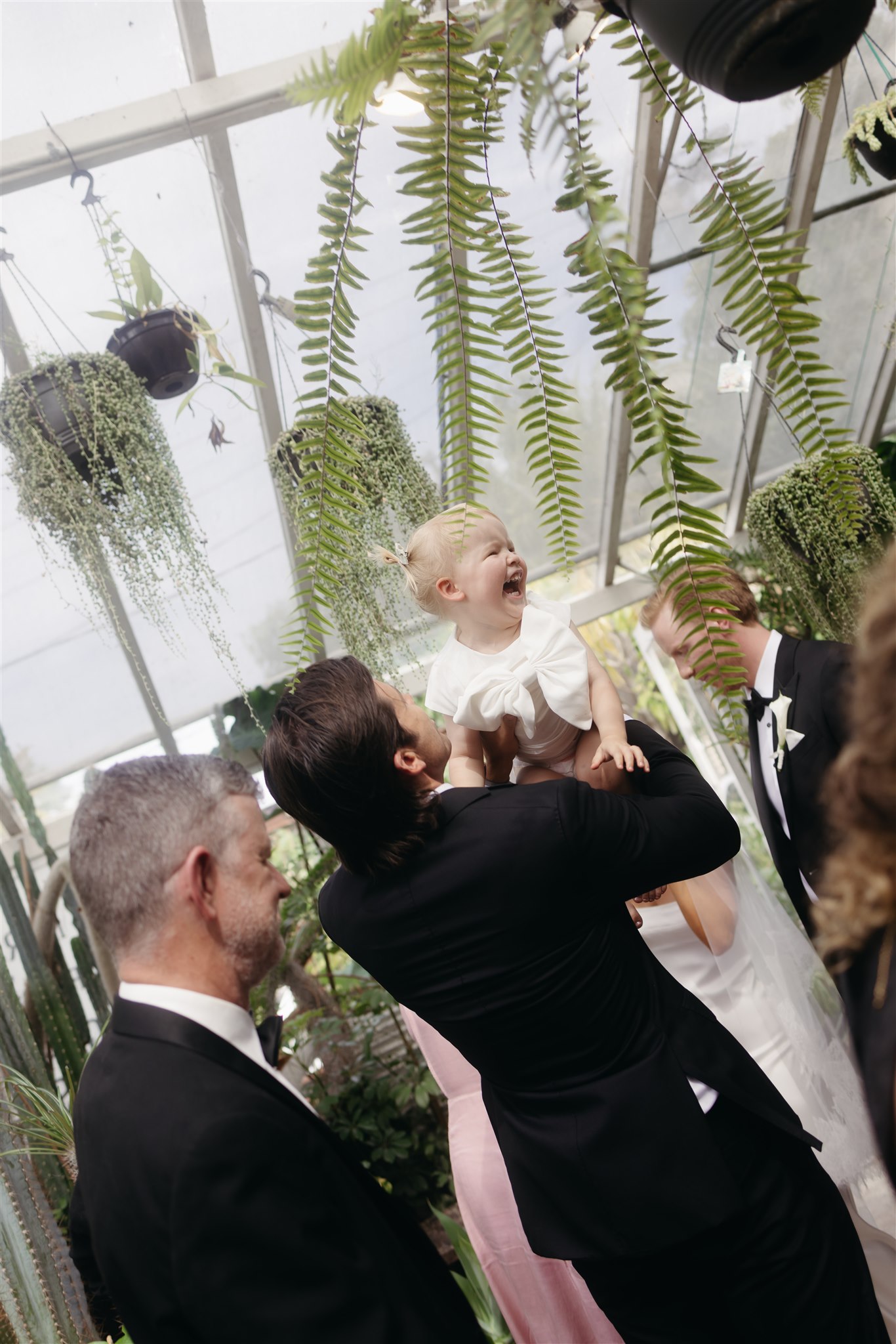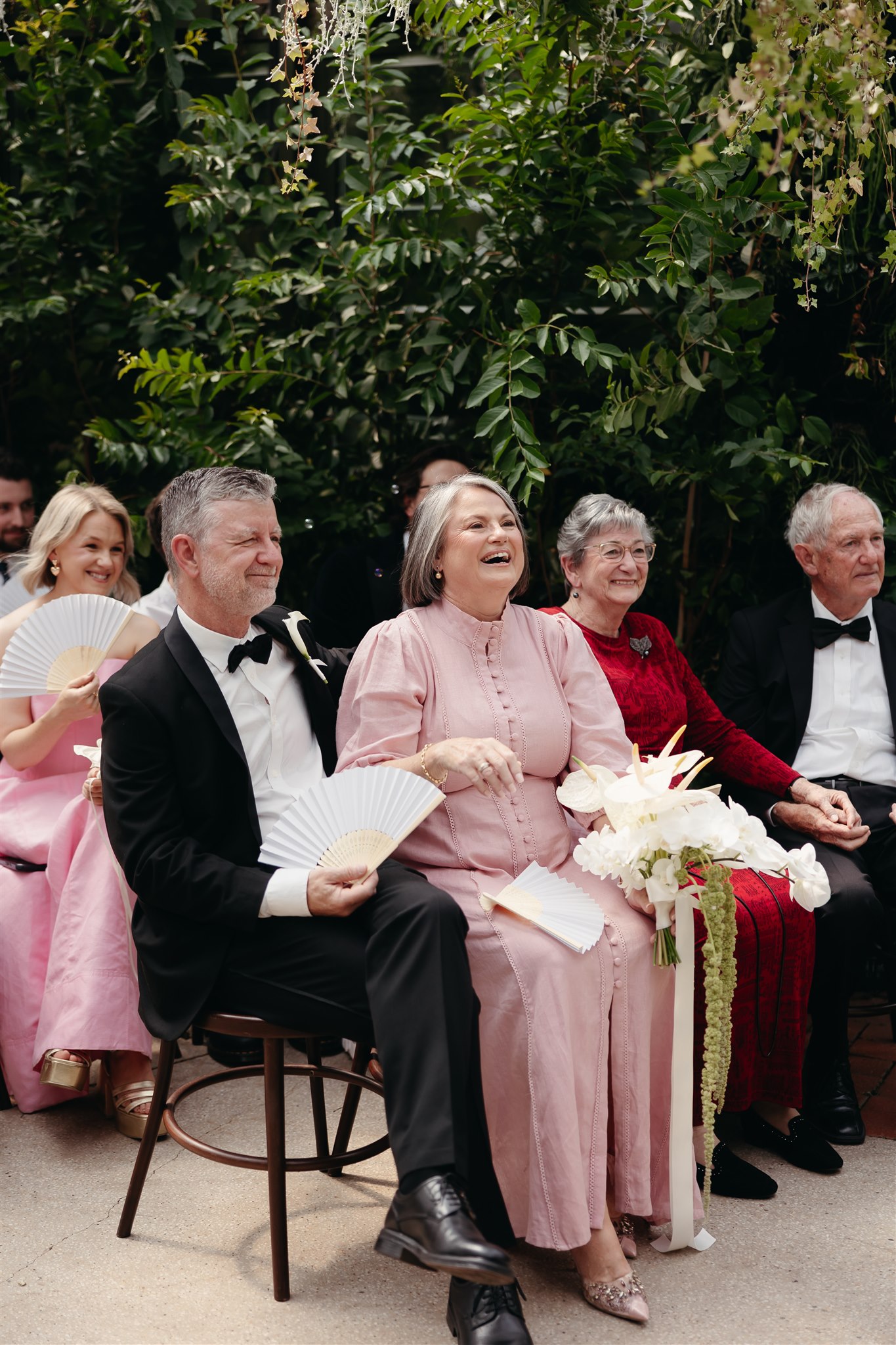 The day began with a beautiful wedding ceremony at Glasshaus, a lush, urban greenhouse-style Melbourne wedding venue. Surrounded by greenery and soft natural light streaming through the glass, Abby and Sam exchanged vows. After the ceremony, they celebrated with an elegant champagne tower, setting the tone for a relaxed and love-filled evening.