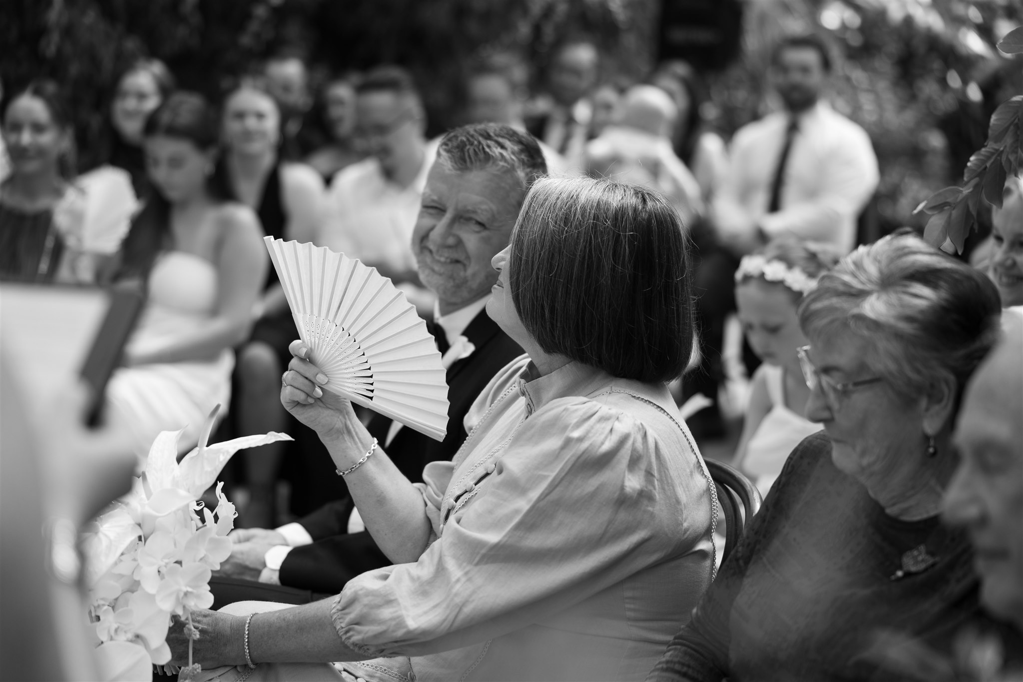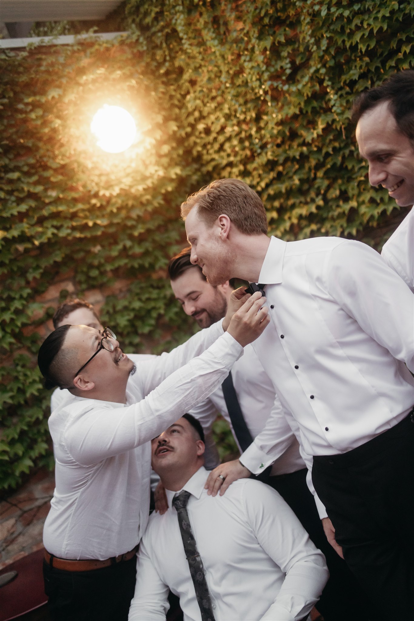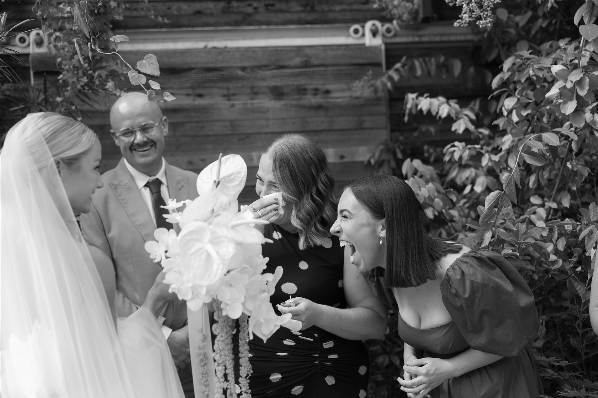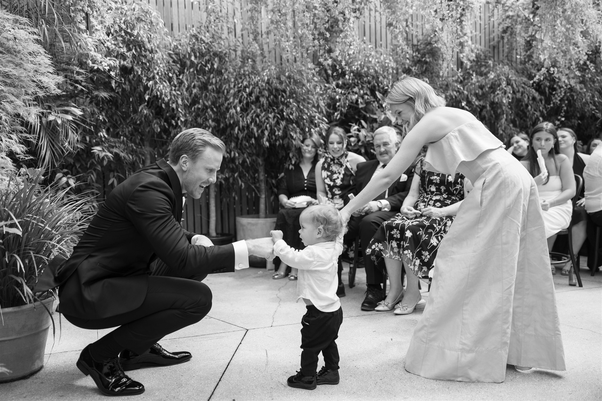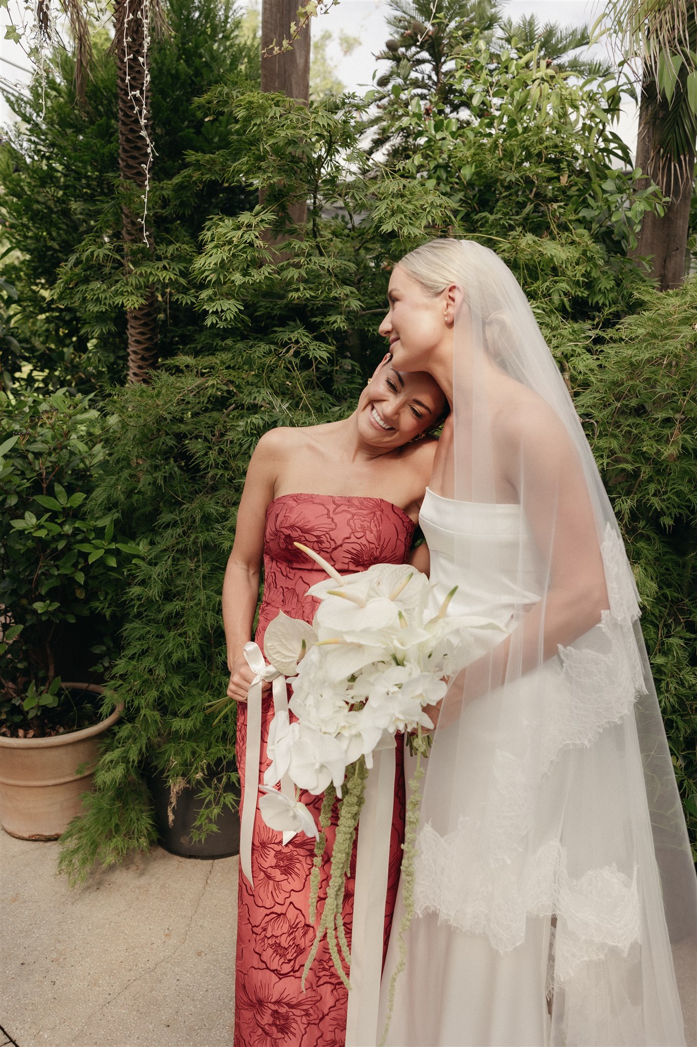 The day began with a beautiful wedding ceremony at Glasshaus, a lush, urban greenhouse-style Melbourne wedding venue. Surrounded by greenery and soft natural light streaming through the glass, Abby and Sam exchanged vows. After the ceremony, they celebrated with an elegant champagne tower, setting the tone for a relaxed and love-filled evening.