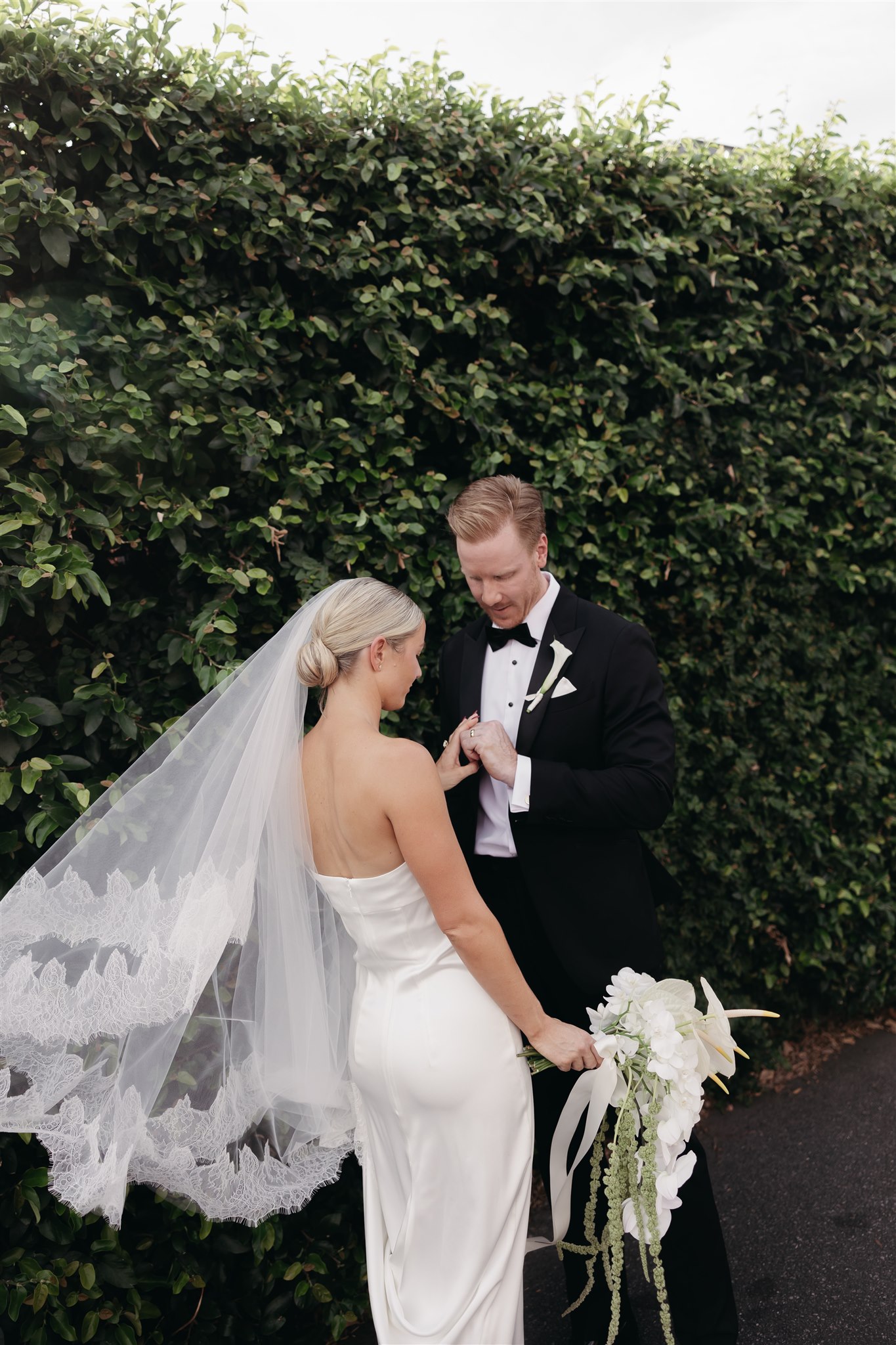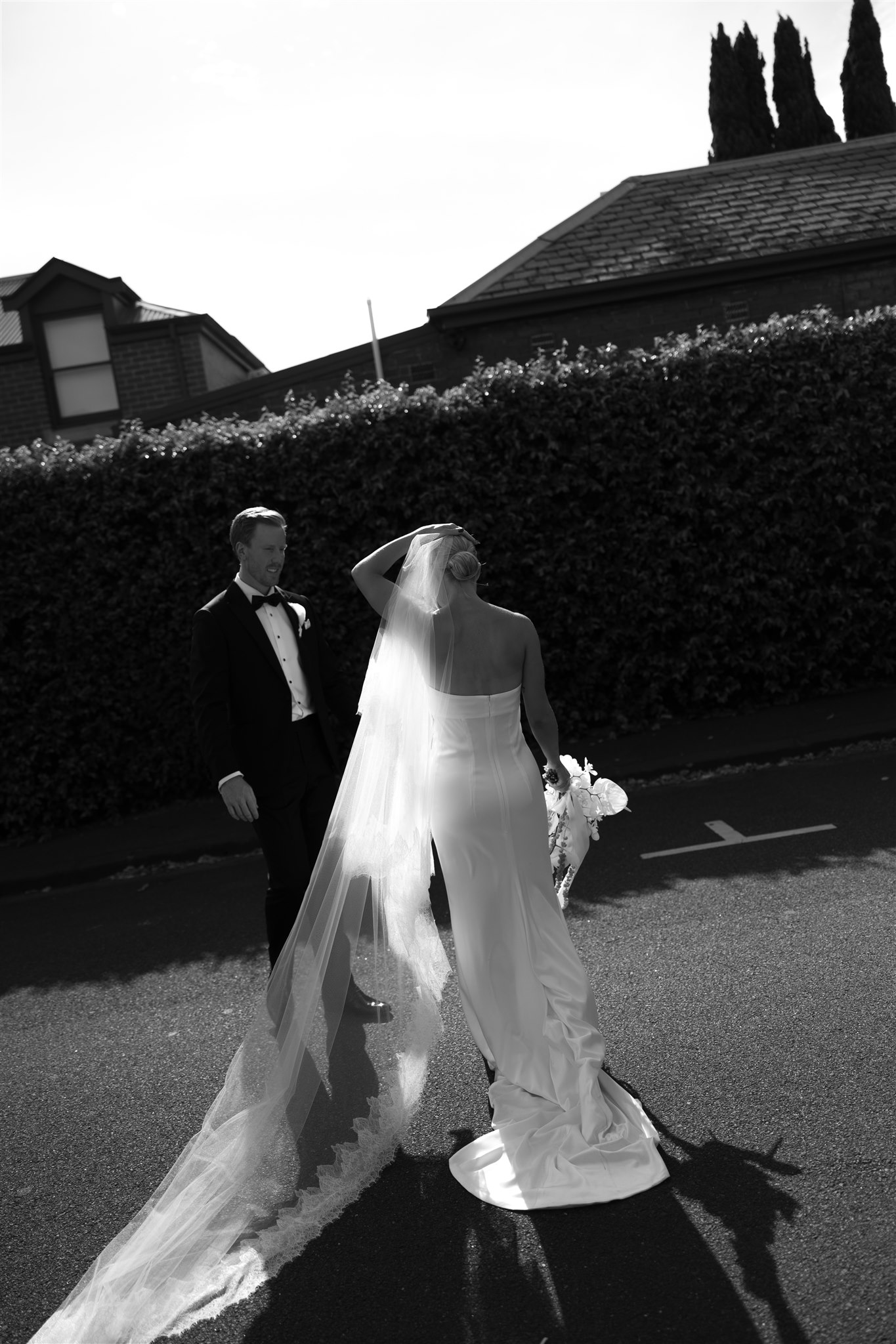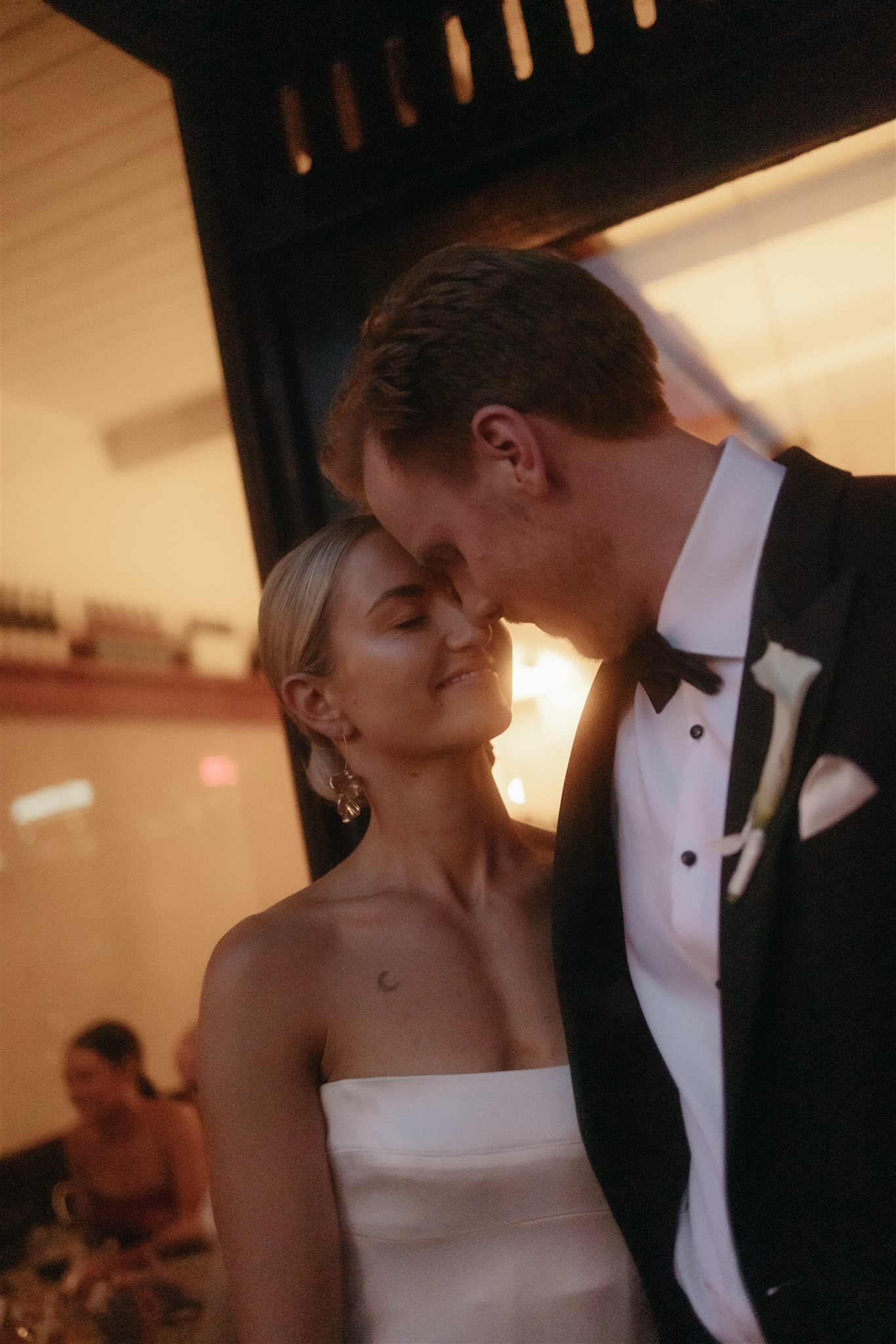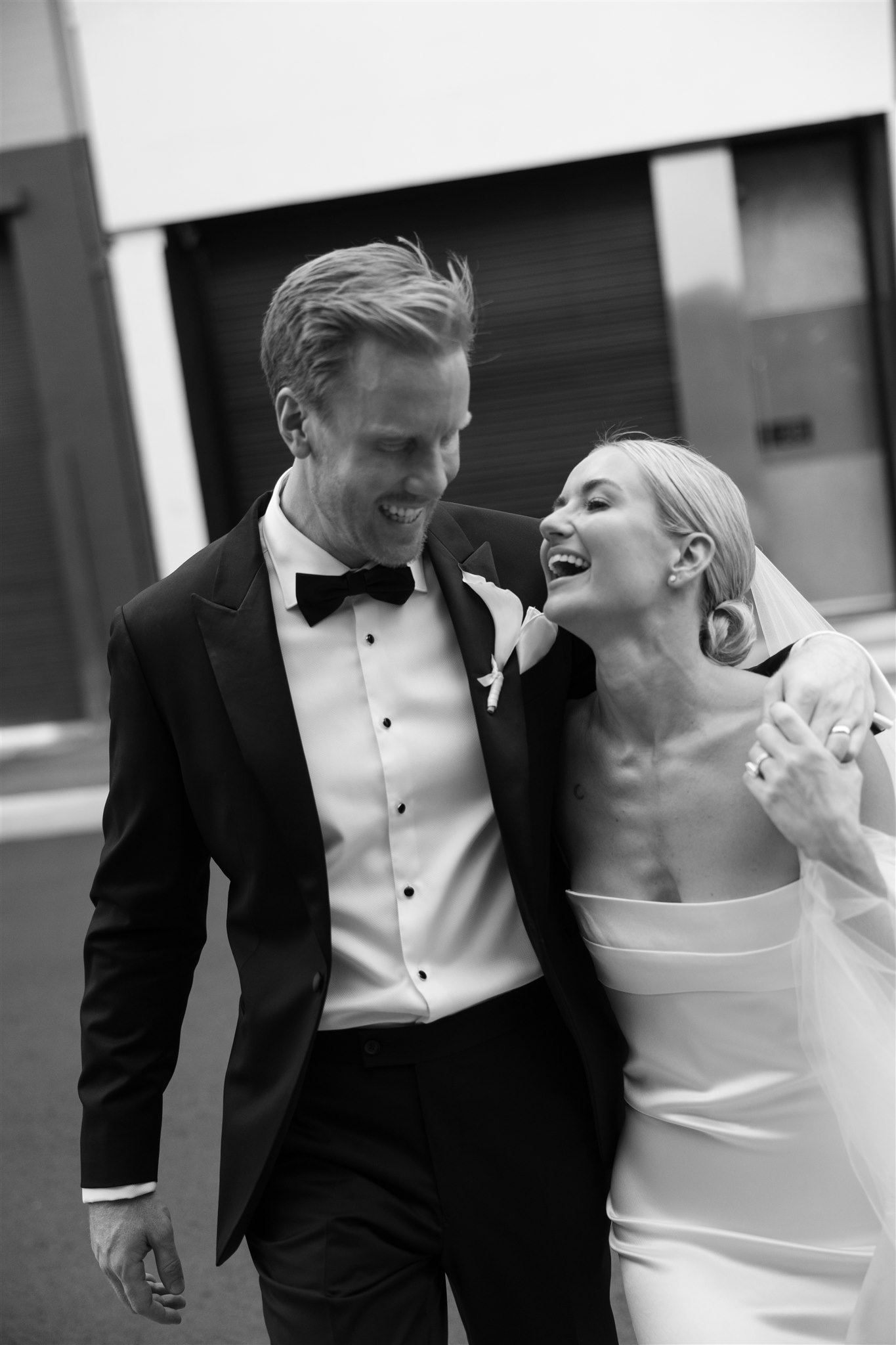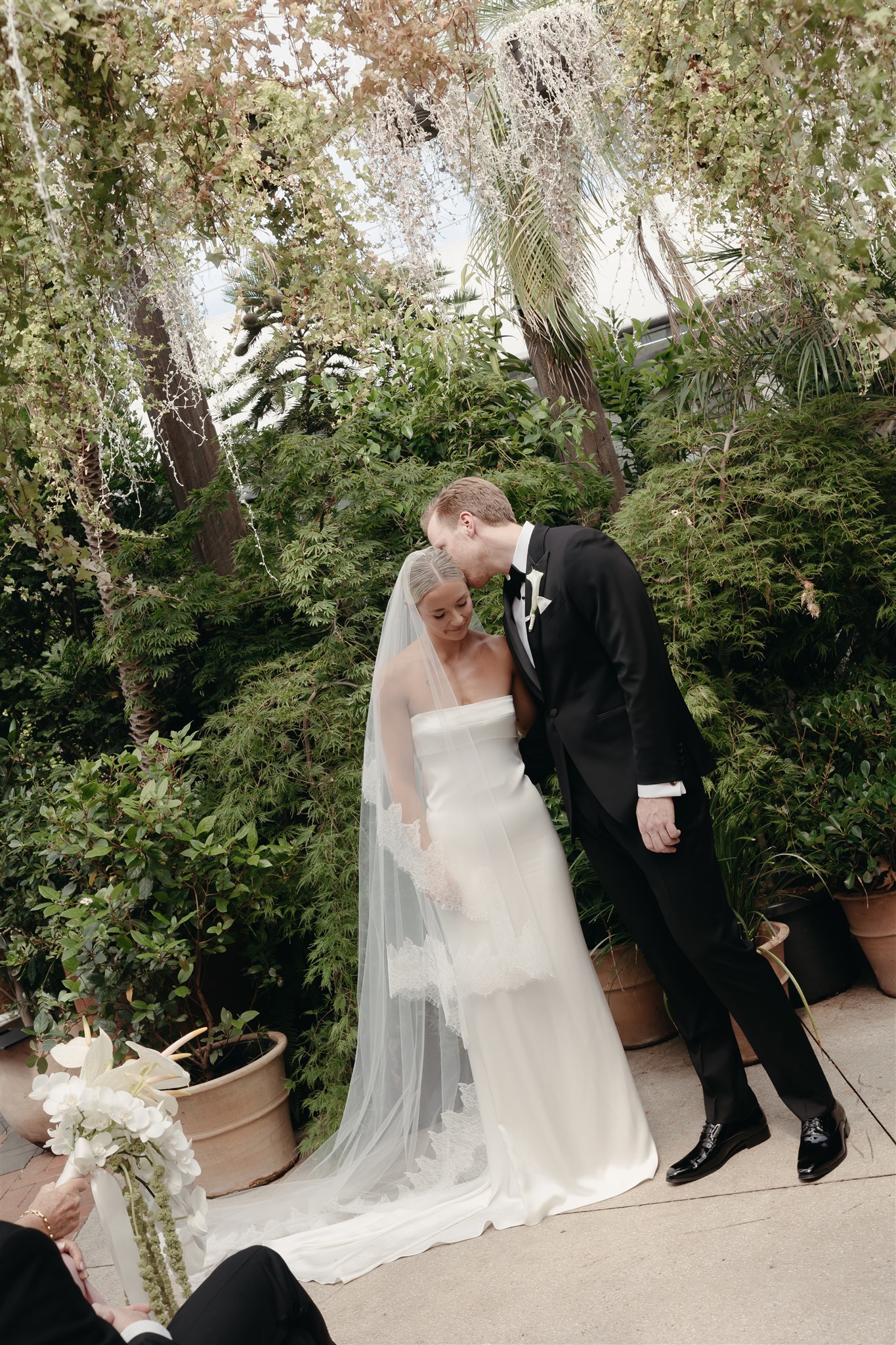 Abby looked stunning in a sleek, minimalist gown by Kyha Studios paired with a long flowing veil, her bridal look was effortlessly elegant. The perfect match for the modern, pared-back feel of the day.