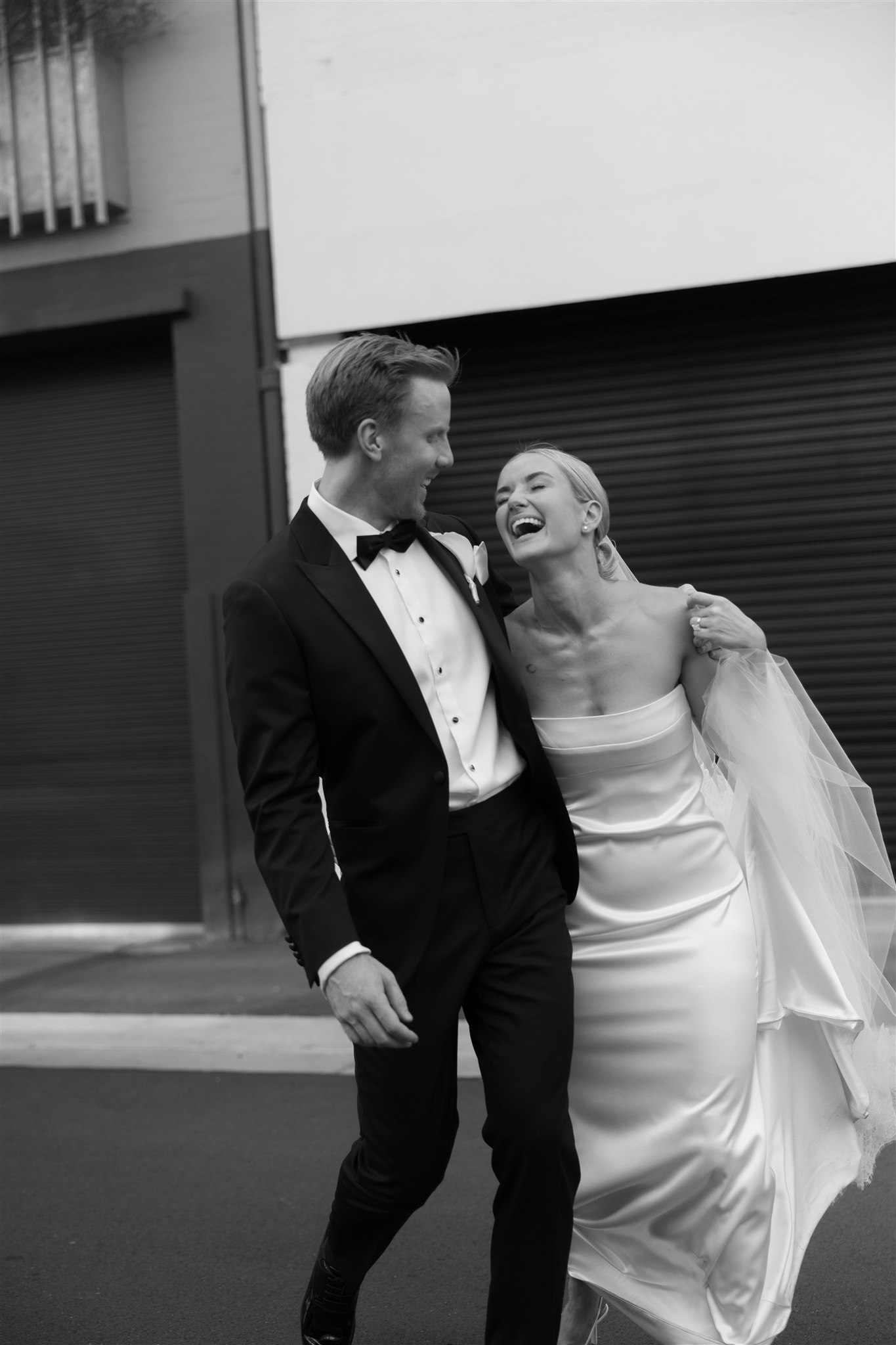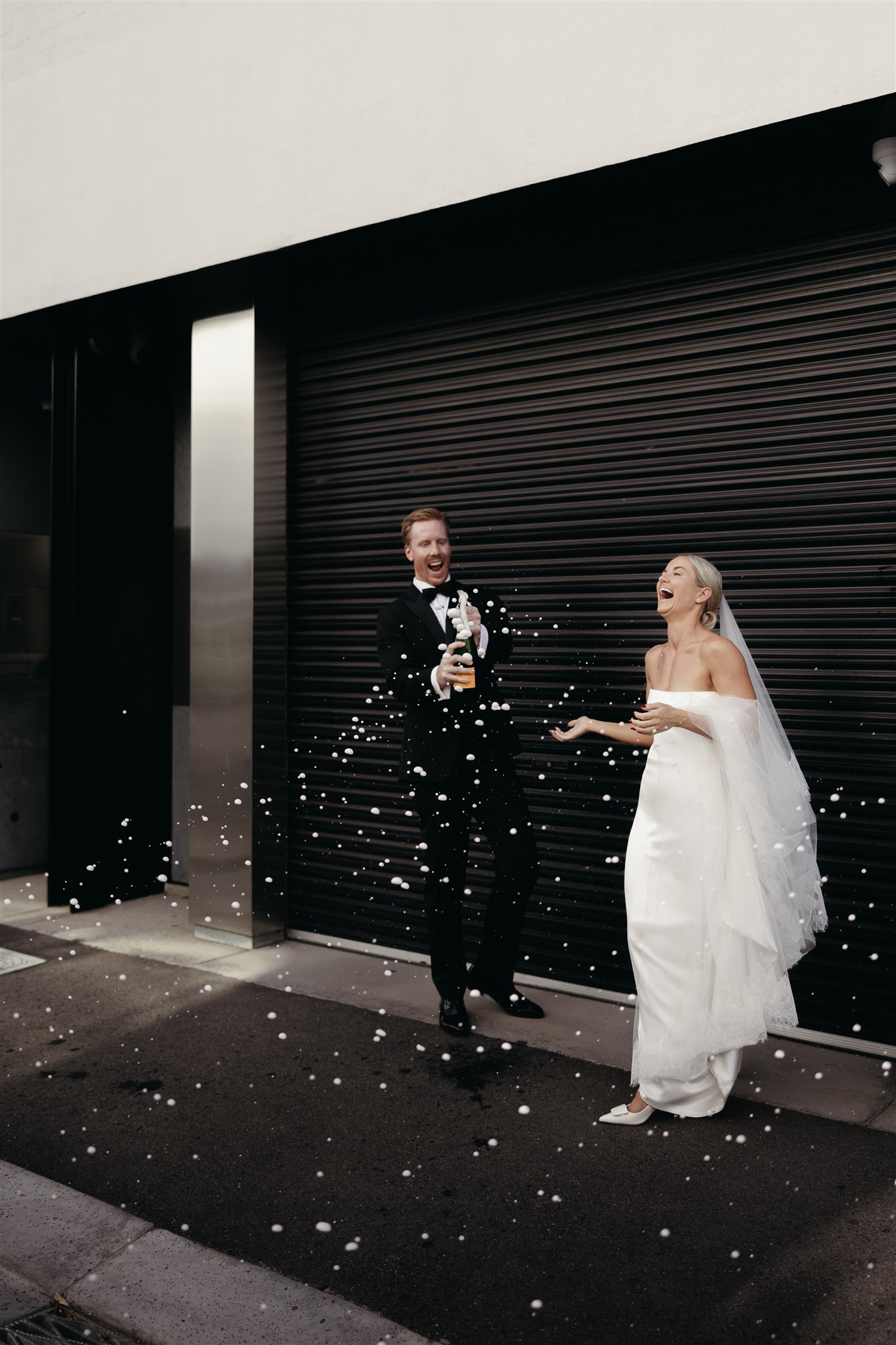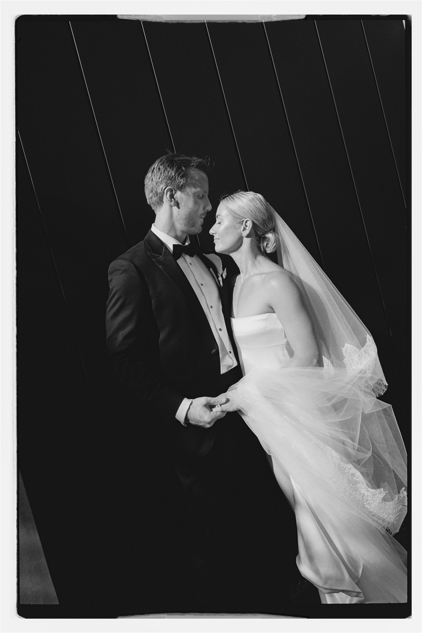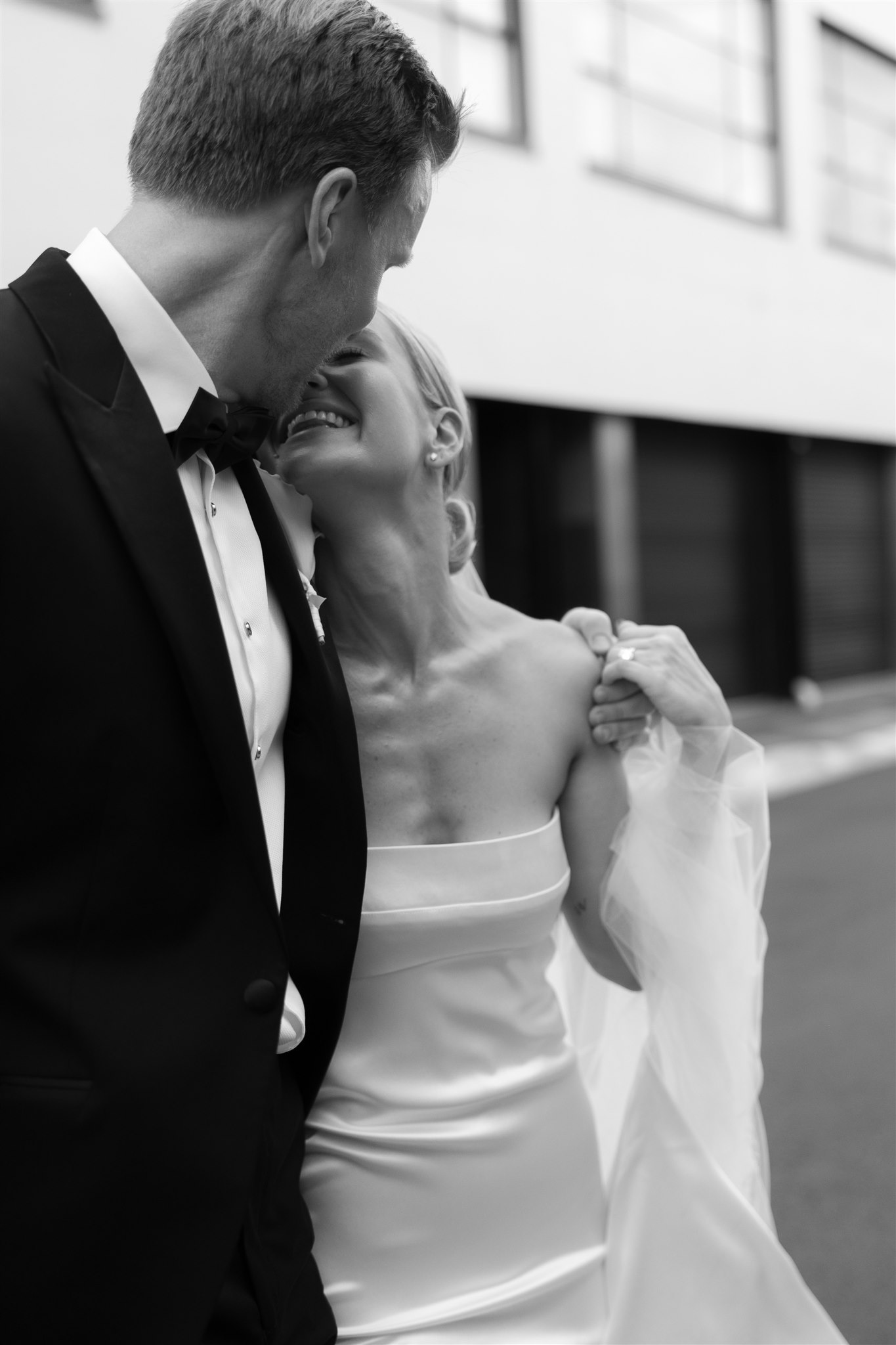Abby looked stunning in a sleek, minimalist gown by Kyha Studios paired with a long flowing veil, her bridal look was effortlessly elegant. The perfect match for the modern, pared-back feel of the day.