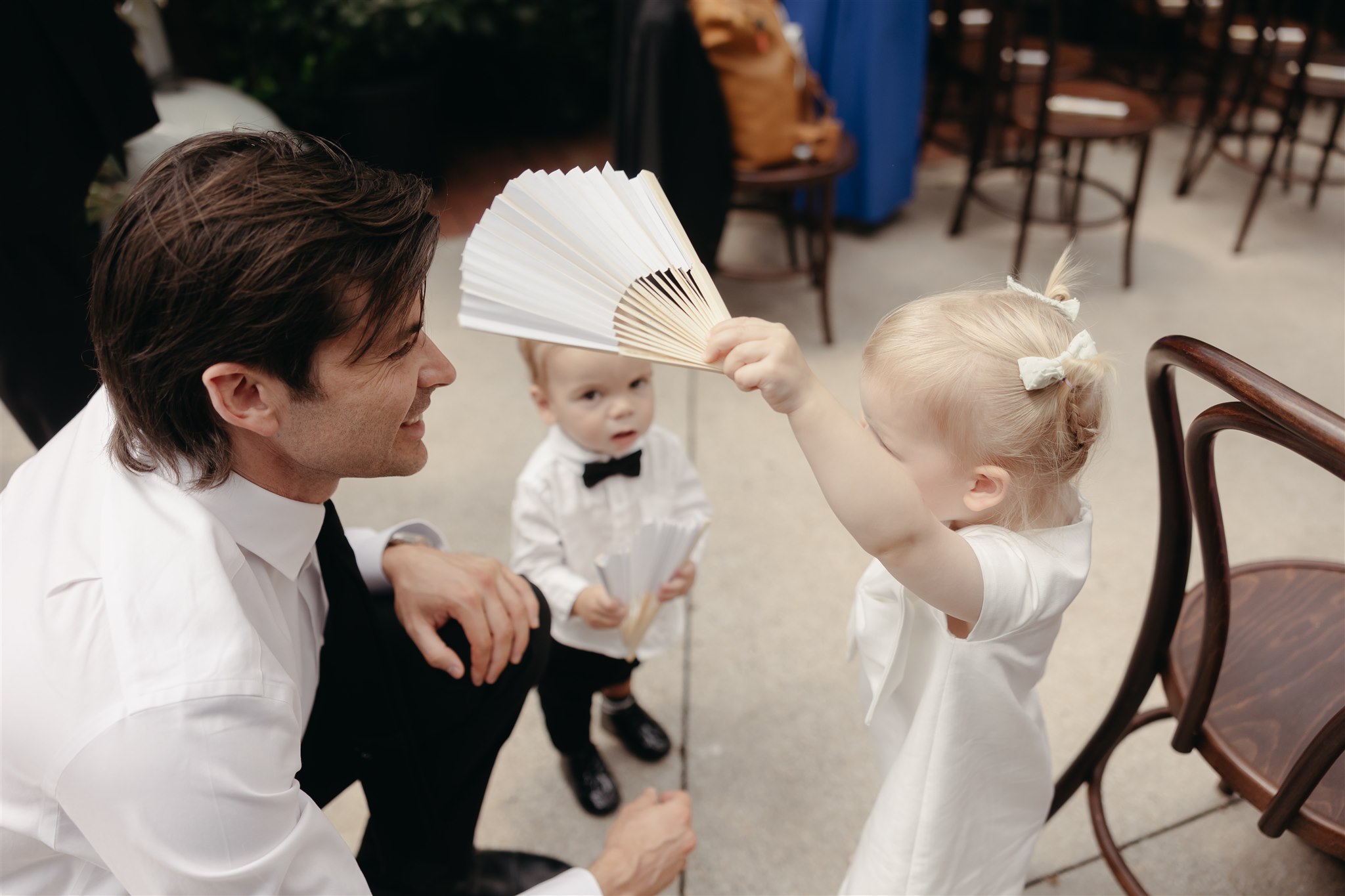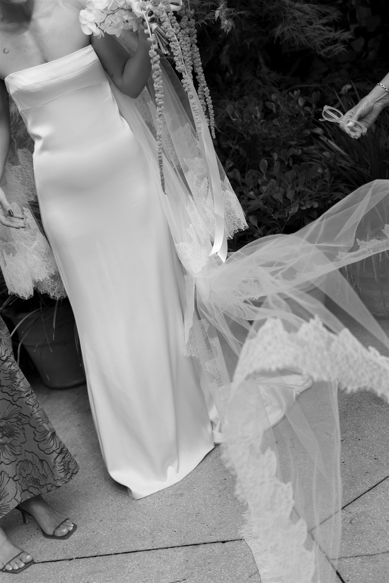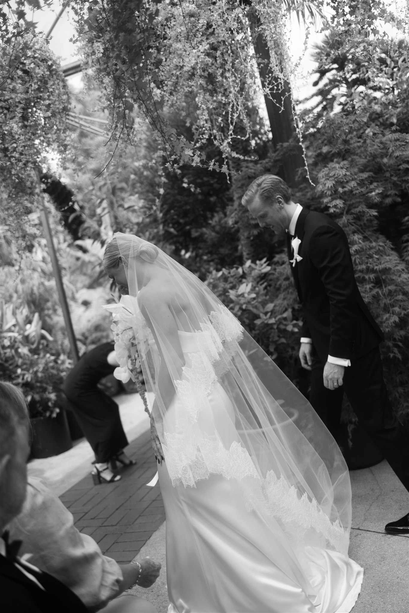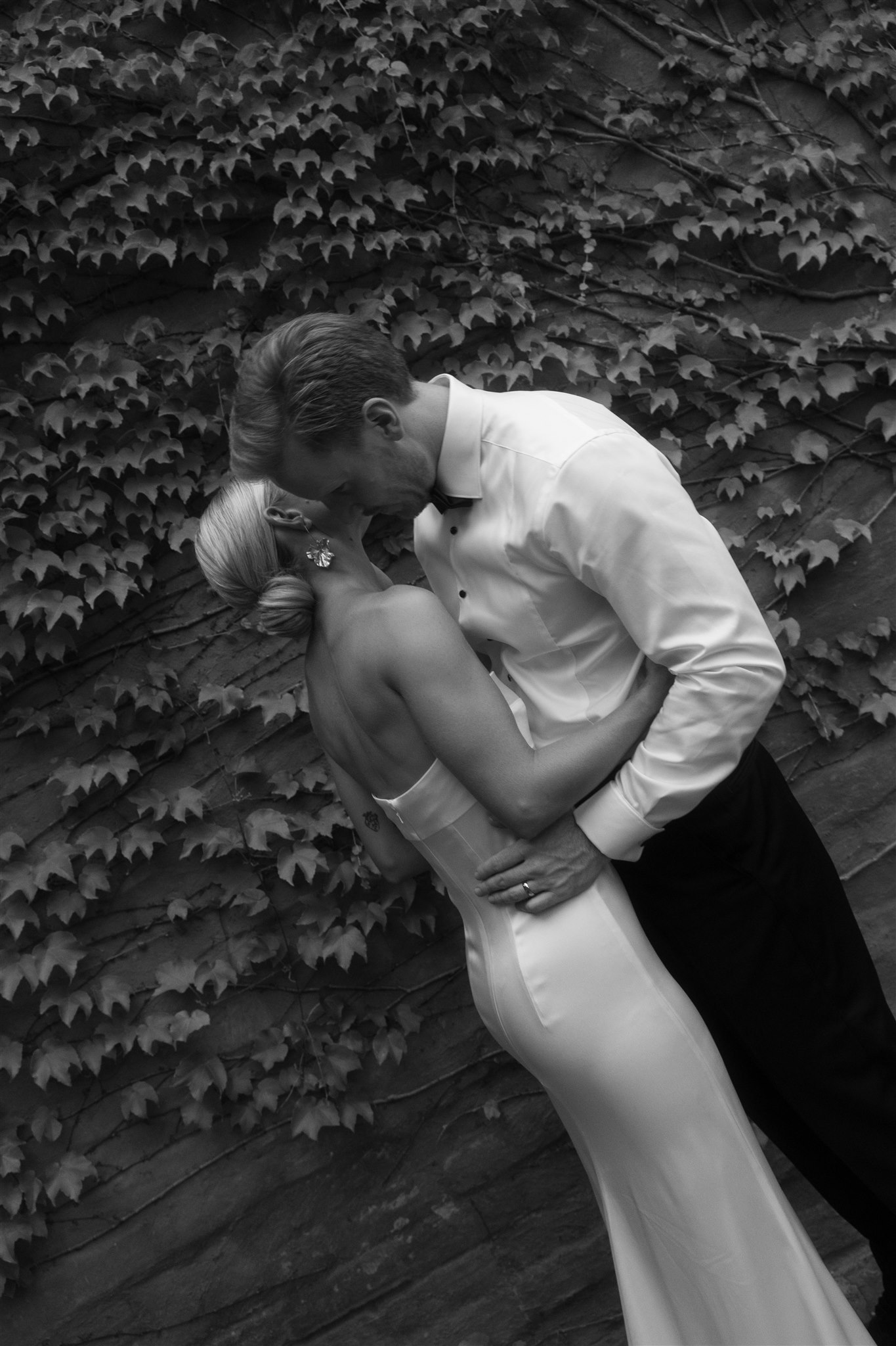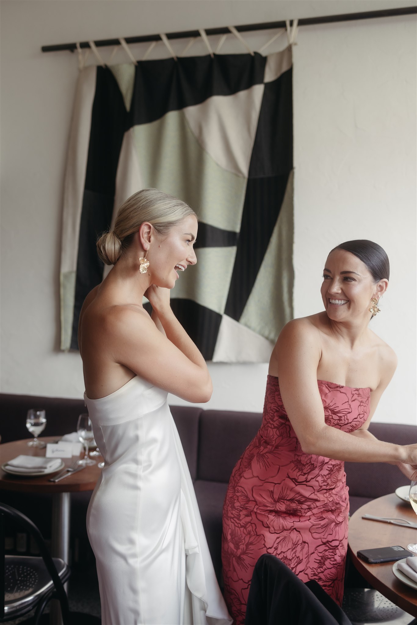 Abby looked stunning in a sleek, minimalist gown by Kyha Studios paired with a long flowing veil, her bridal look was effortlessly elegant. The perfect match for the modern, pared-back feel of the day.