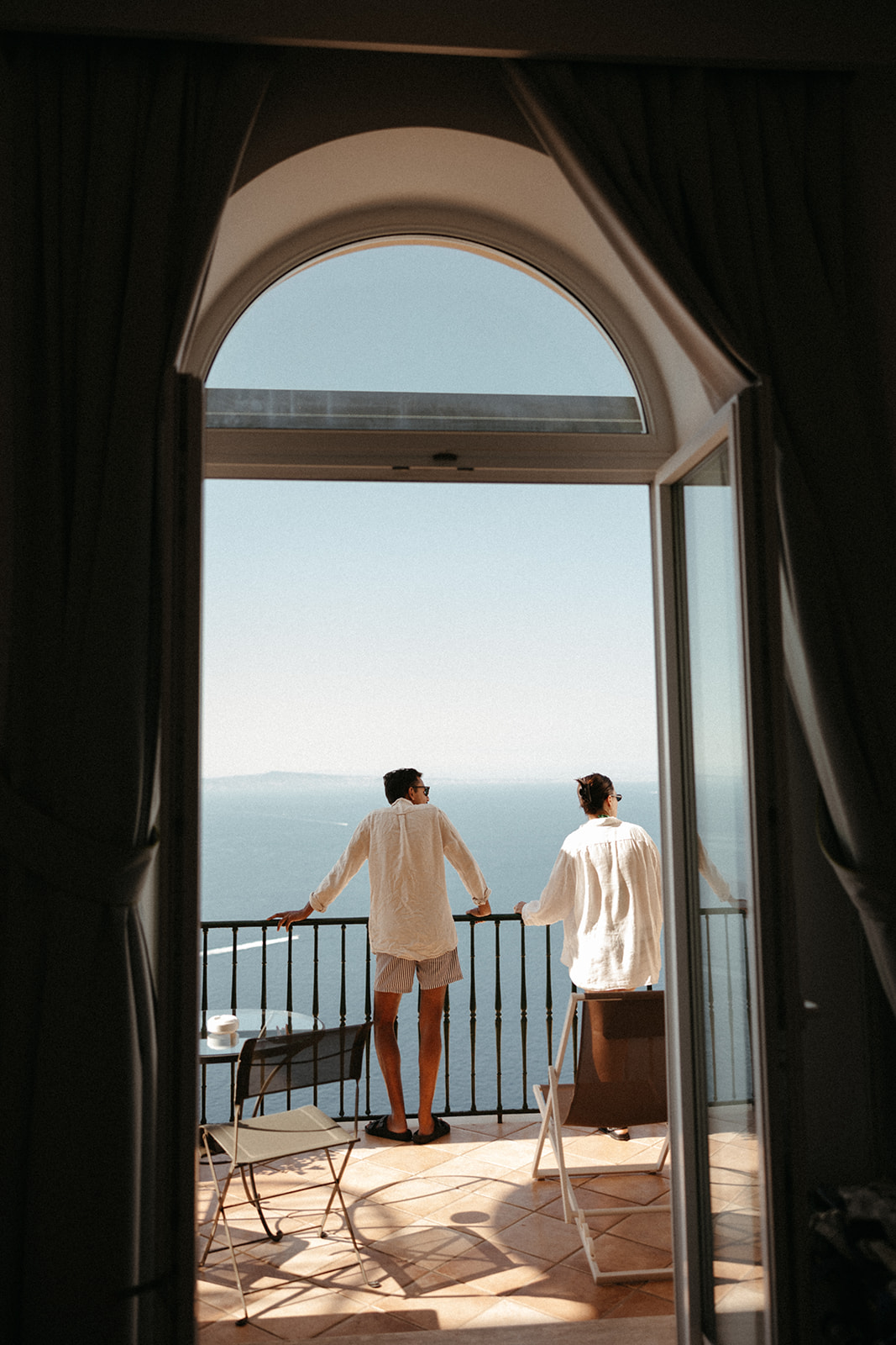 Its terraces overlook the Bay of Naples, providing a setting that’s both intimate and grand. Perfect for couples who value design, detail, and experience.