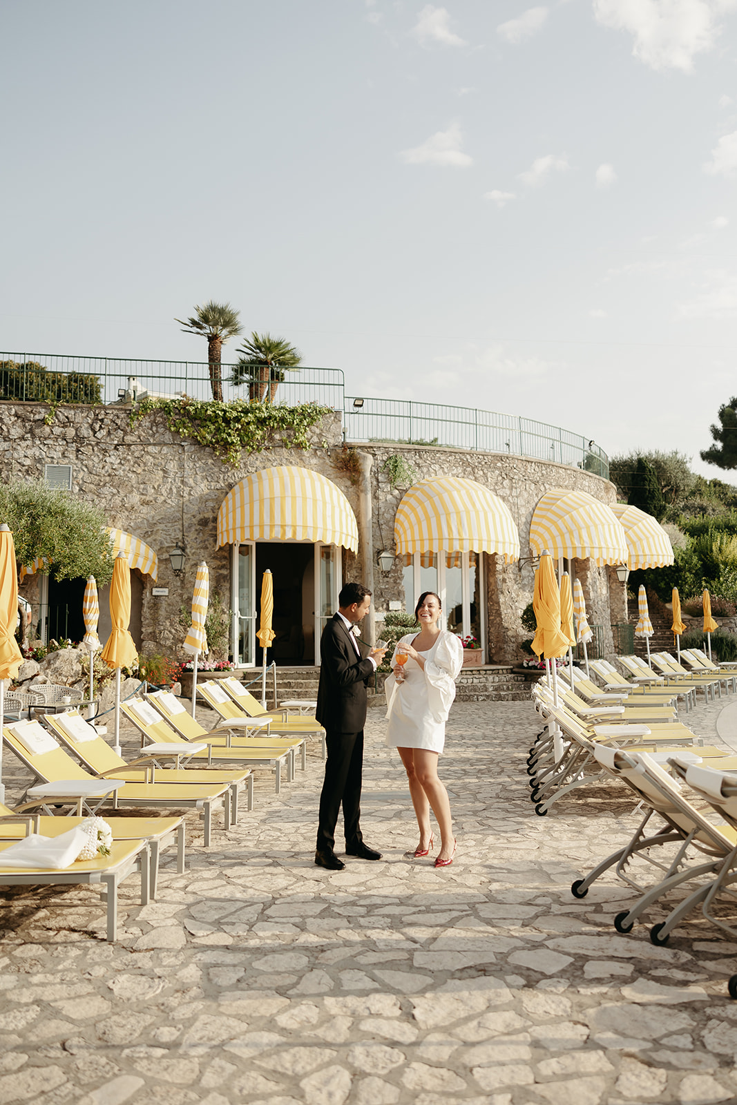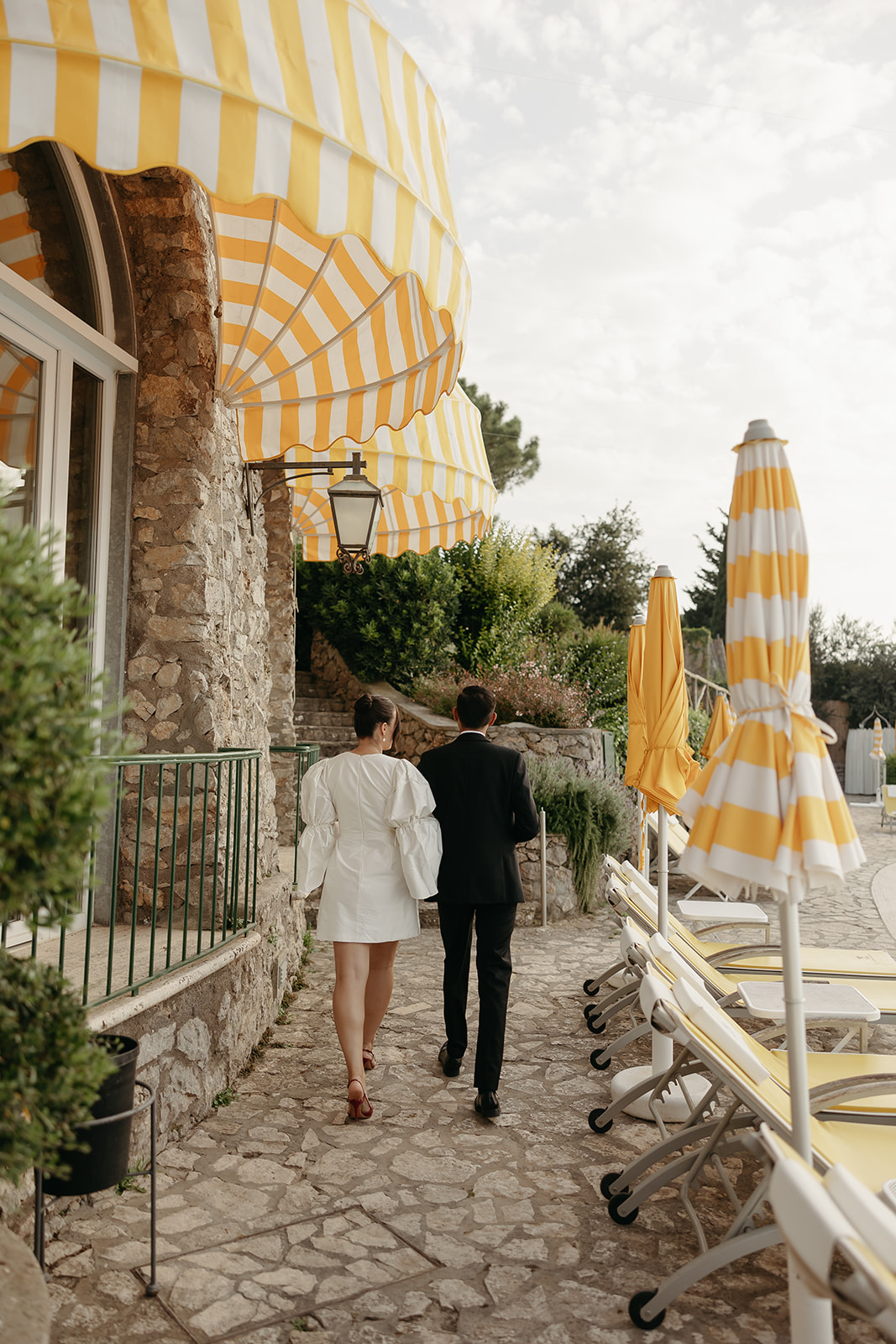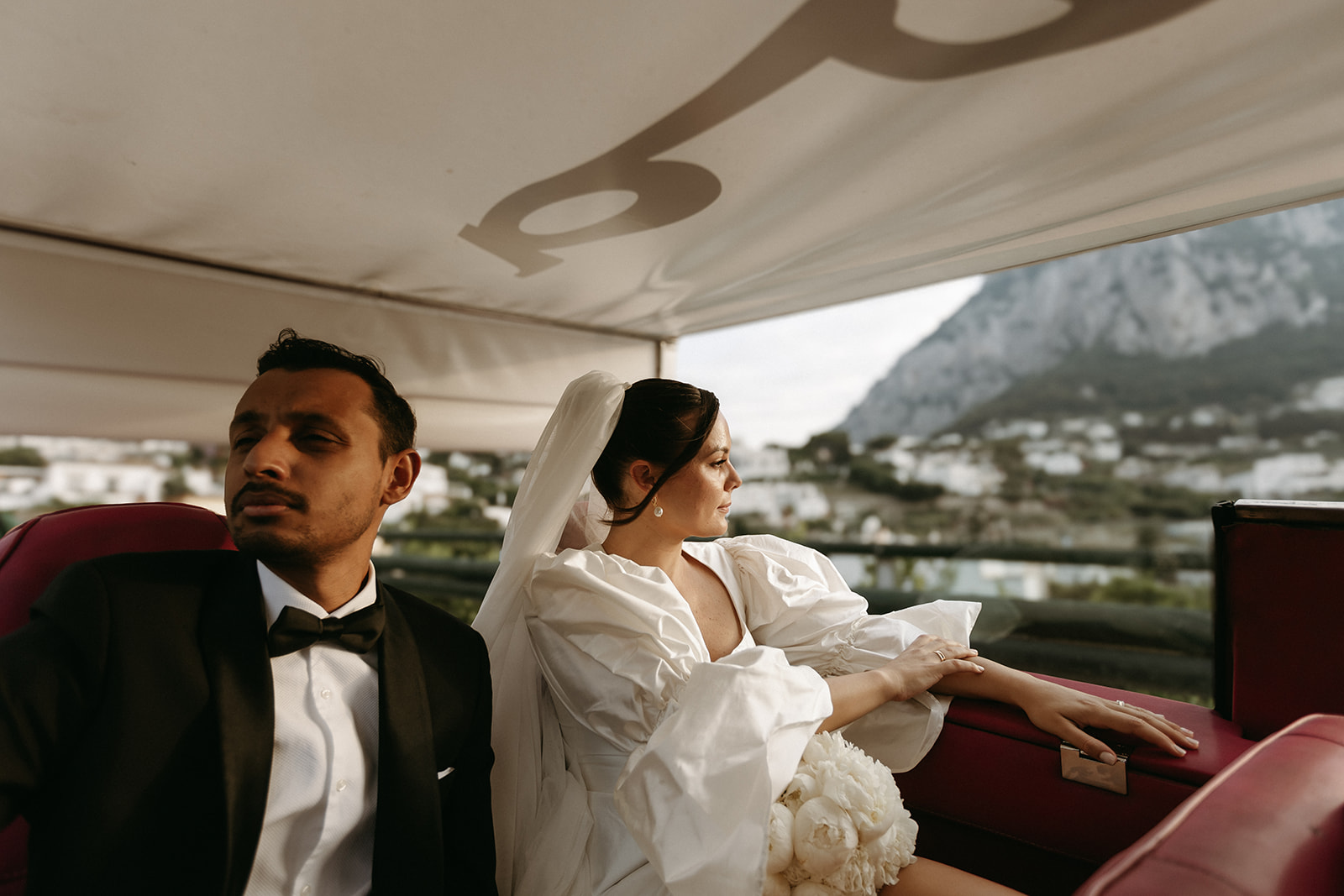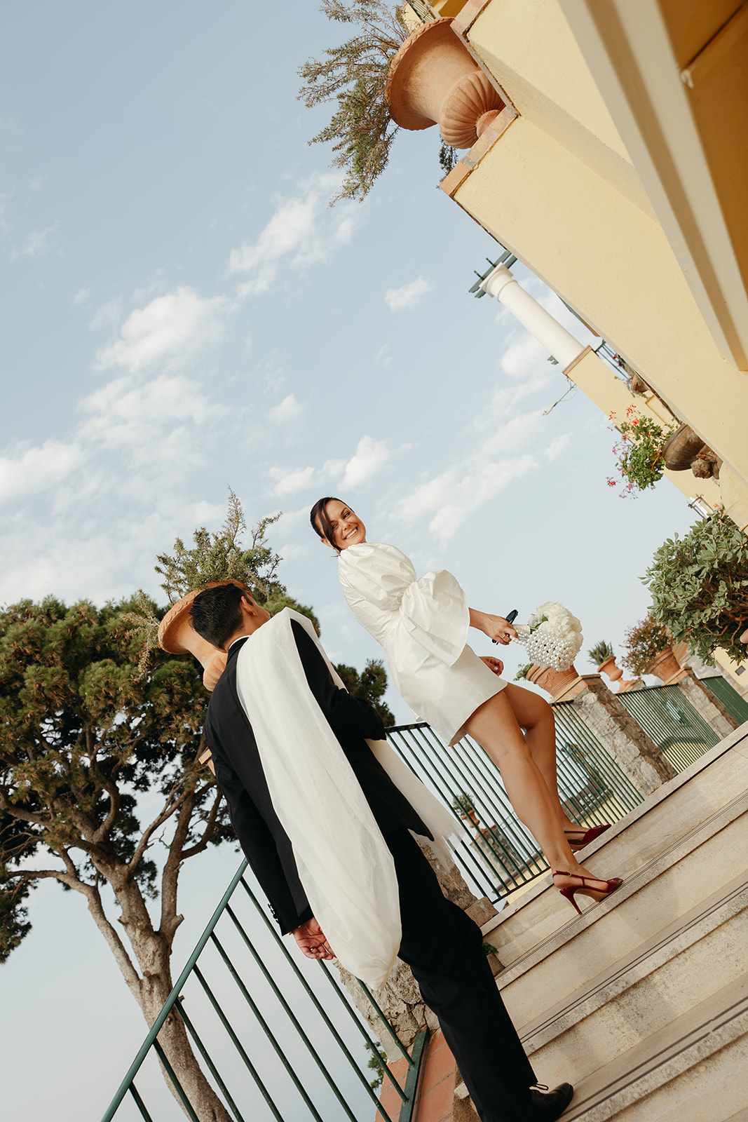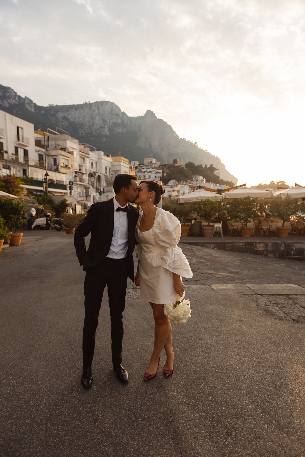 The couple’s fashionable look was a perfect match for Capri. One of Italy’s most breathtaking wedding destinations.