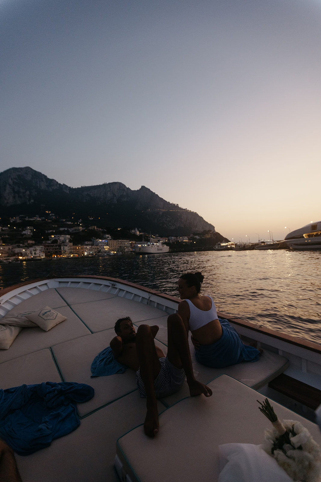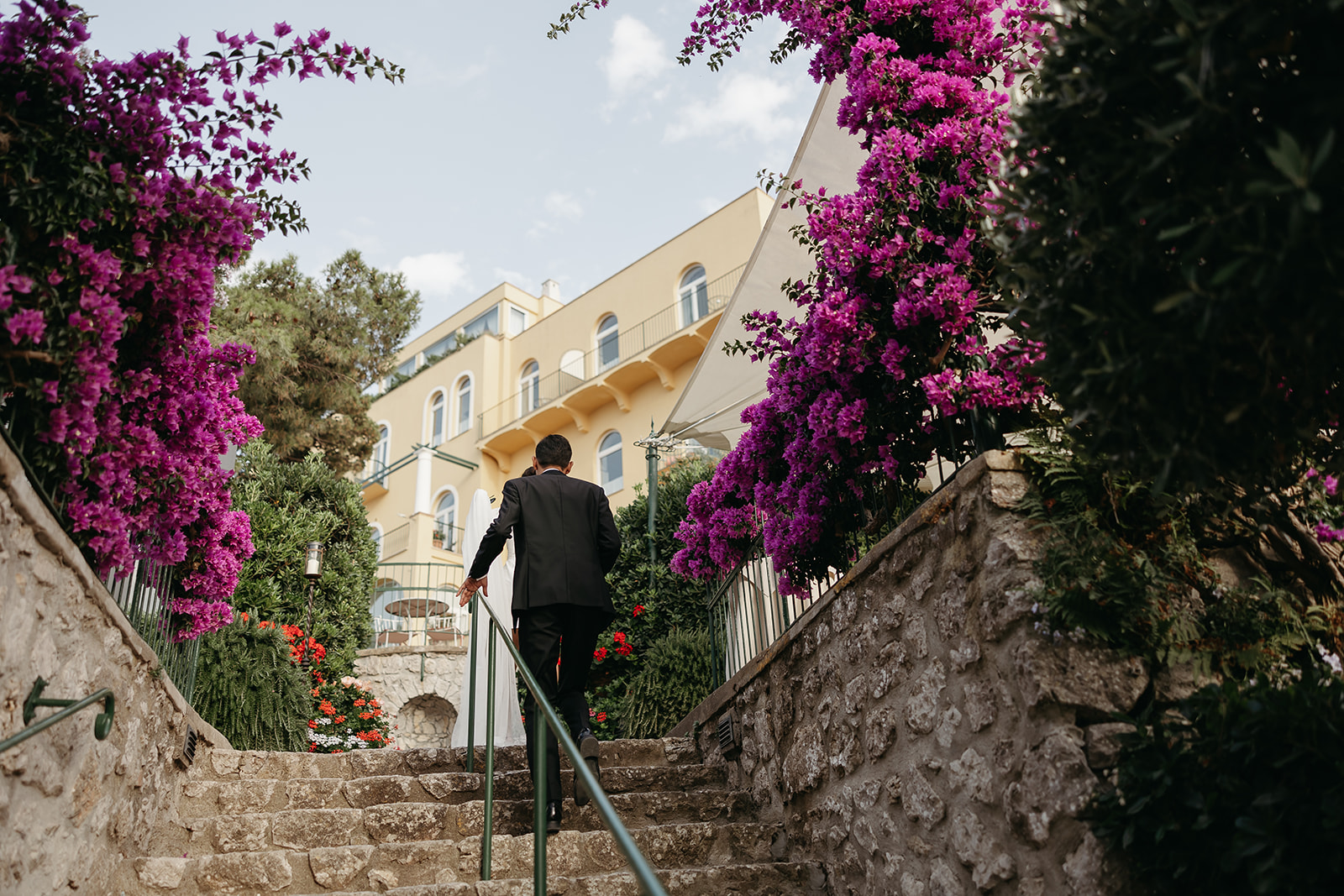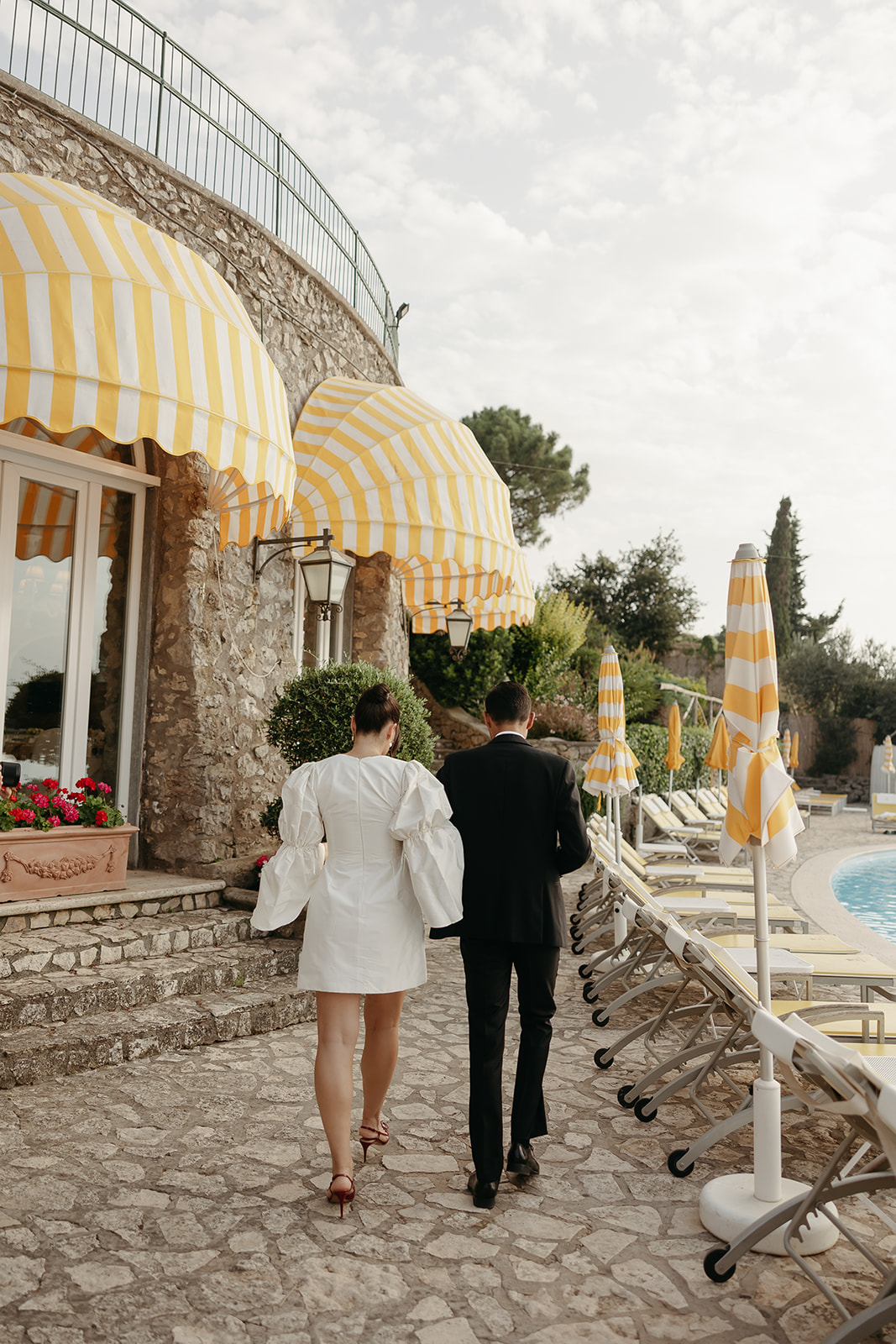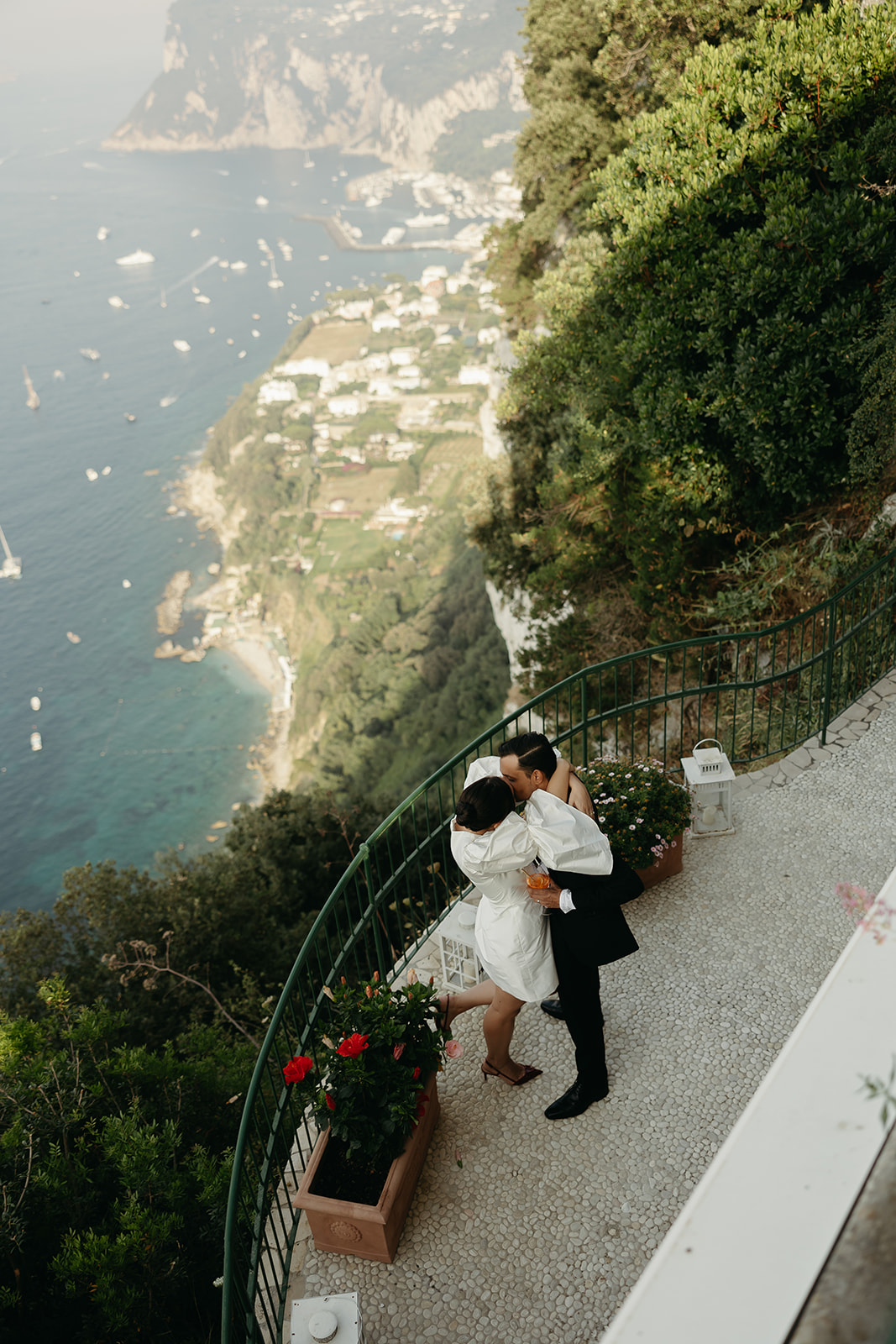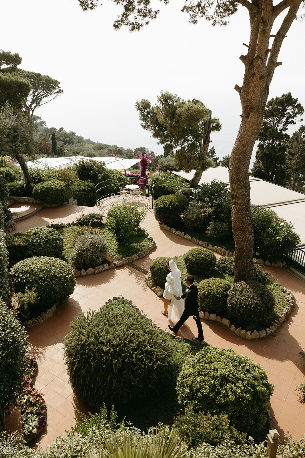 The couple’s fashionable look was a perfect match for Capri. One of Italy’s most breathtaking wedding destinations.
