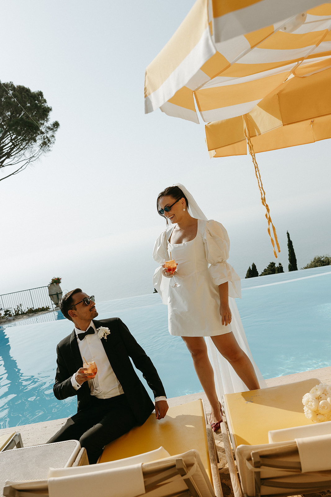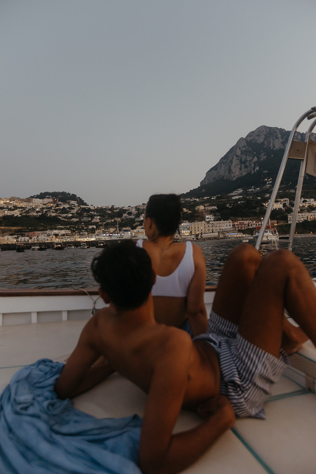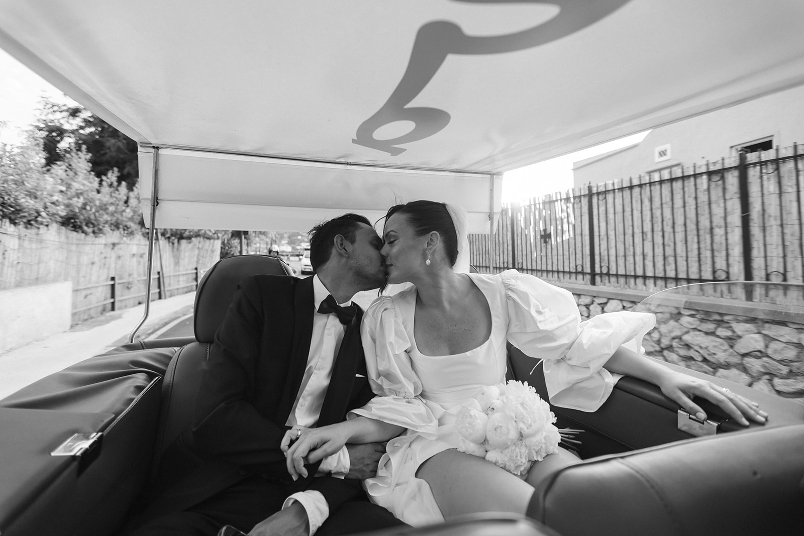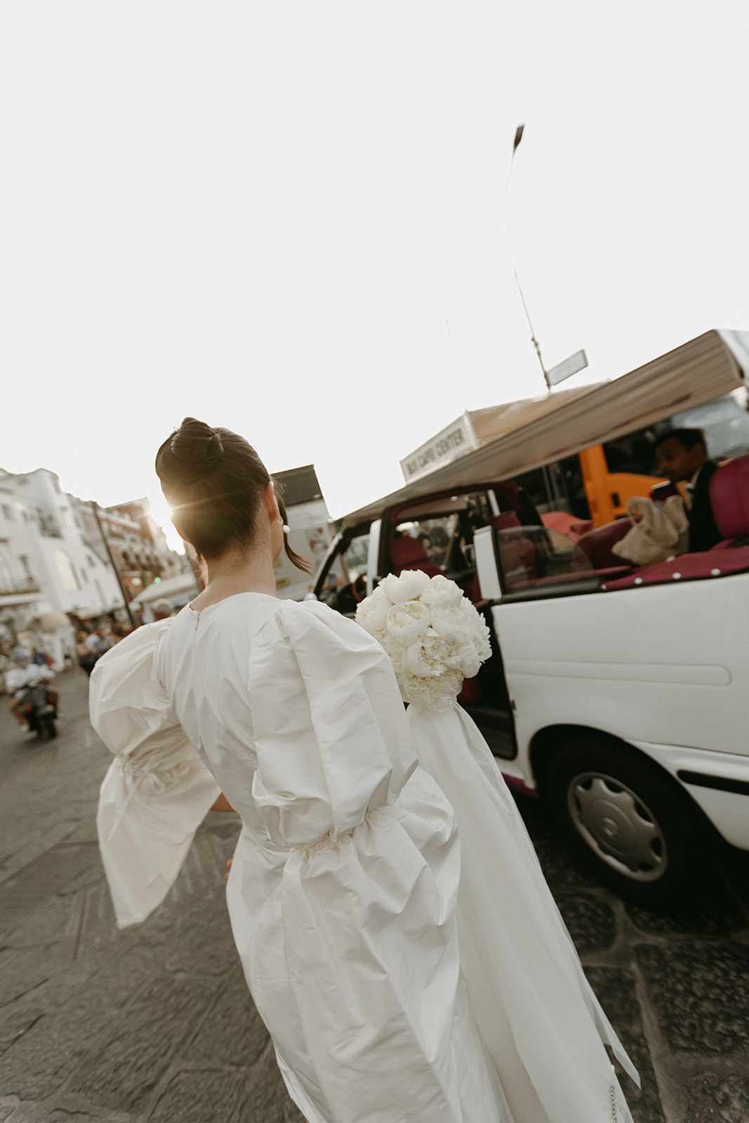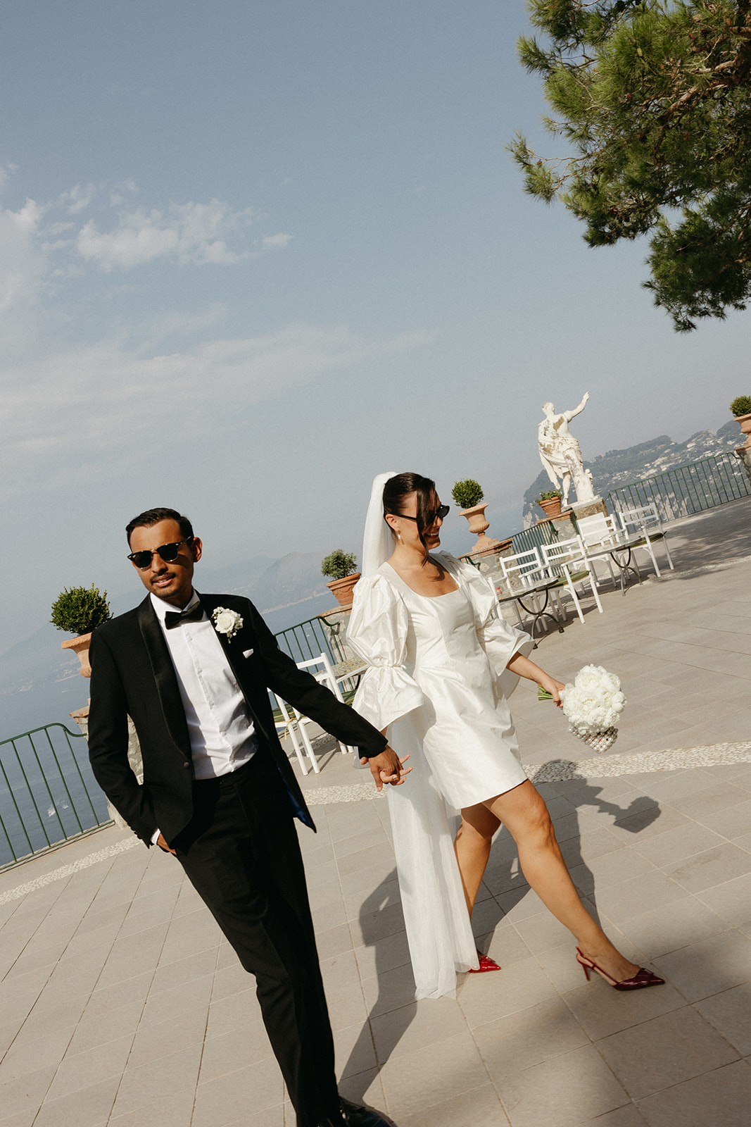 The couple’s fashionable look was a perfect match for Capri. One of Italy’s most breathtaking wedding destinations.
