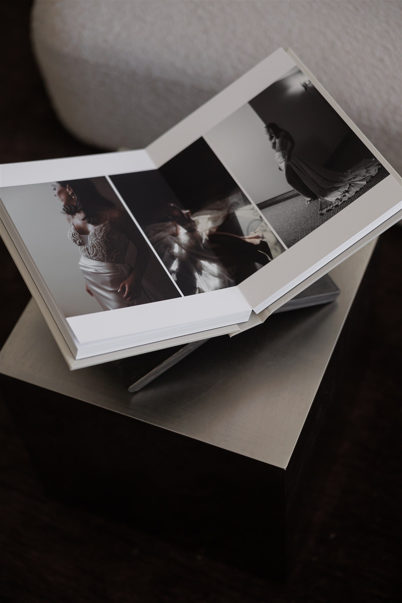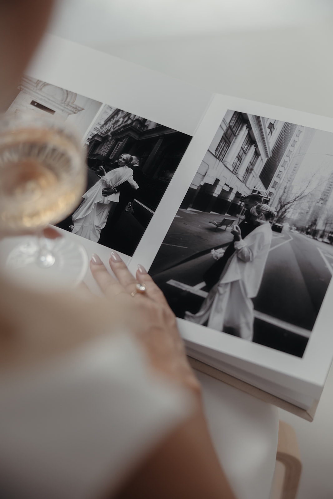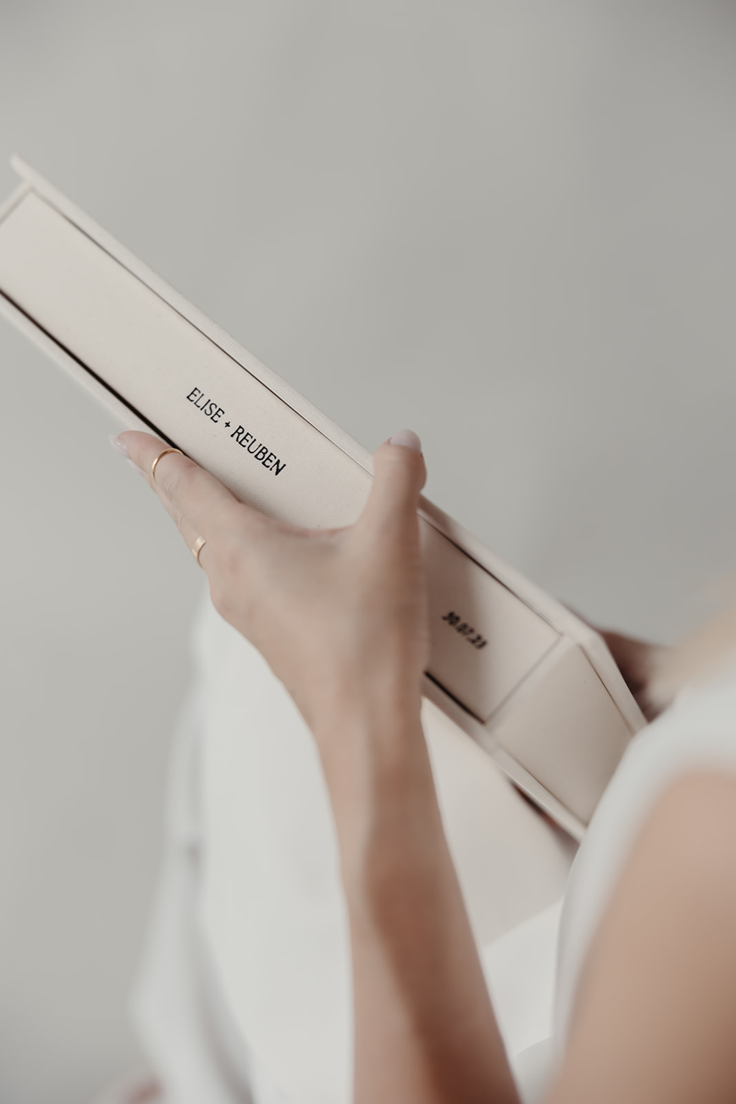 Each fine art wedding album is handcrafted to the highest standards. With beautiful bookbinding, thick lay-flat pages, and archival-quality printing that preserves your photographs for generations. Holding one feels like turning the pages of a high-end art book. Timeless, weighty, and rich in texture. Every page is curated to tell your love story with intention and elegance. Transforming your photos into a work of art.