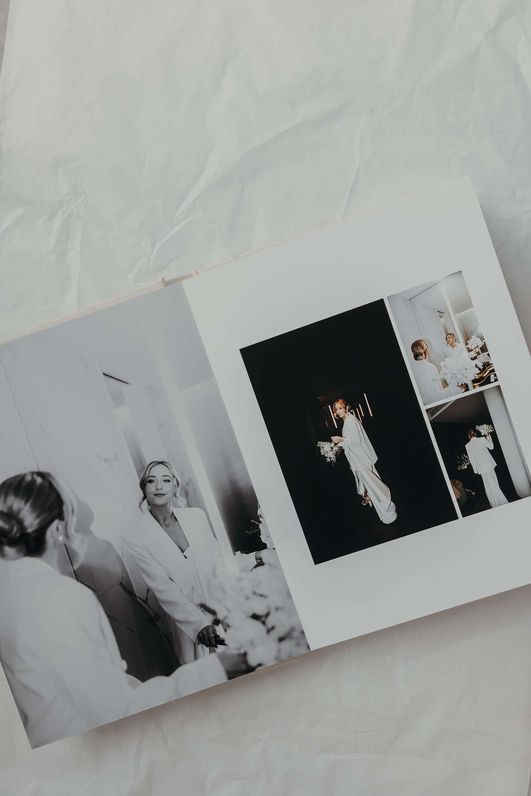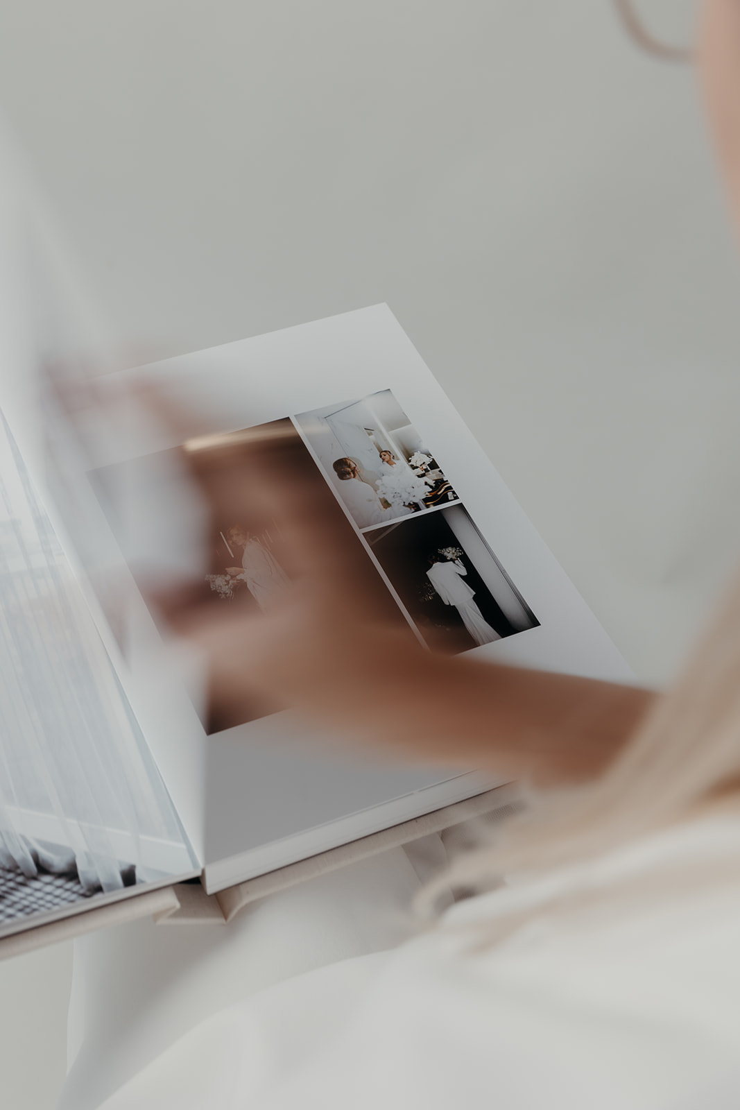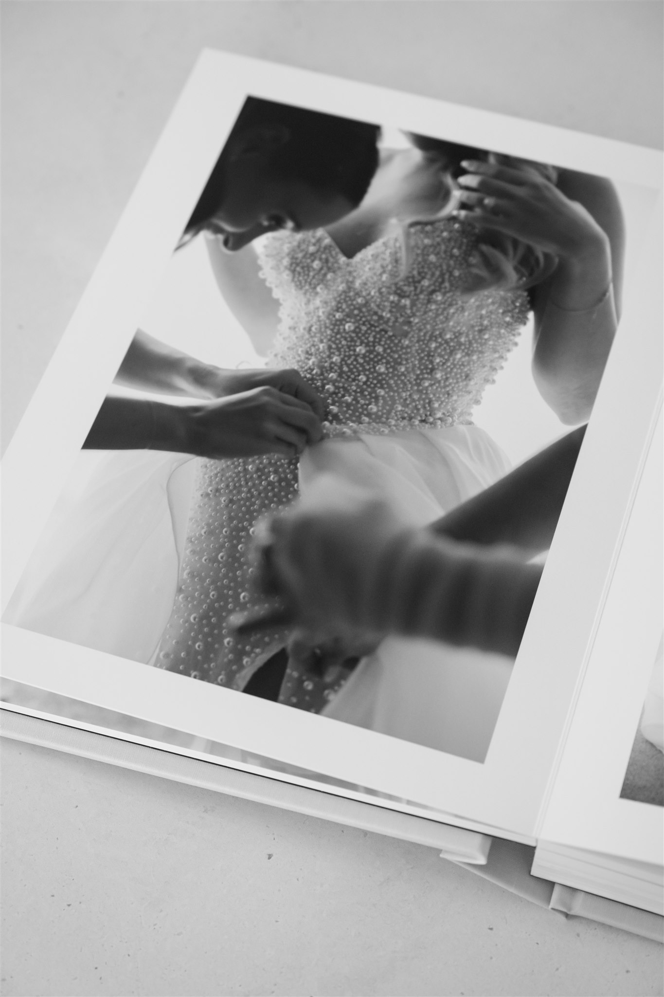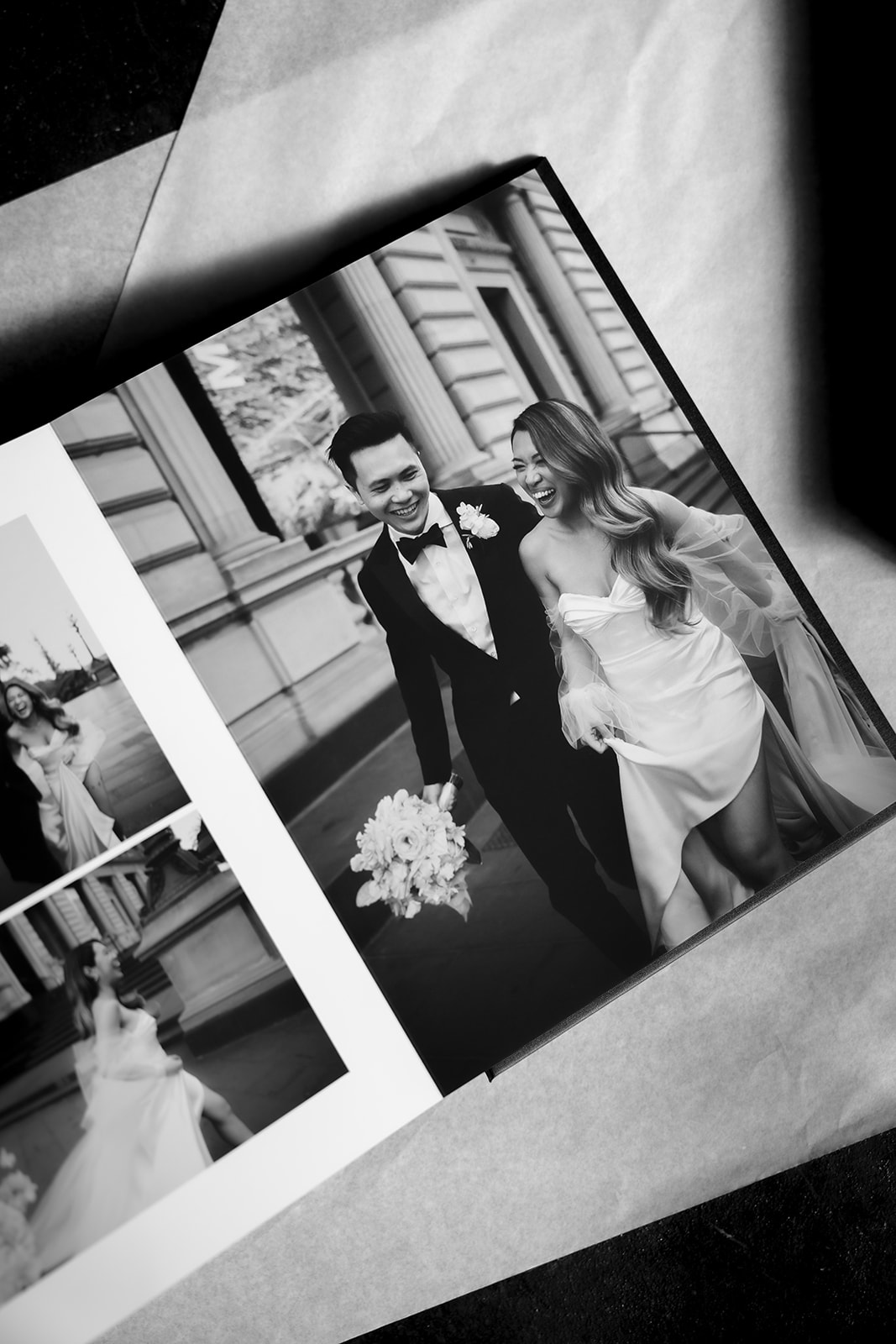 Each fine art wedding album is handcrafted to the highest standards. With beautiful bookbinding, thick lay-flat pages, and archival-quality printing that preserves your photographs for generations. Holding one feels like turning the pages of a high-end art book. Timeless, weighty, and rich in texture. Every page is curated to tell your love story with intention and elegance. Transforming your photos into a work of art.