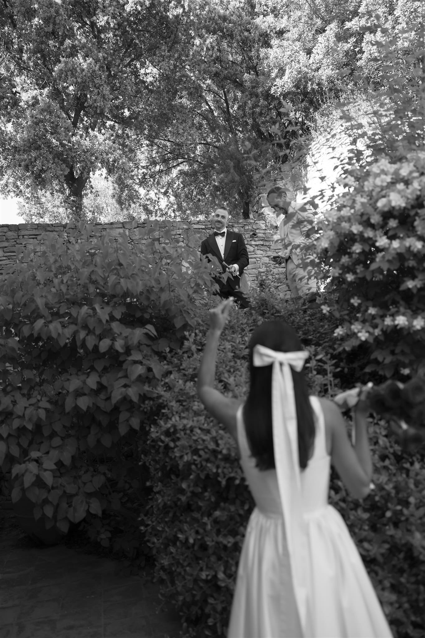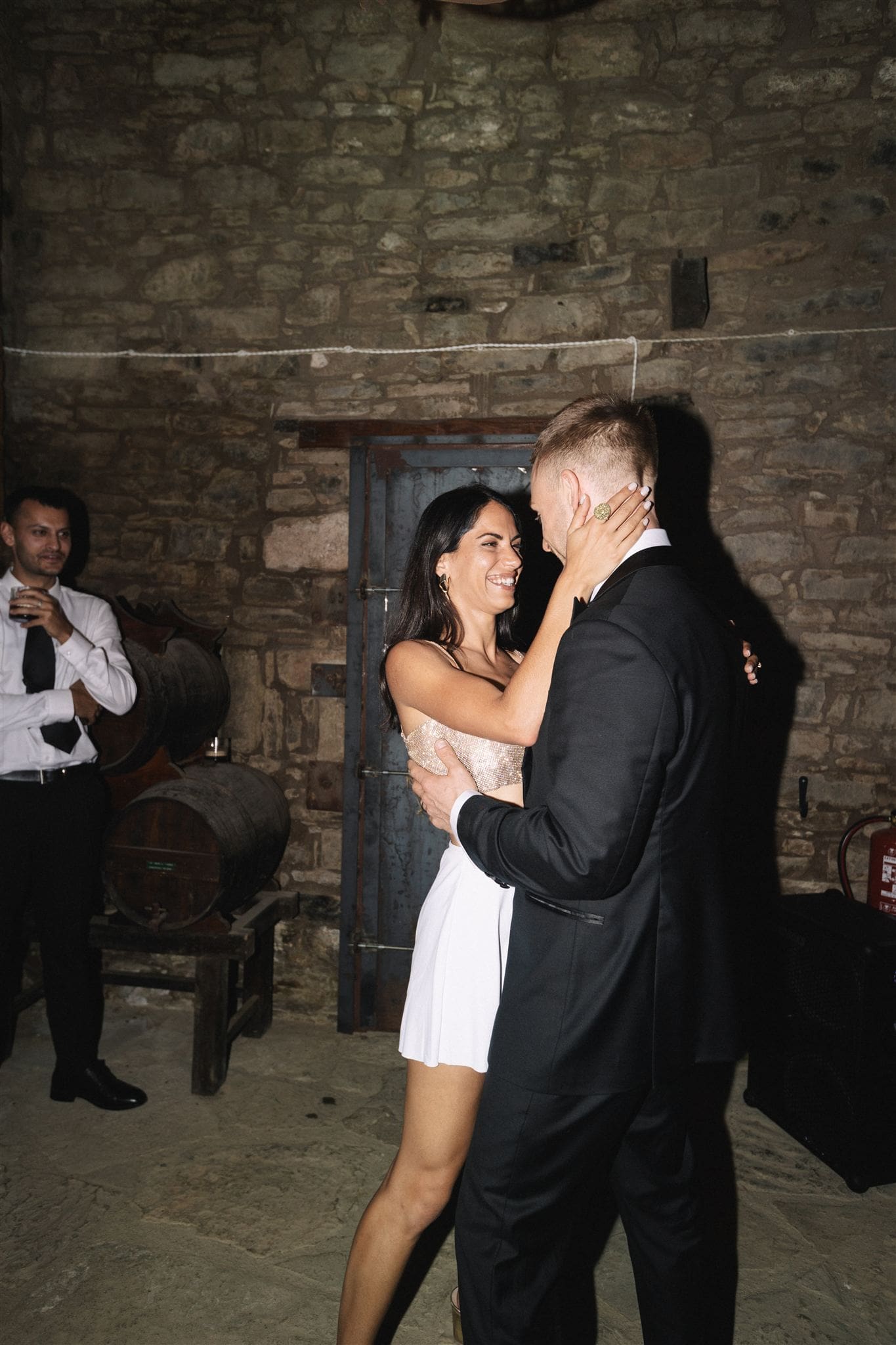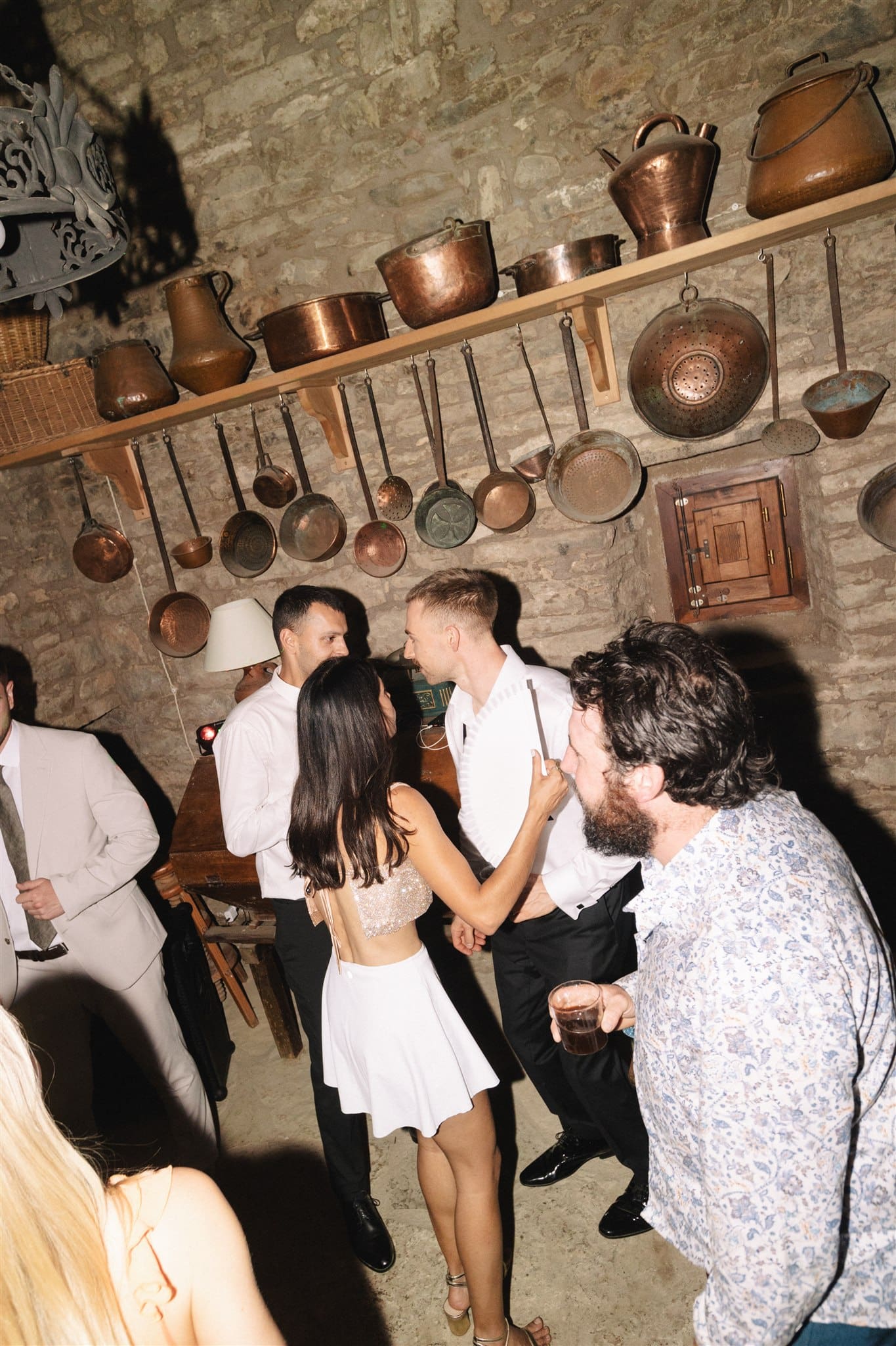 They shared their vows, surrounded by 12 of their closest people, as warm light poured across the courtyard. It was intimate, emotional, full of tears and laughter in equal measure. Later that night, they turned the villa’s basement into a makeshift dance floor — affectionately named “the rave cave” or “boiler room” — where the music and joy continued.