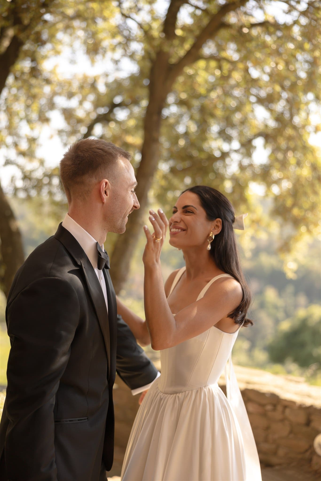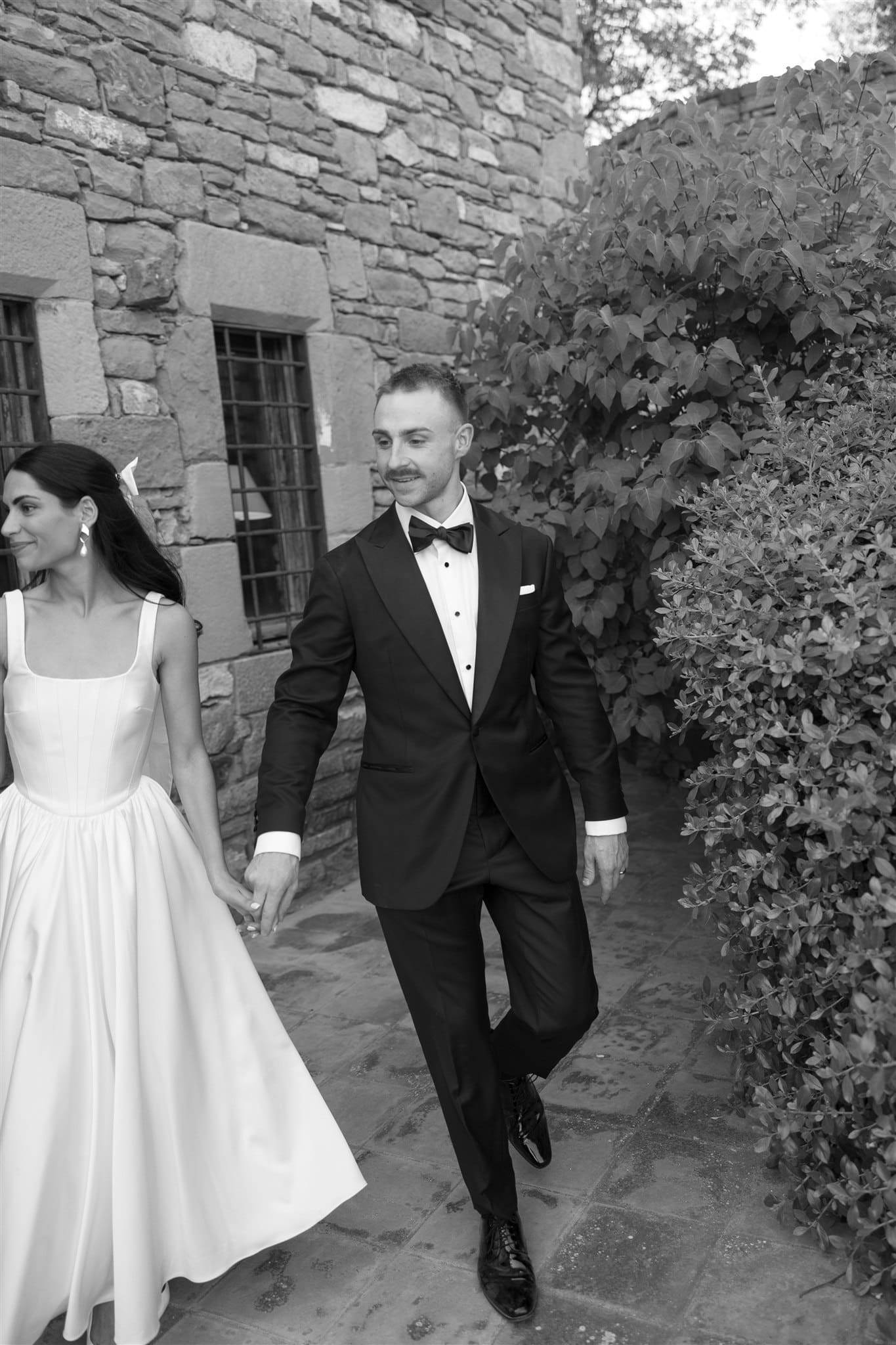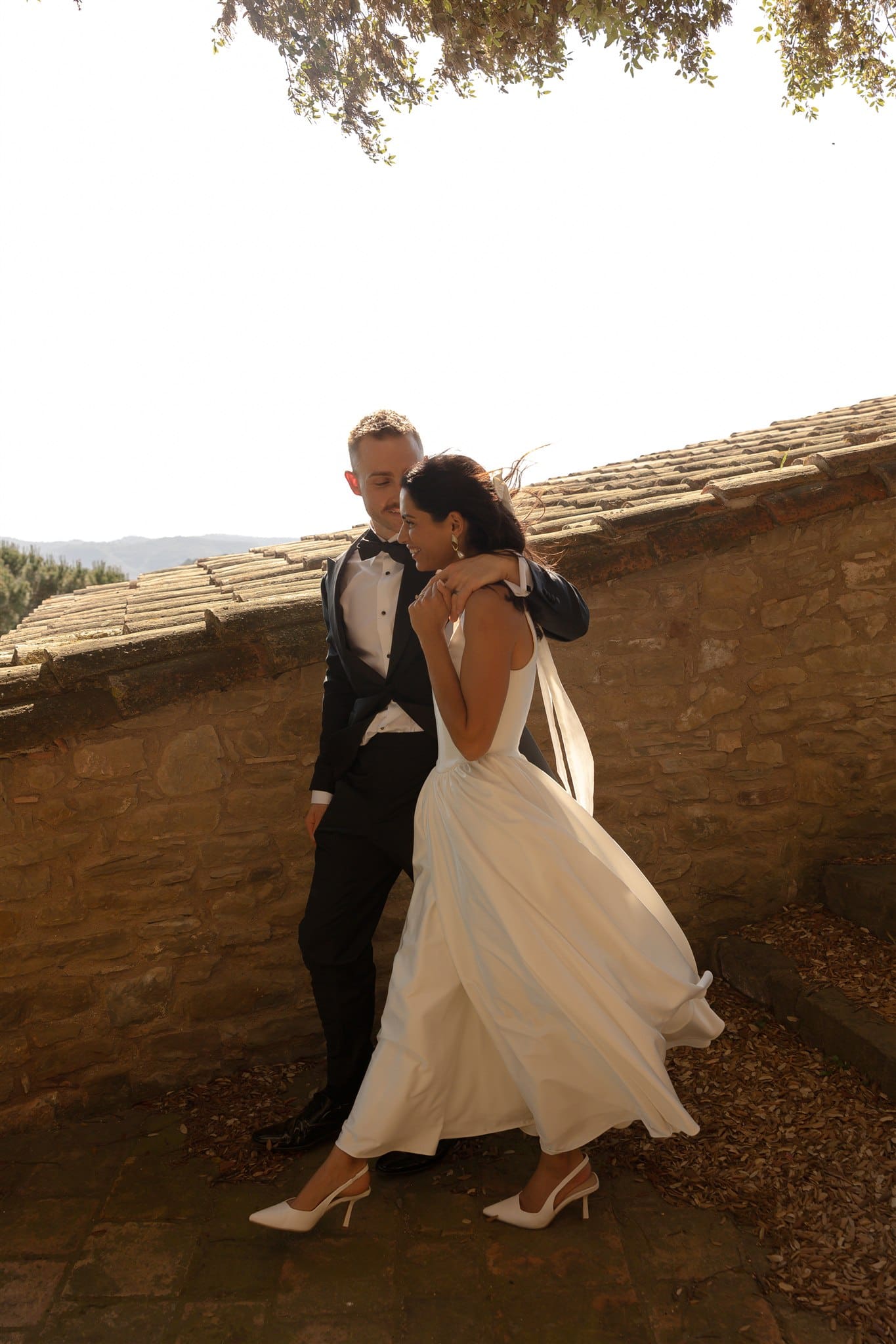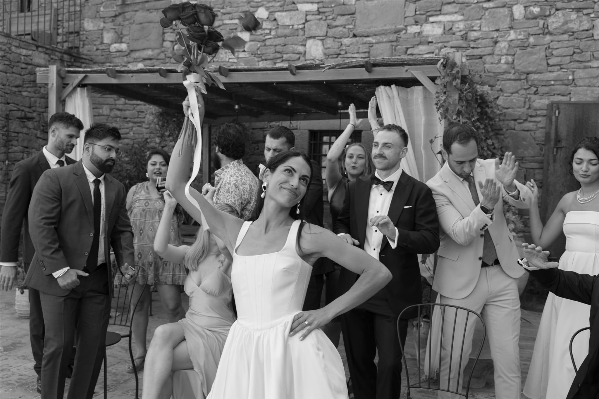 They shared their vows, surrounded by 12 of their closest people, as warm light poured across the courtyard. It was intimate, emotional, full of tears and laughter in equal measure. Later that night, they turned the villa’s basement into a makeshift dance floor — affectionately named “the rave cave” or “boiler room” — where the music and joy continued.