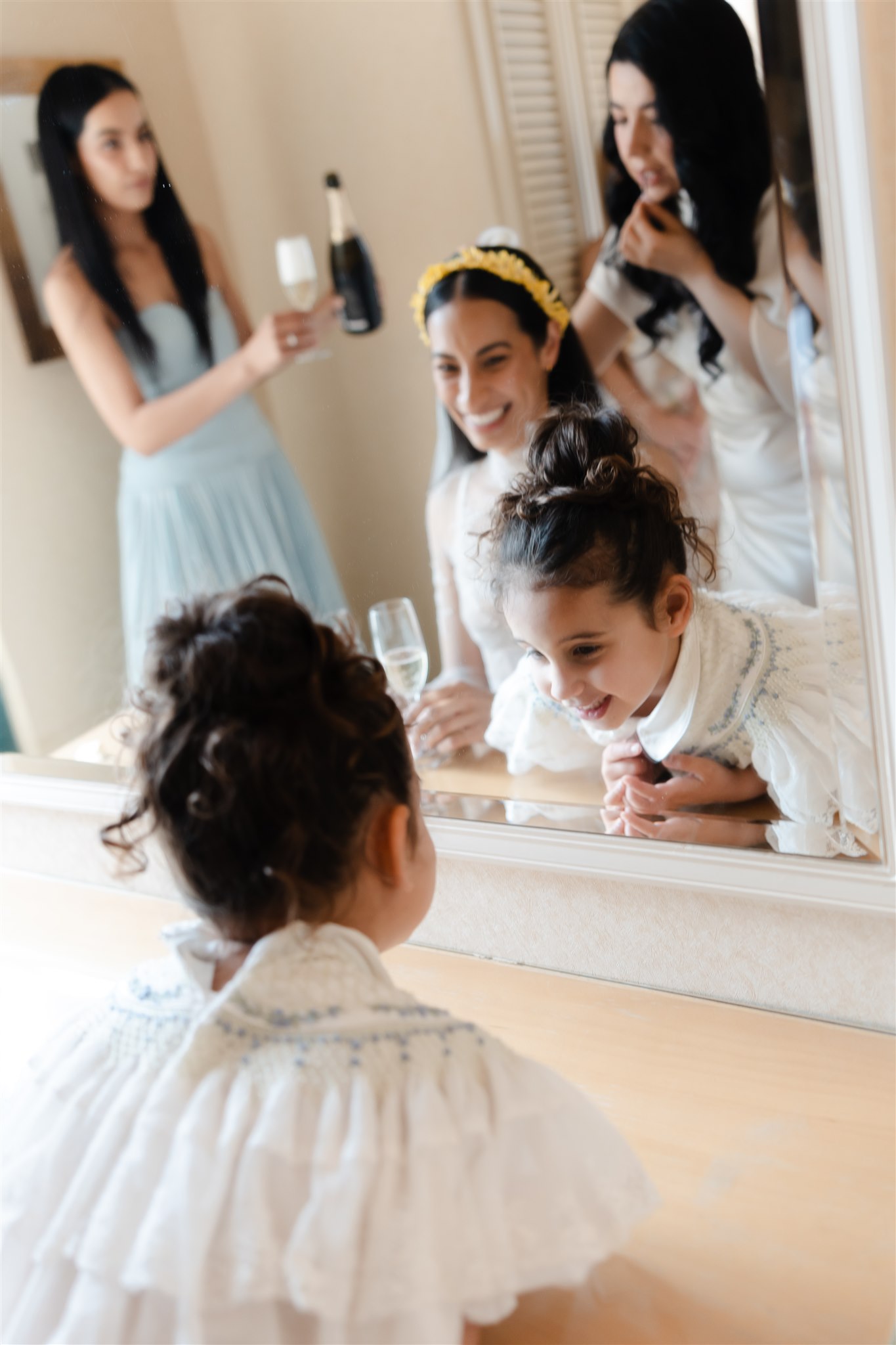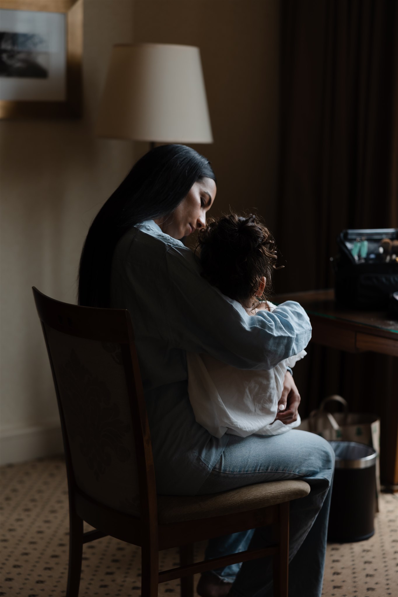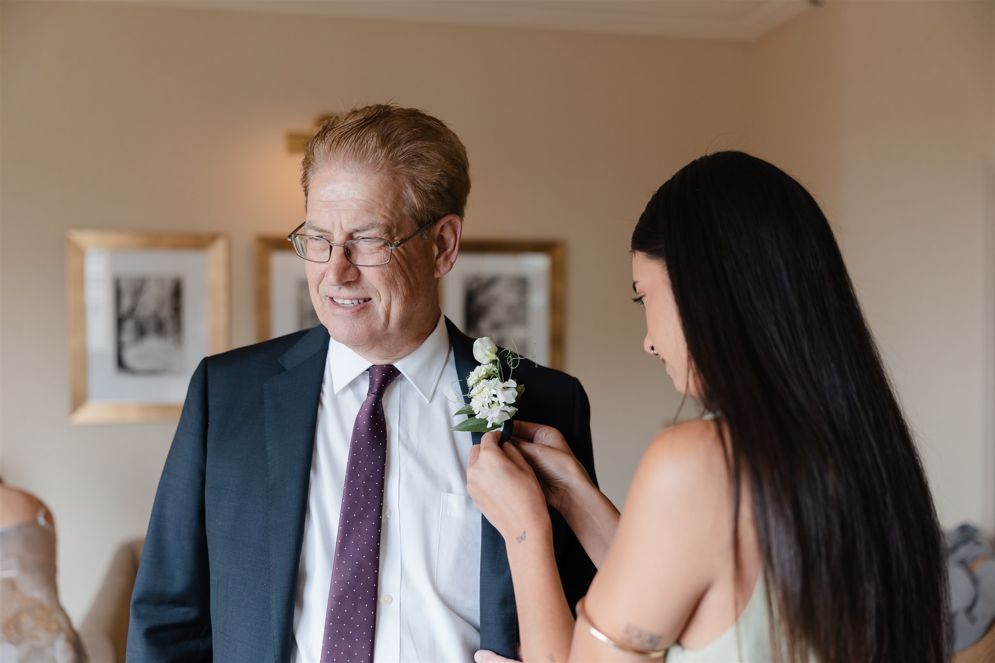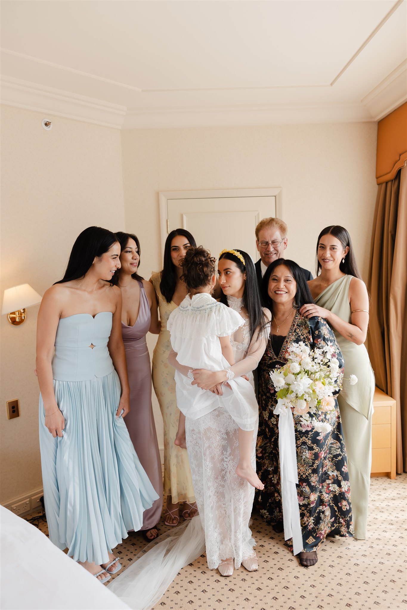 It was important to include their daughter, Evelyn, in as many aspects of the day as possible. The three of them stayed together the night before, cherishing those final moments together before their big day. Again the next morning, Evelyn was there, getting ready with the girls before heading over to Chris’ room to spend time with him.