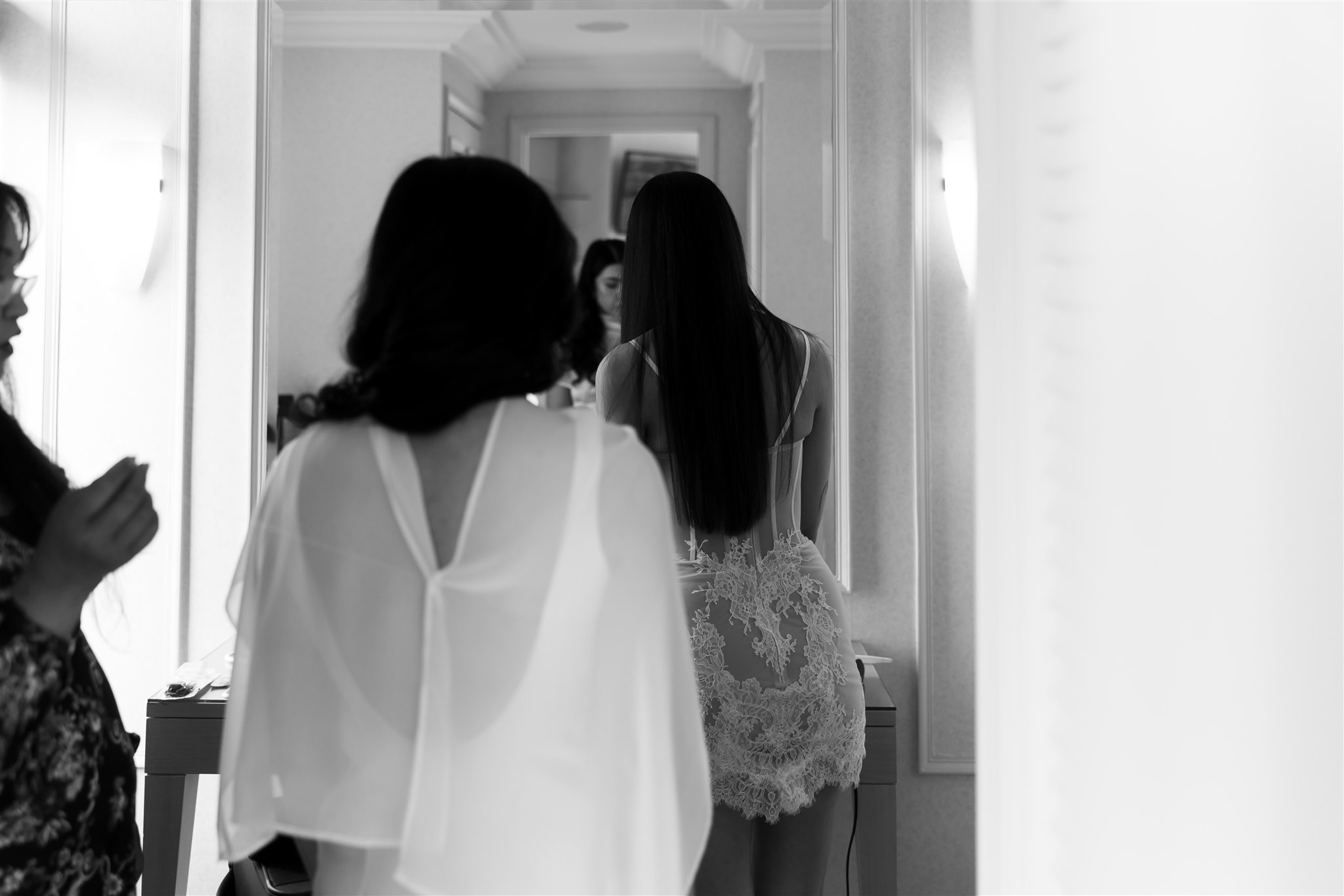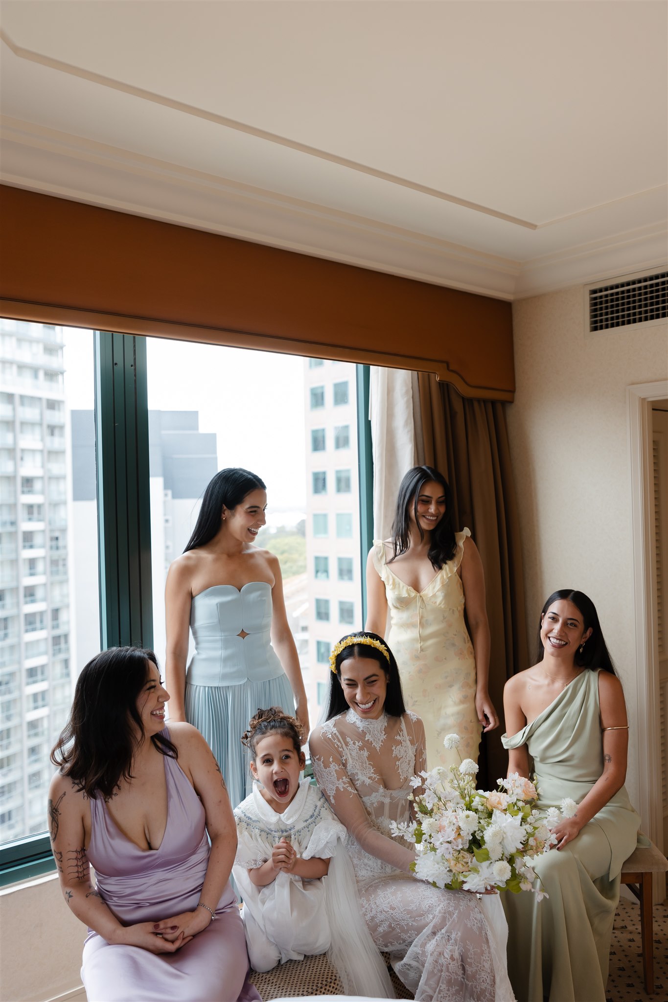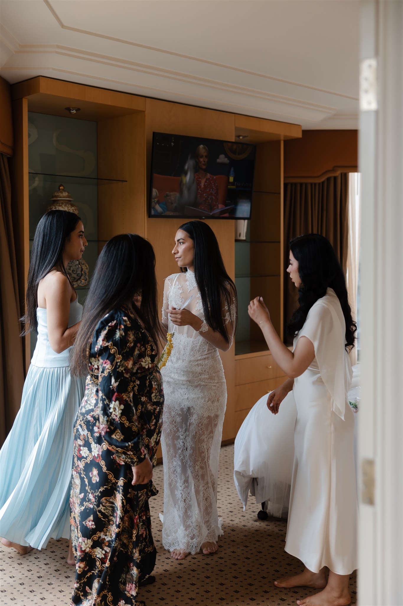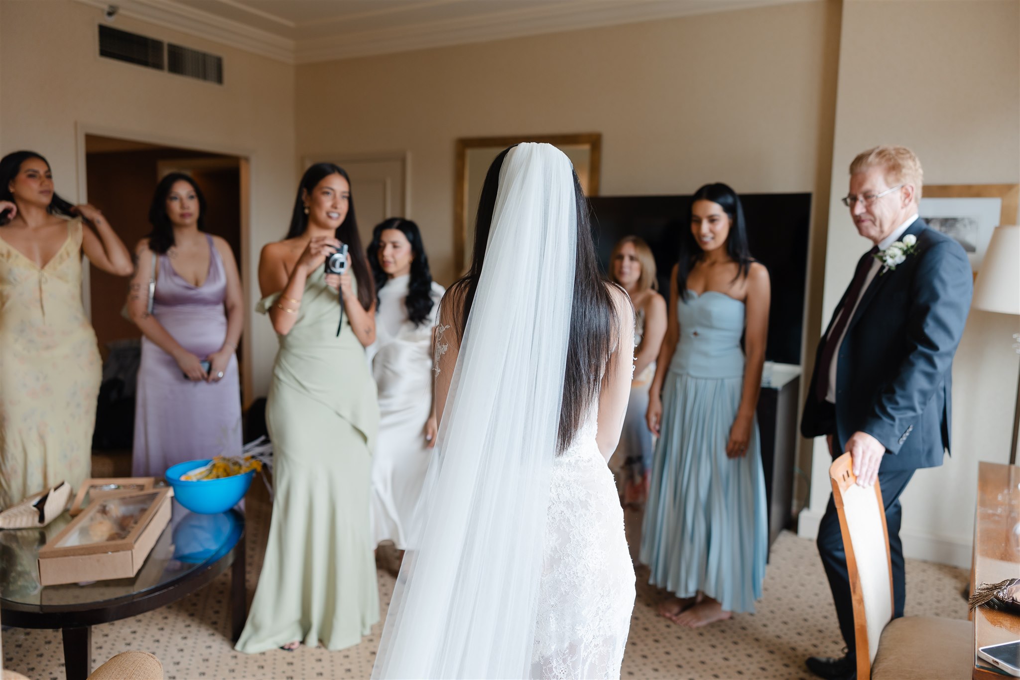 It was important to include their daughter, Evelyn, in as many aspects of the day as possible. The three of them stayed together the night before, cherishing those final moments together before their big day. Again the next morning, Evelyn was there, getting ready with the girls before heading over to Chris’ room to spend time with him.
