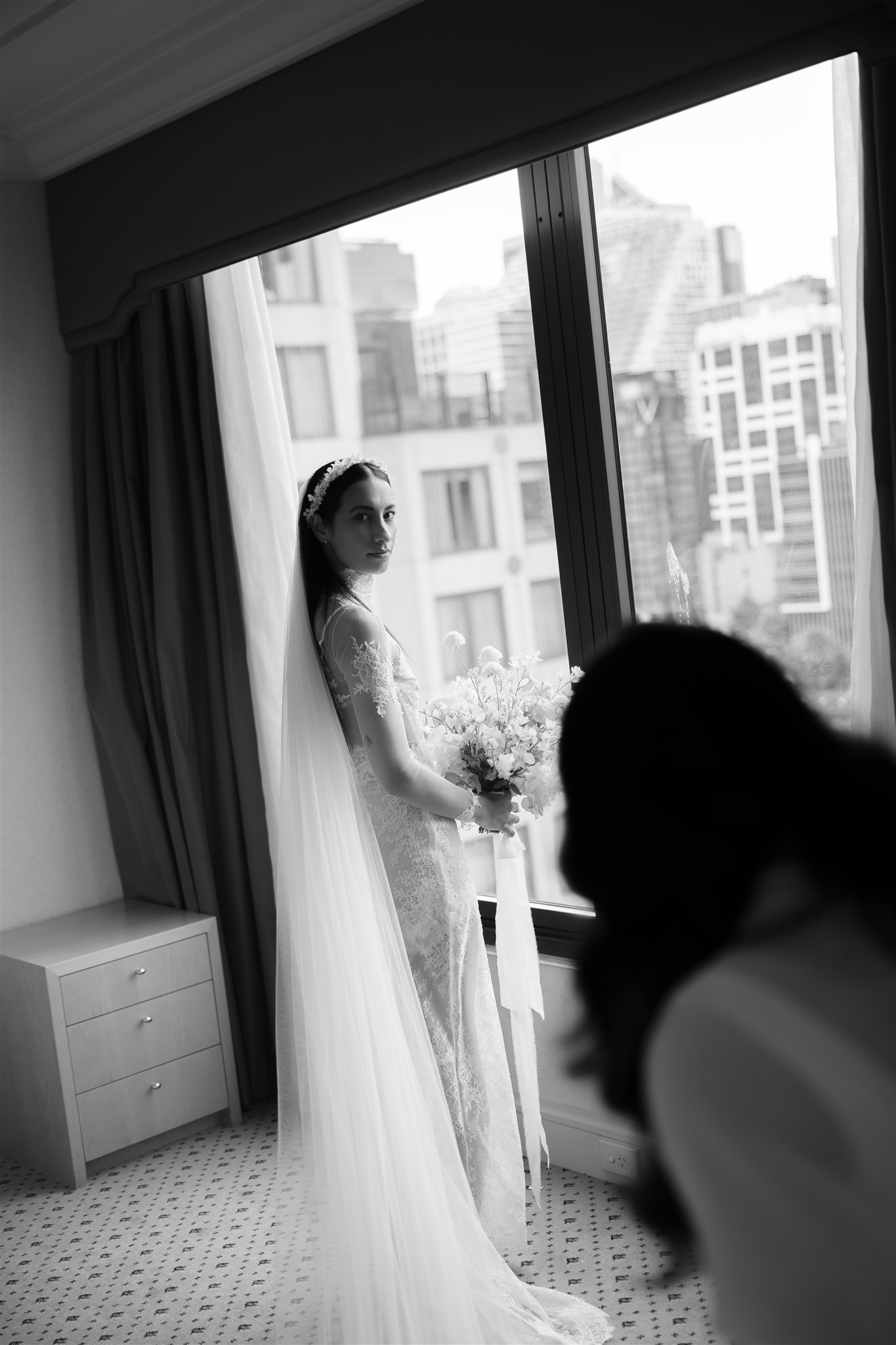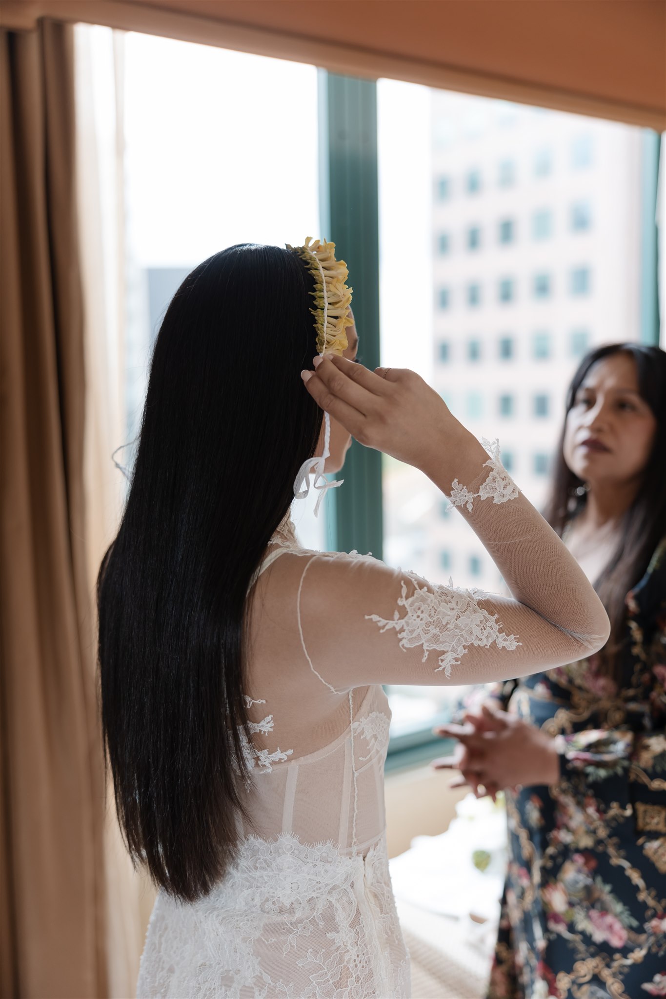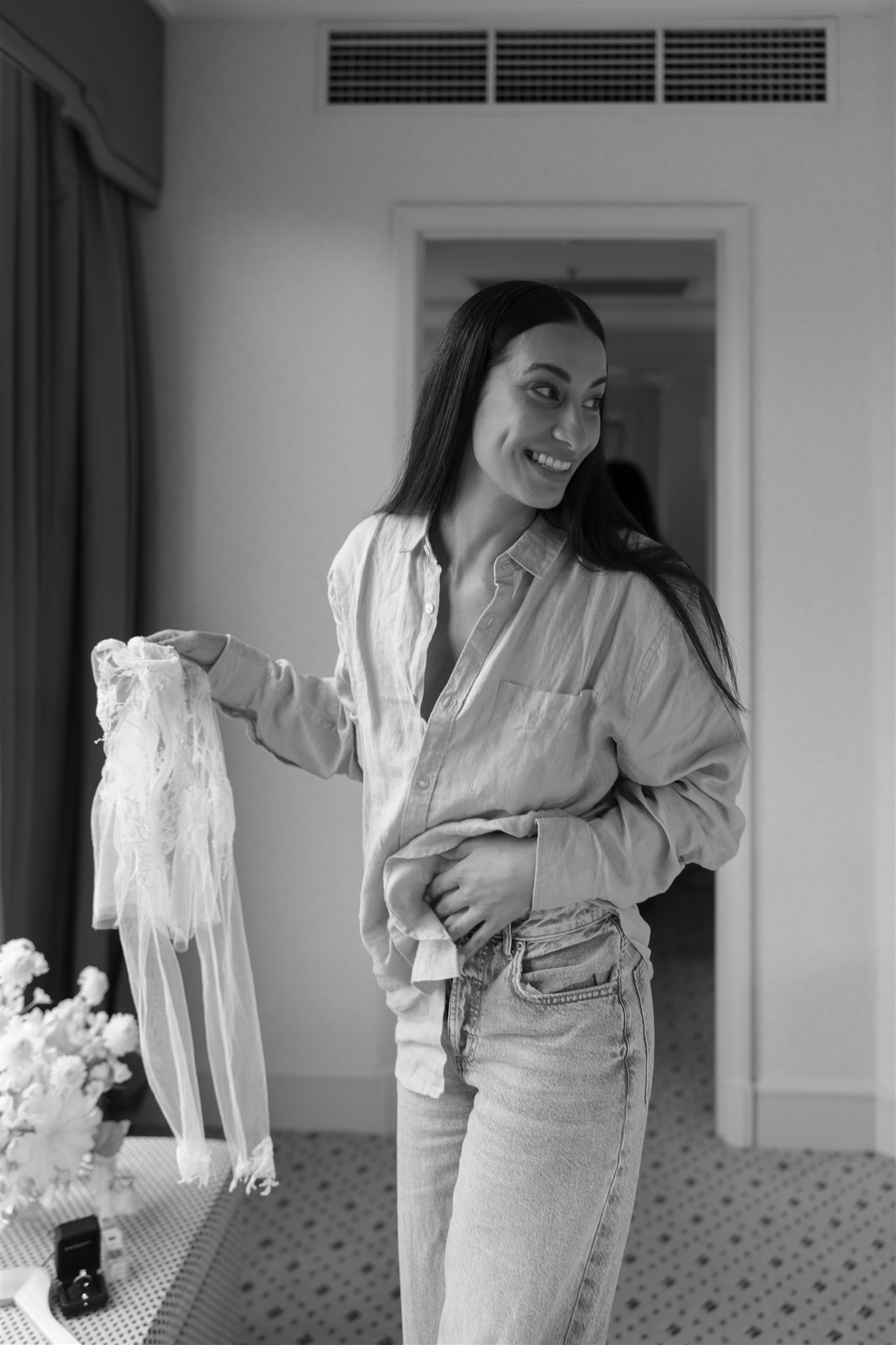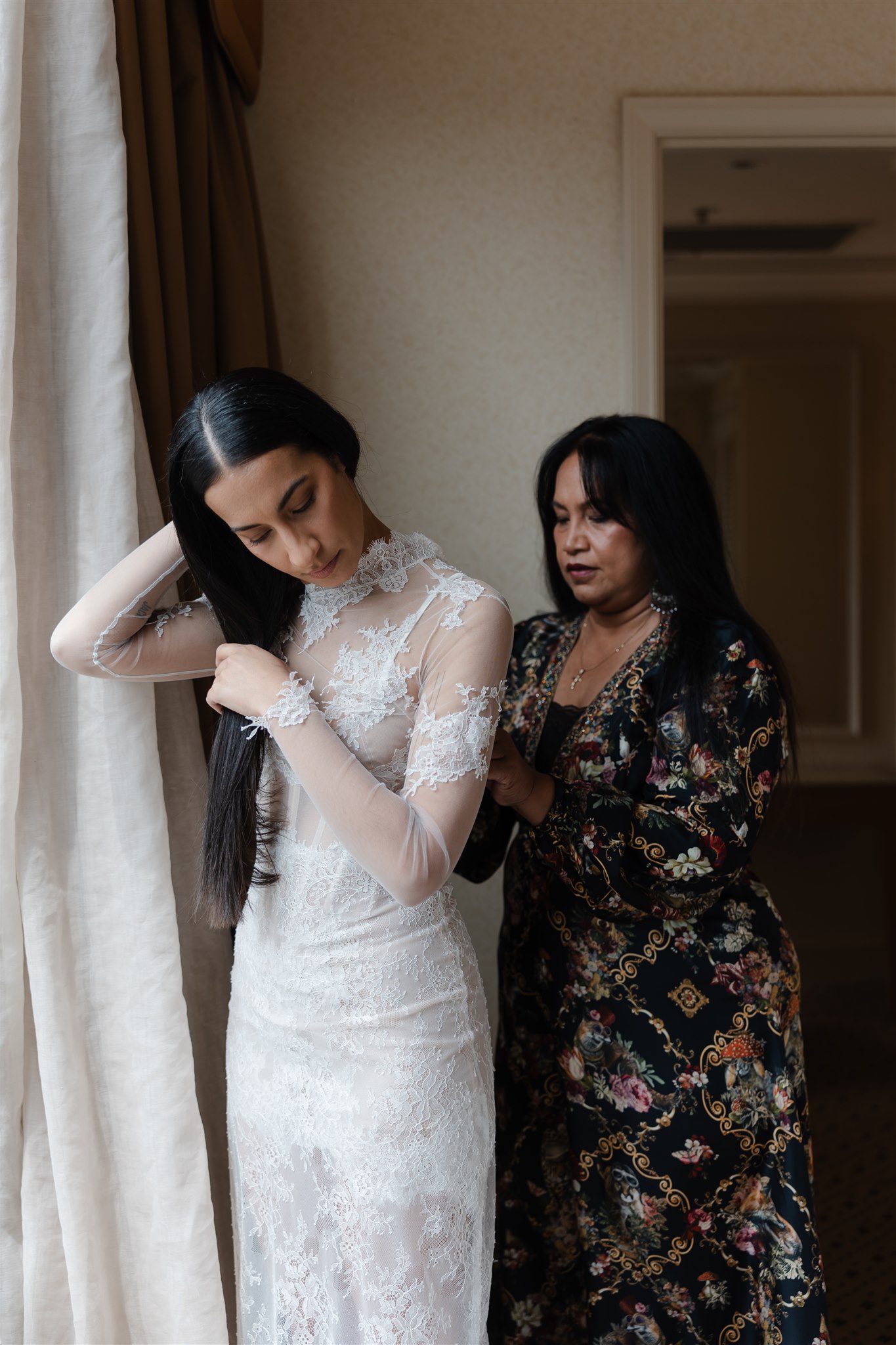 It was important to include their daughter, Evelyn, in as many aspects of the day as possible. The three of them stayed together the night before, cherishing those final moments together before their big day. Again the next morning, Evelyn was there, getting ready with the girls before heading over to Chris’ room to spend time with him.
