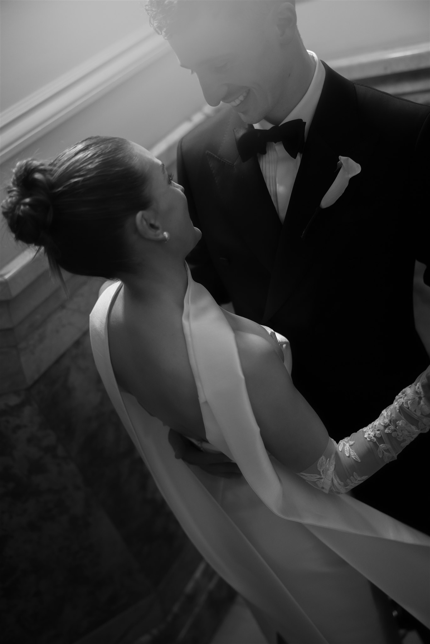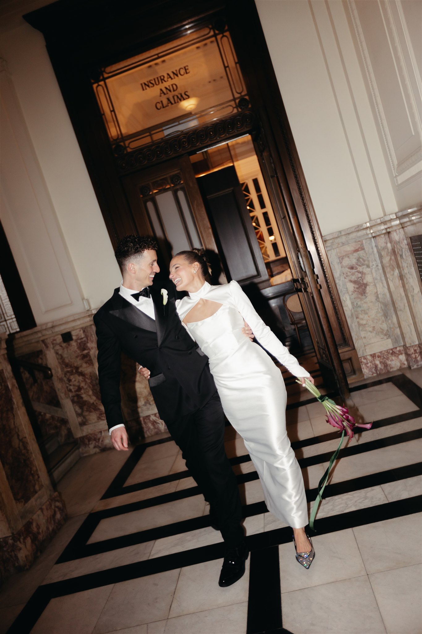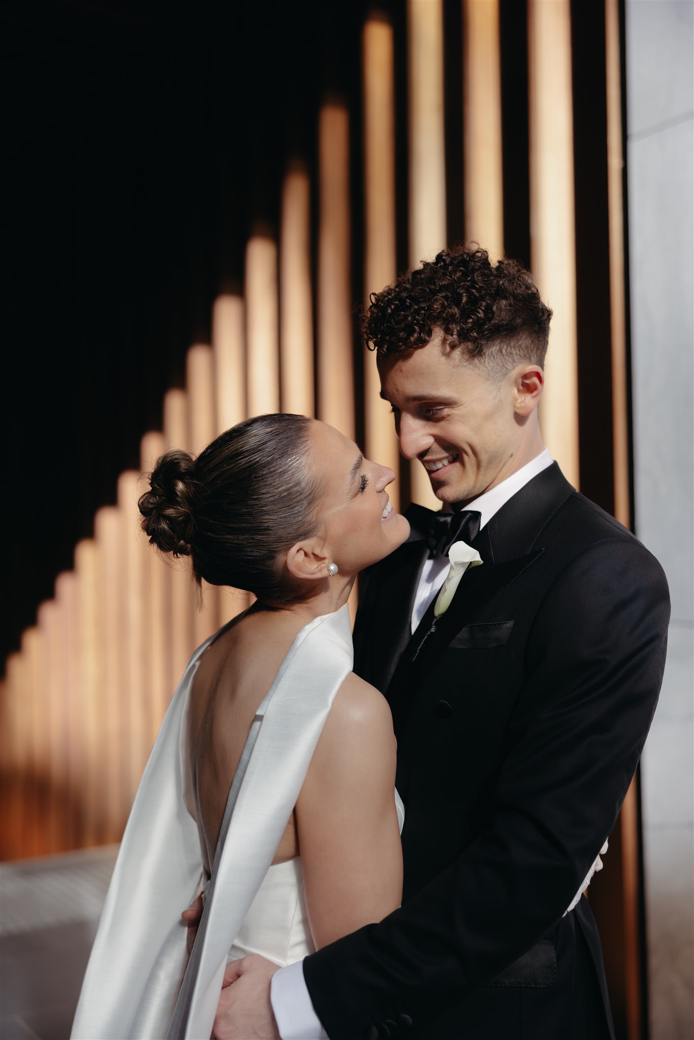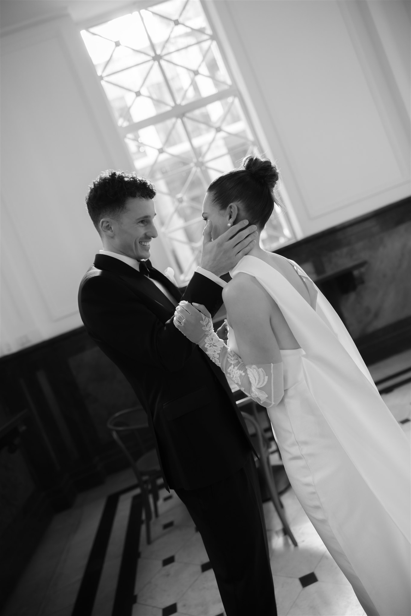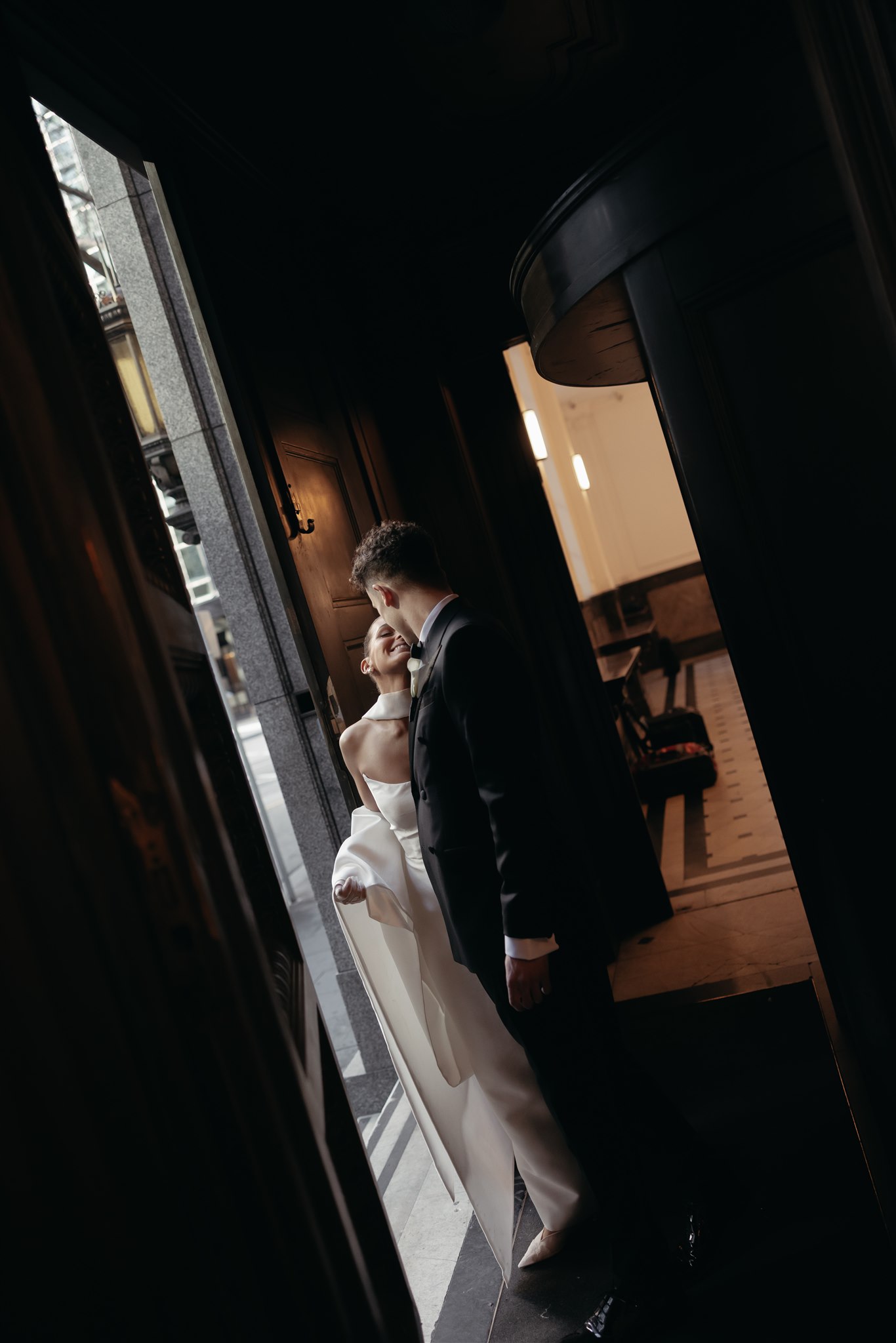 Laura and Daniel’s wedding took place at The Trust Melbourne, a venue that seamlessly blends heritage charm with contemporary sophistication. Their first look was filled with joy and anticipation as the couple saw each other for the first time outside of The Trust on Flinders Lane, an intimate moment framed by the venue’s ornate details.