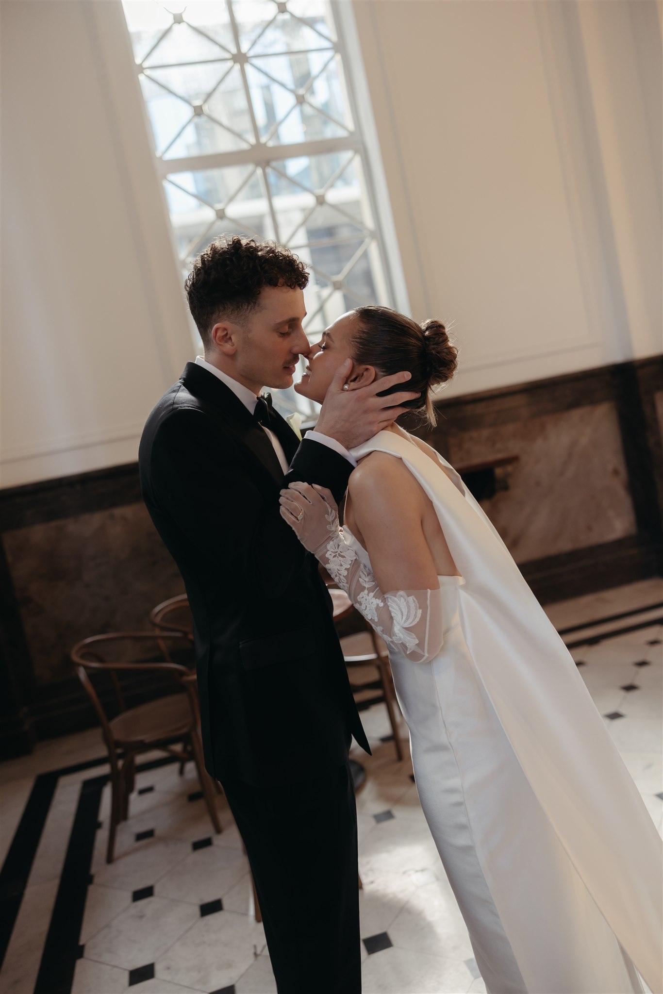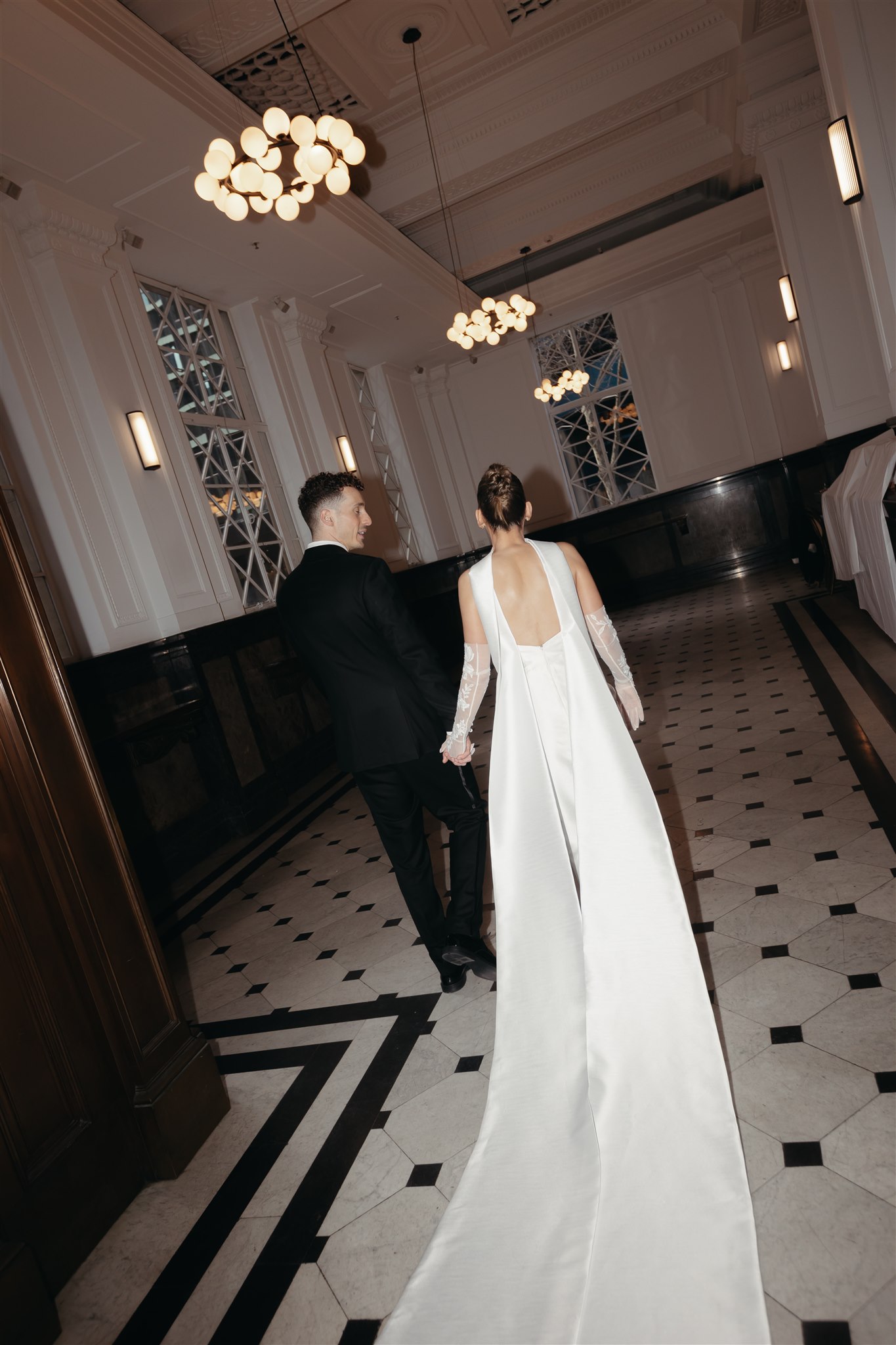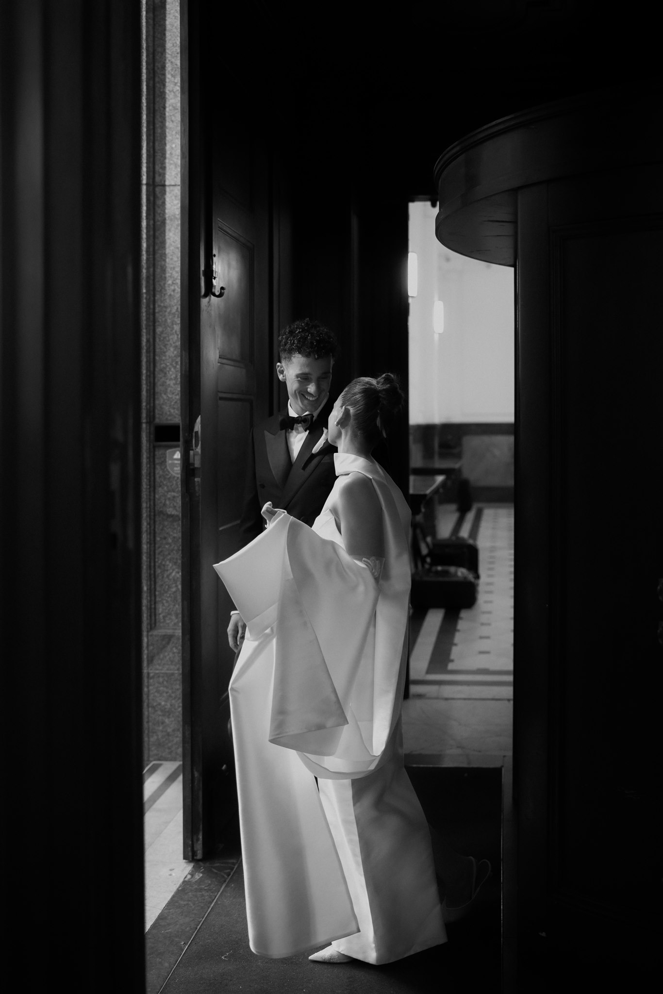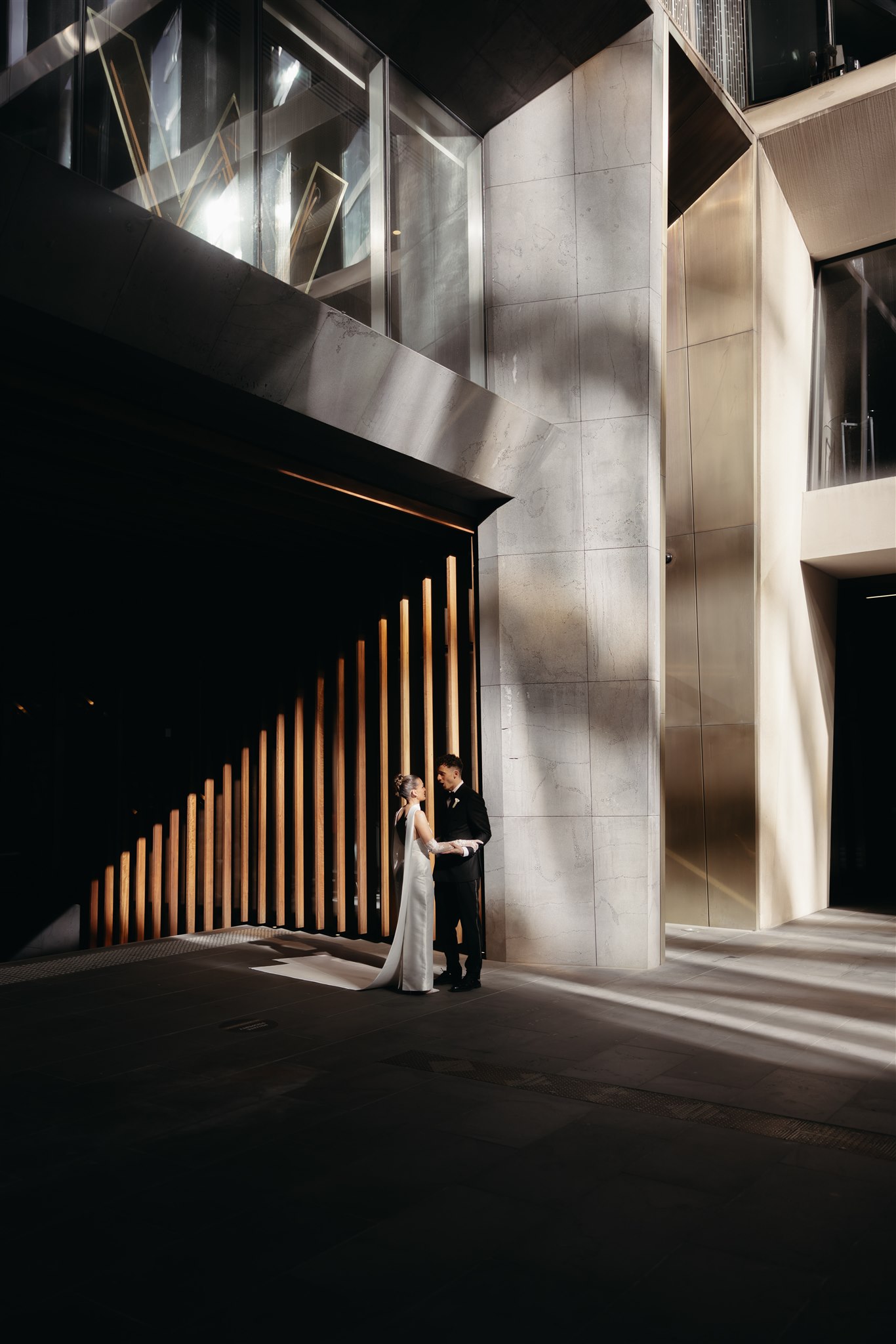 Laura and Daniel’s wedding took place at The Trust Melbourne, a venue that seamlessly blends heritage charm with contemporary sophistication. Their first look was filled with joy and anticipation as the couple saw each other for the first time outside of The Trust on Flinders Lane, an intimate moment framed by the venue’s ornate details.