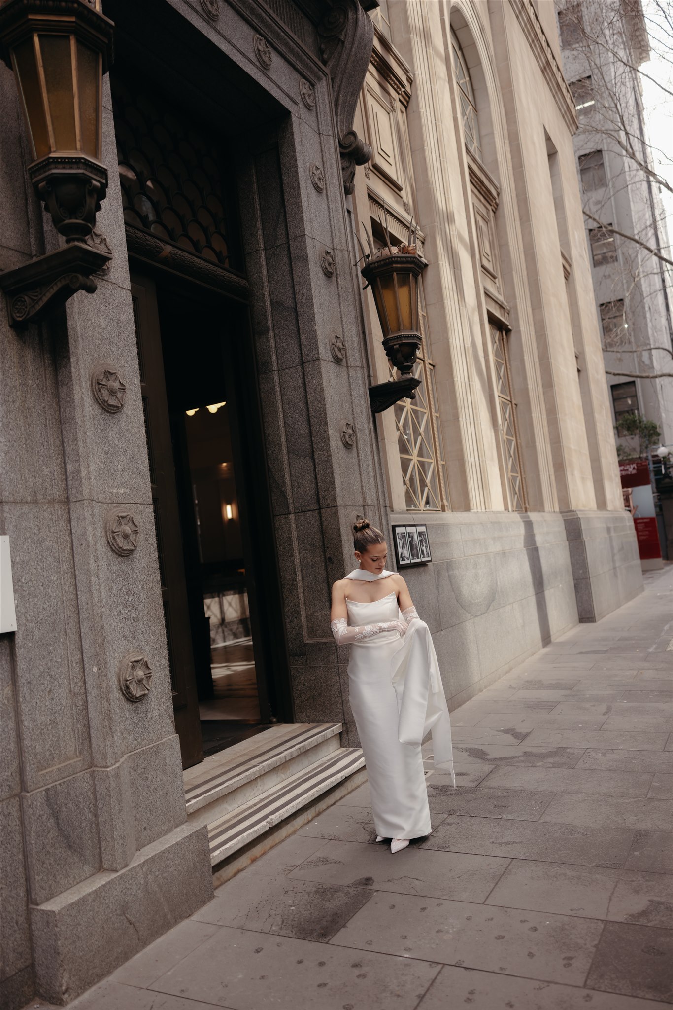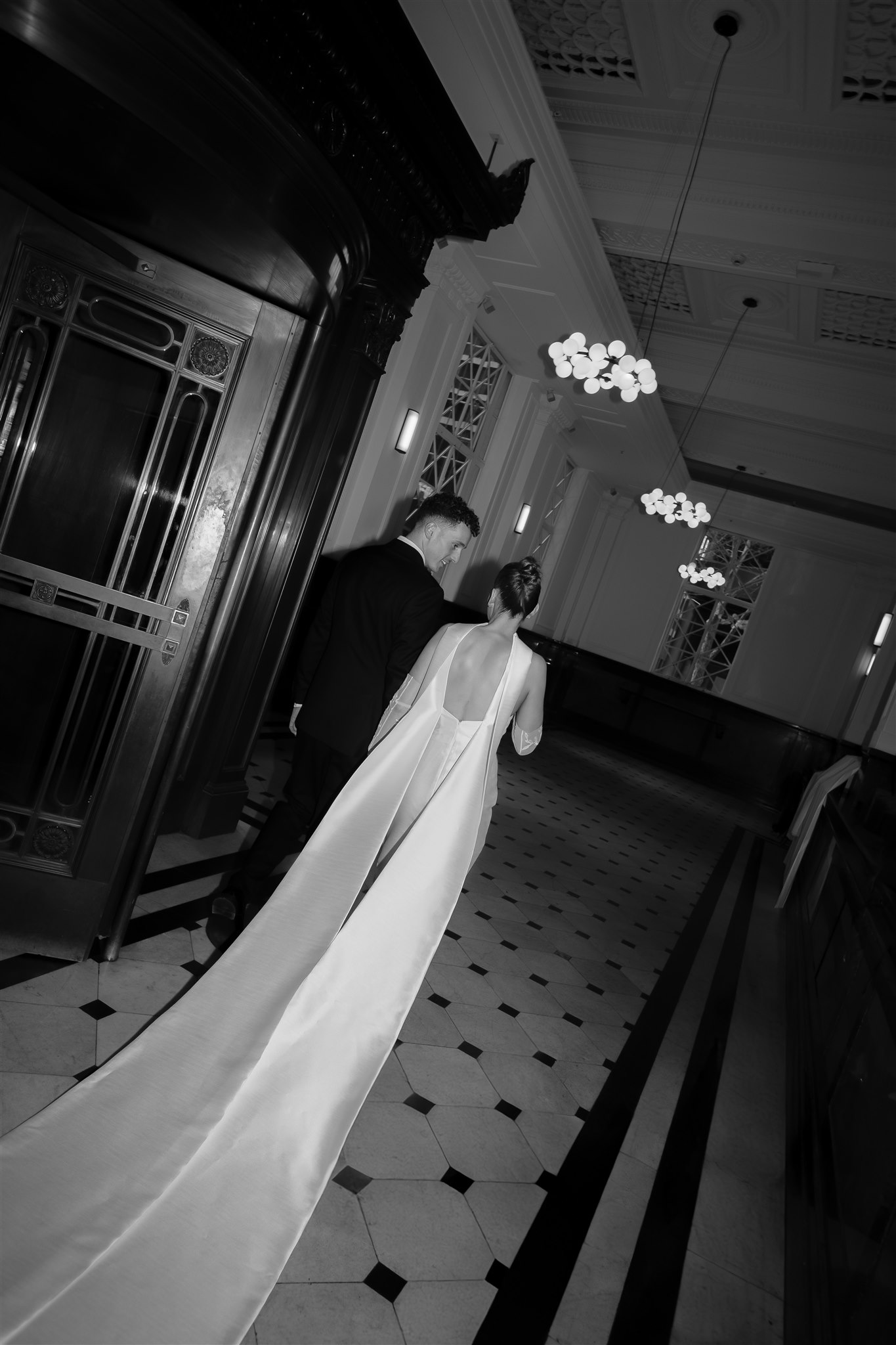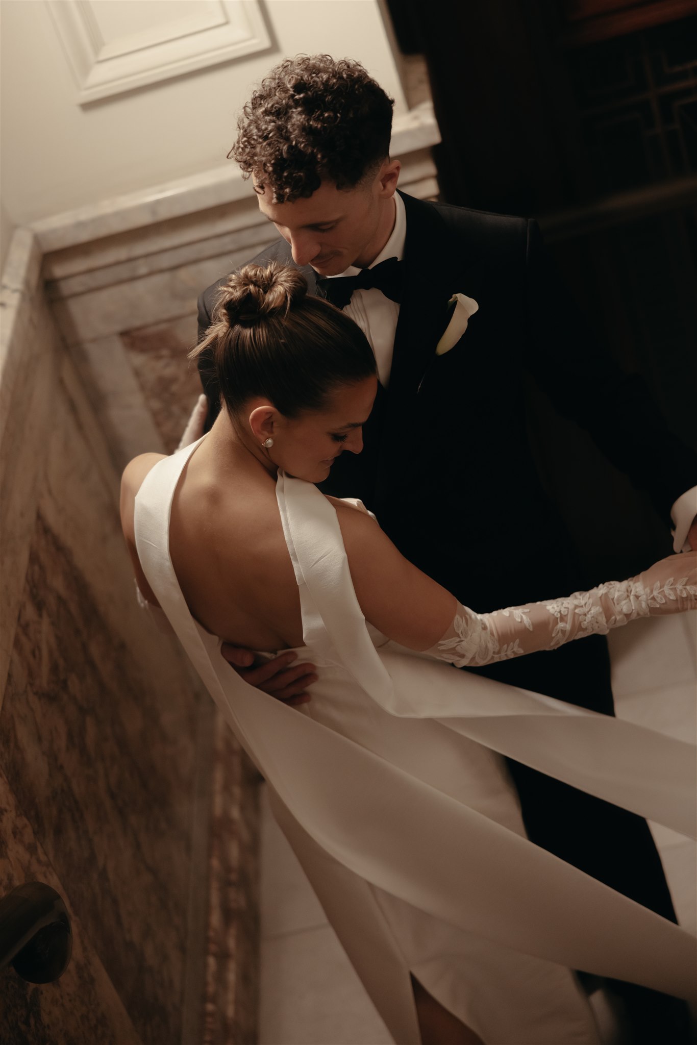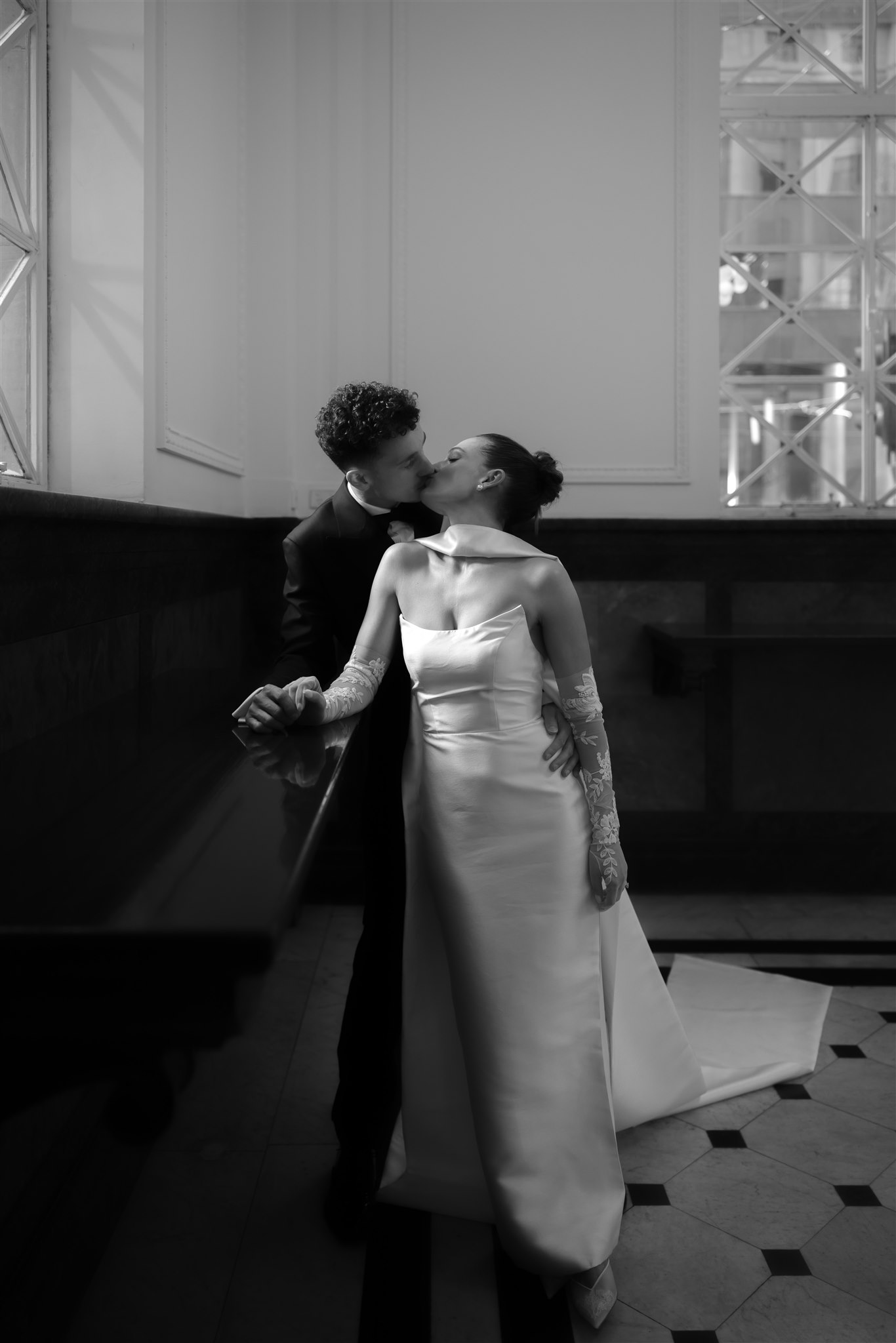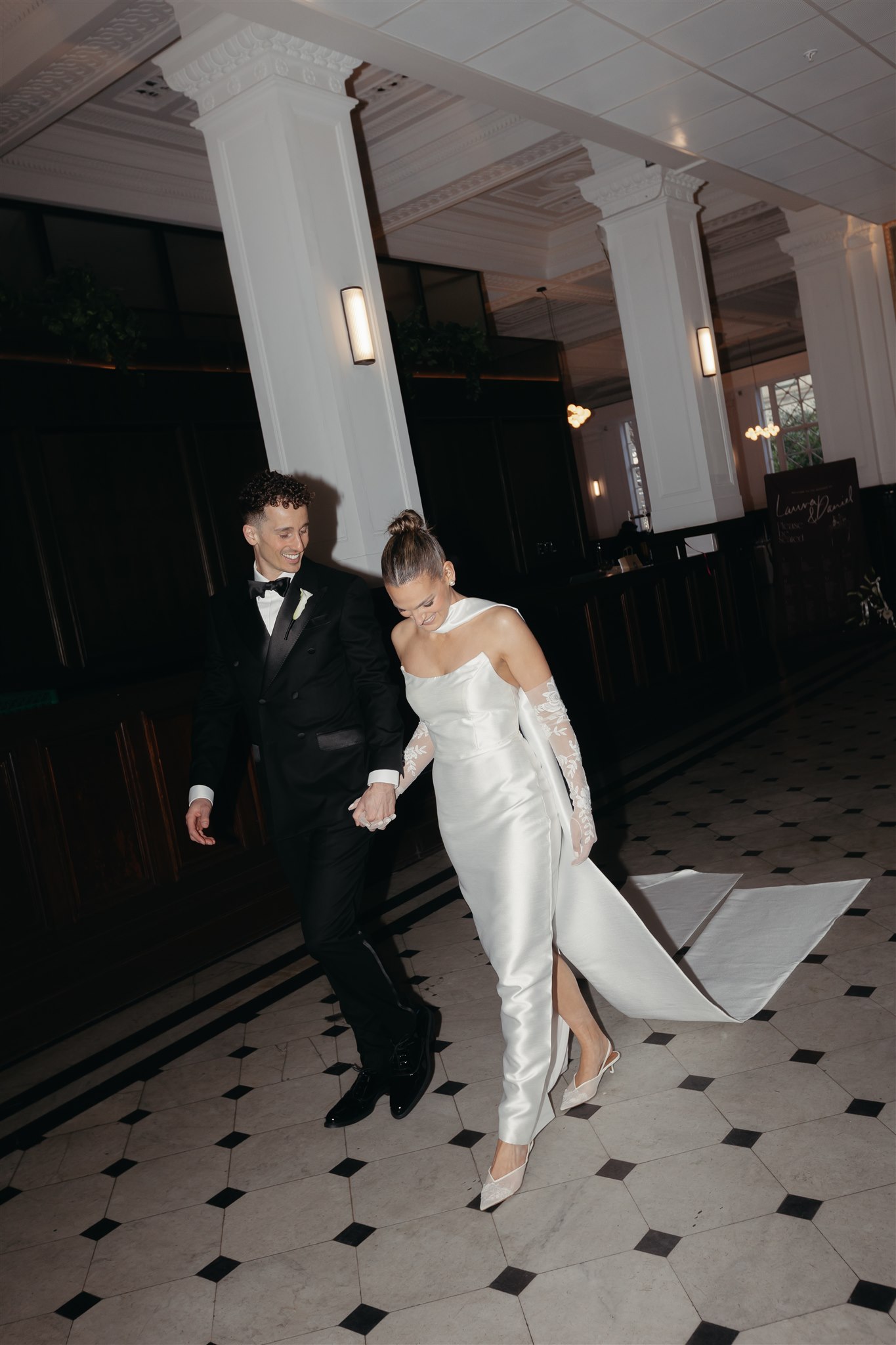 Laura and Daniel’s wedding took place at The Trust Melbourne, a venue that seamlessly blends heritage charm with contemporary sophistication. Their first look was filled with joy and anticipation as the couple saw each other for the first time outside of The Trust on Flinders Lane, an intimate moment framed by the venue’s ornate details.