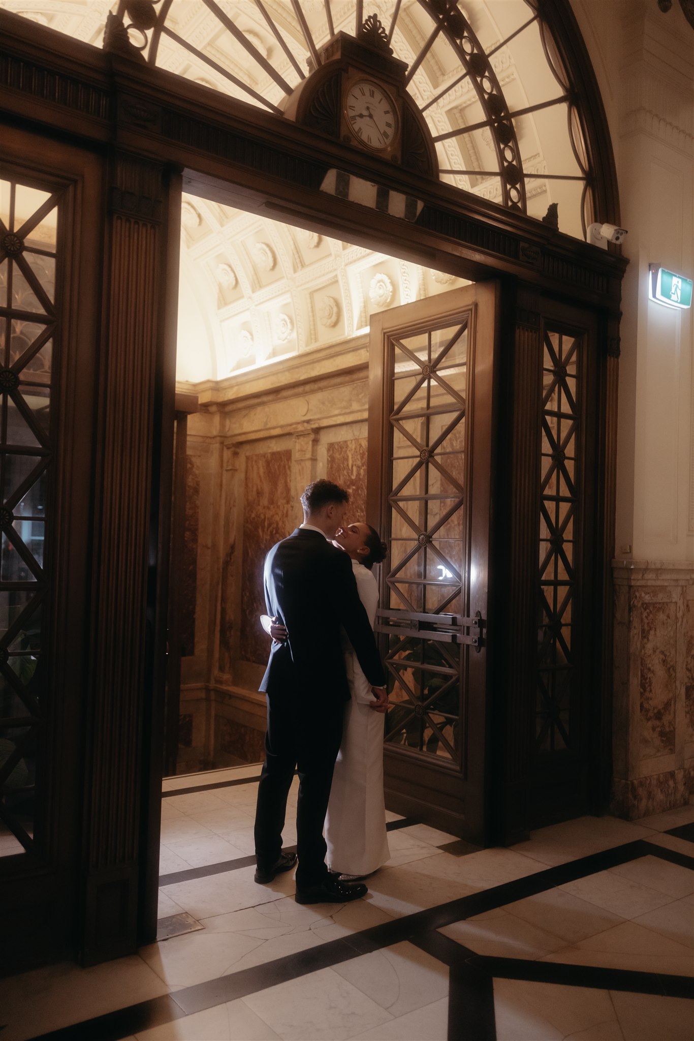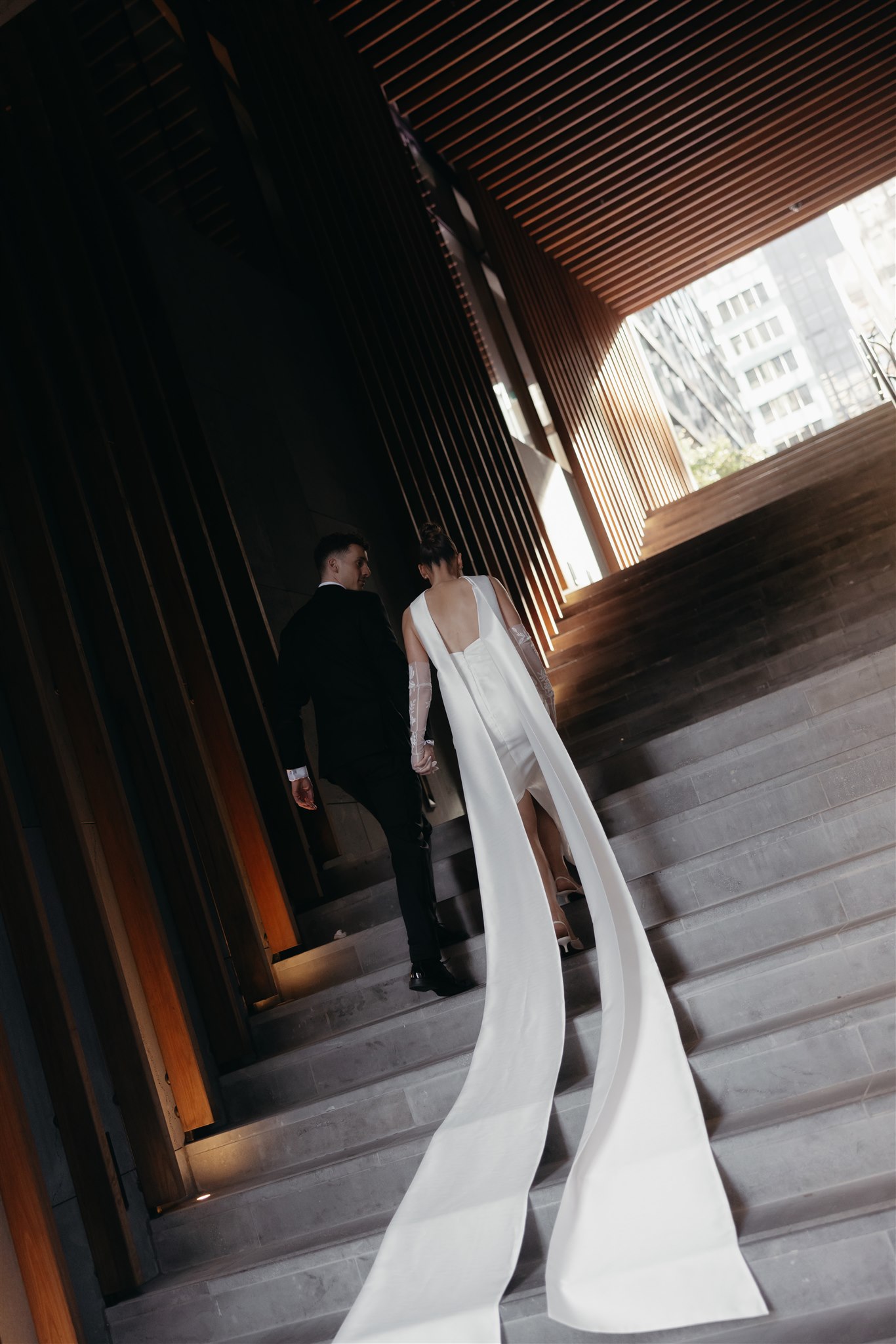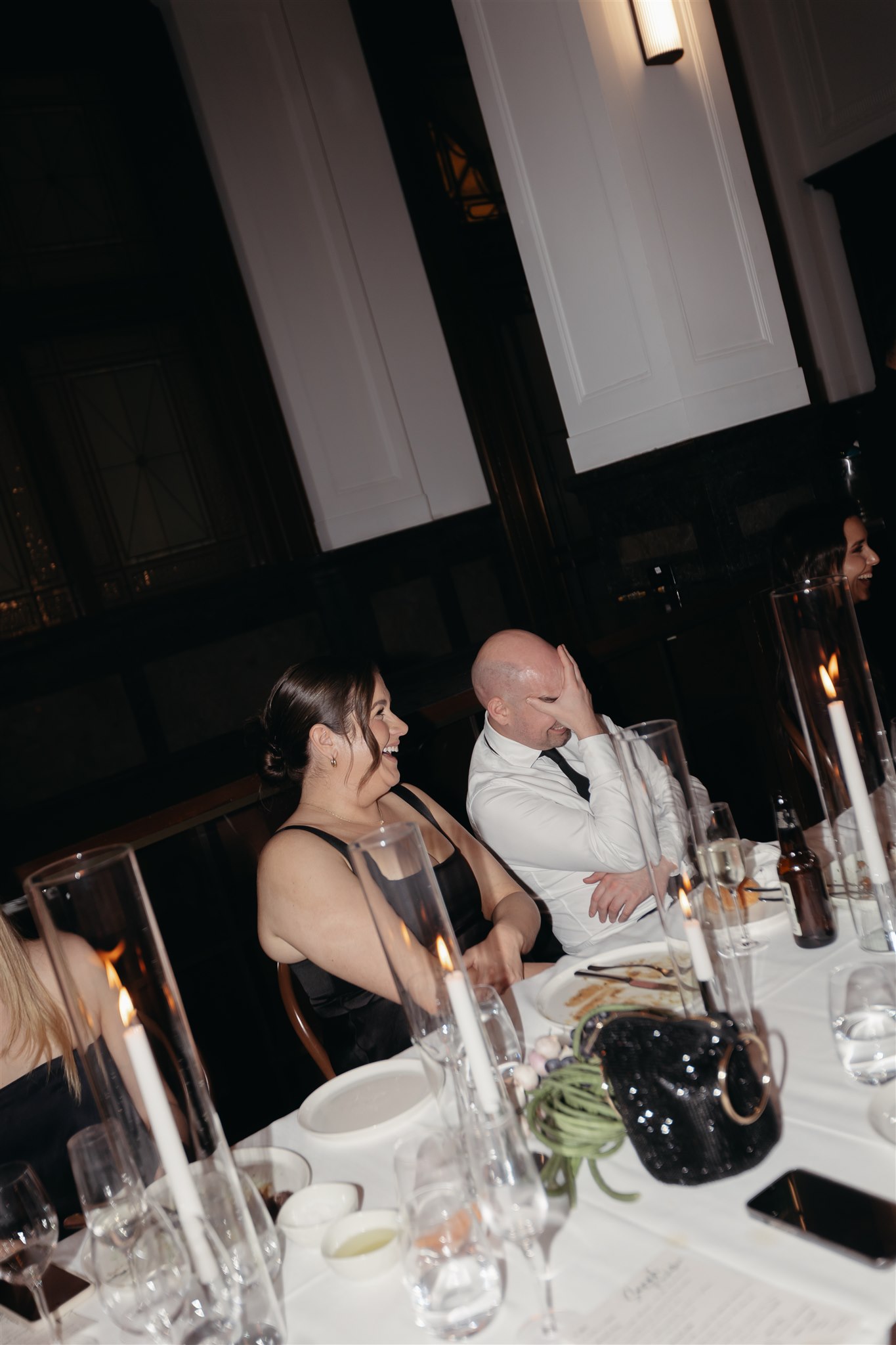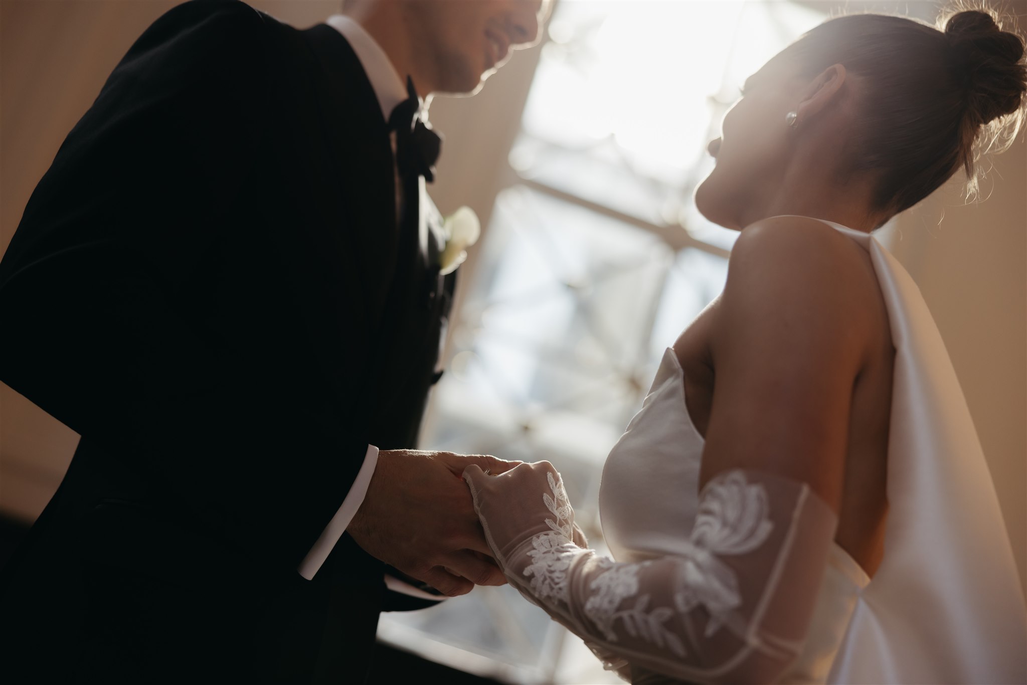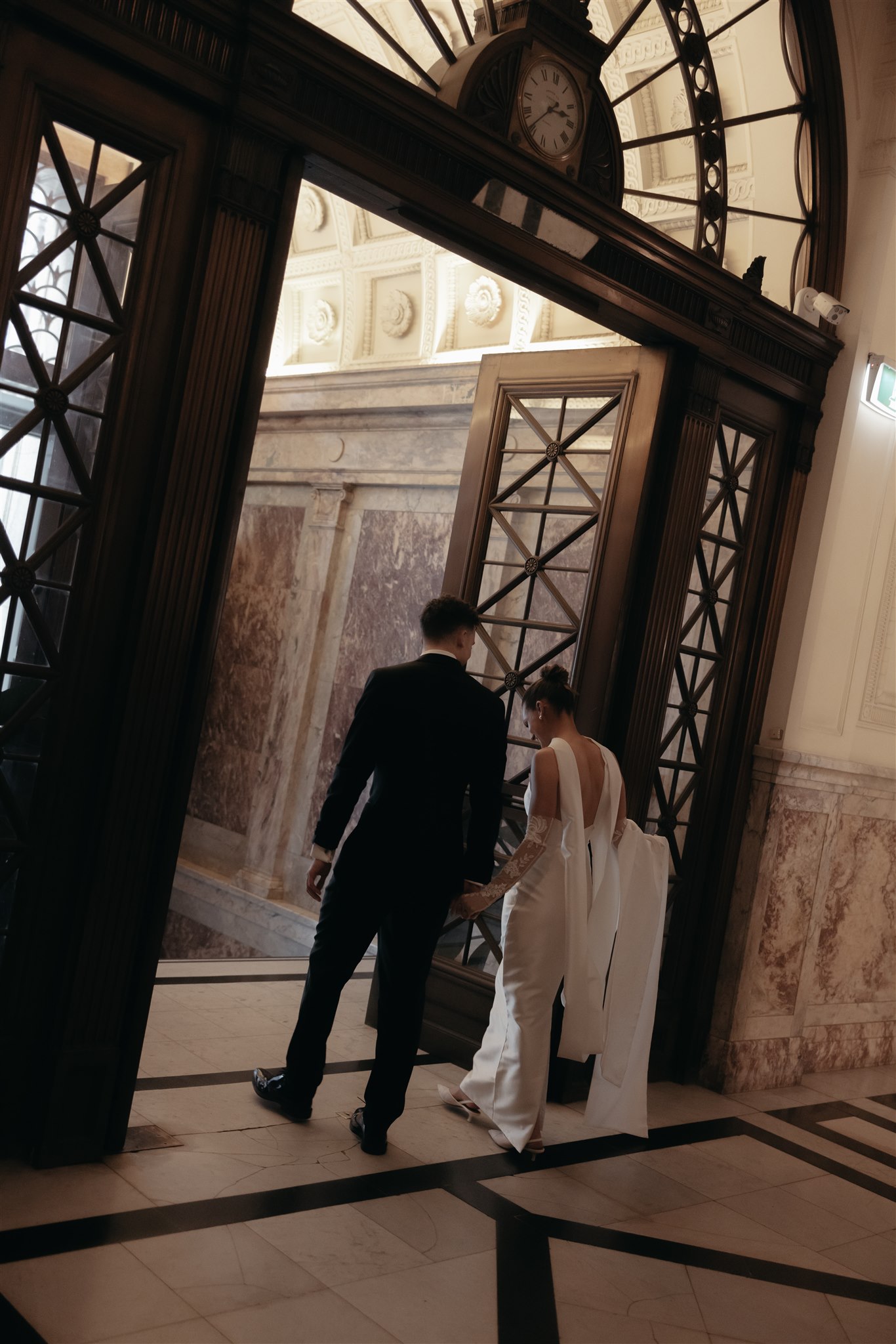 Laura and Daniel’s wedding took place at The Trust Melbourne, a venue that seamlessly blends heritage charm with contemporary sophistication. Their first look was filled with joy and anticipation as the couple saw each other for the first time outside of The Trust on Flinders Lane, an intimate moment framed by the venue’s ornate details.